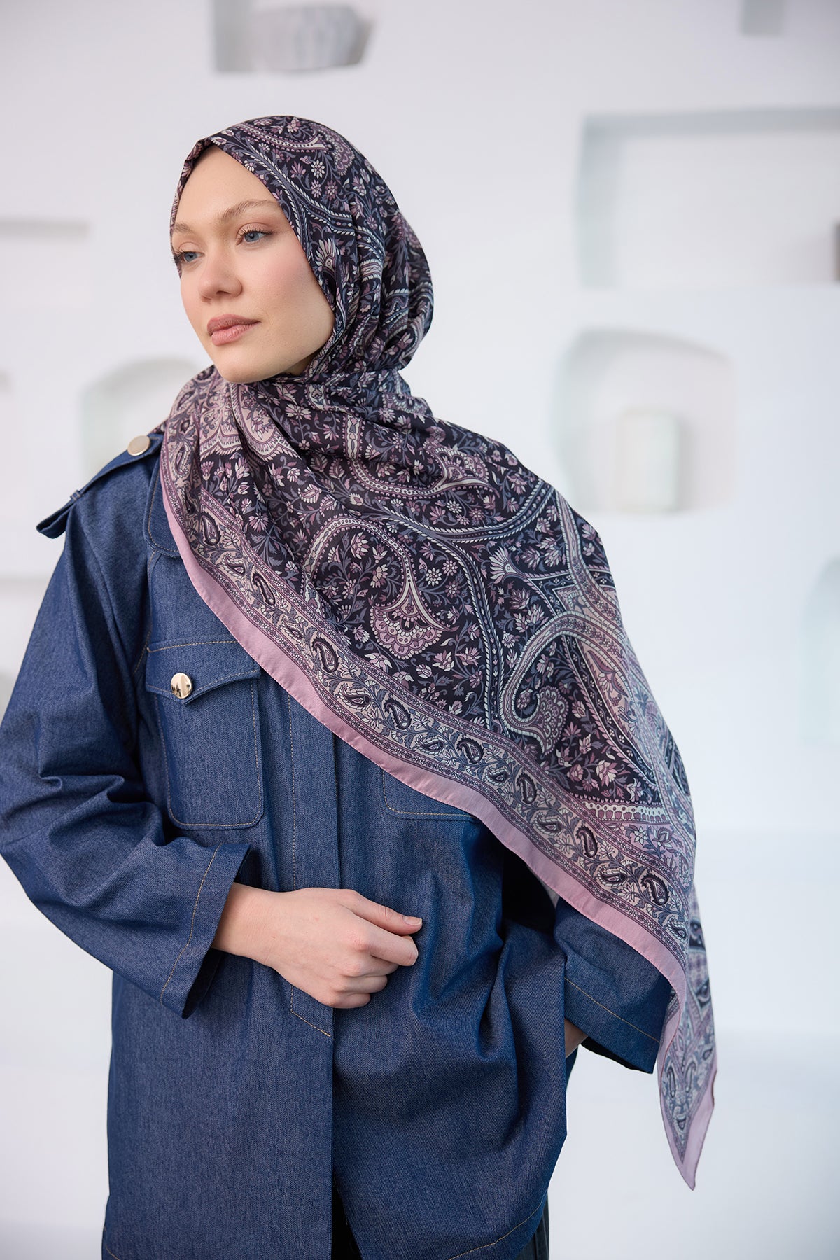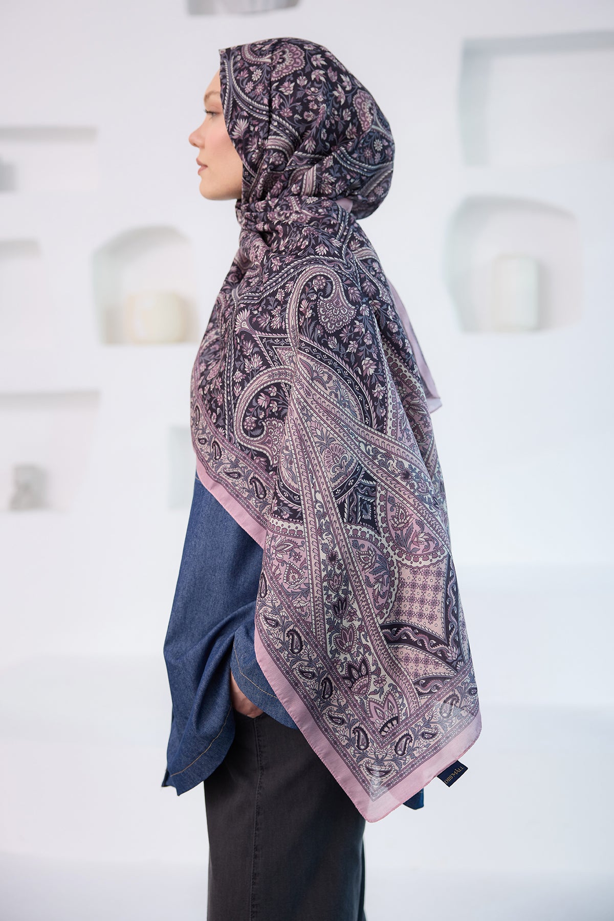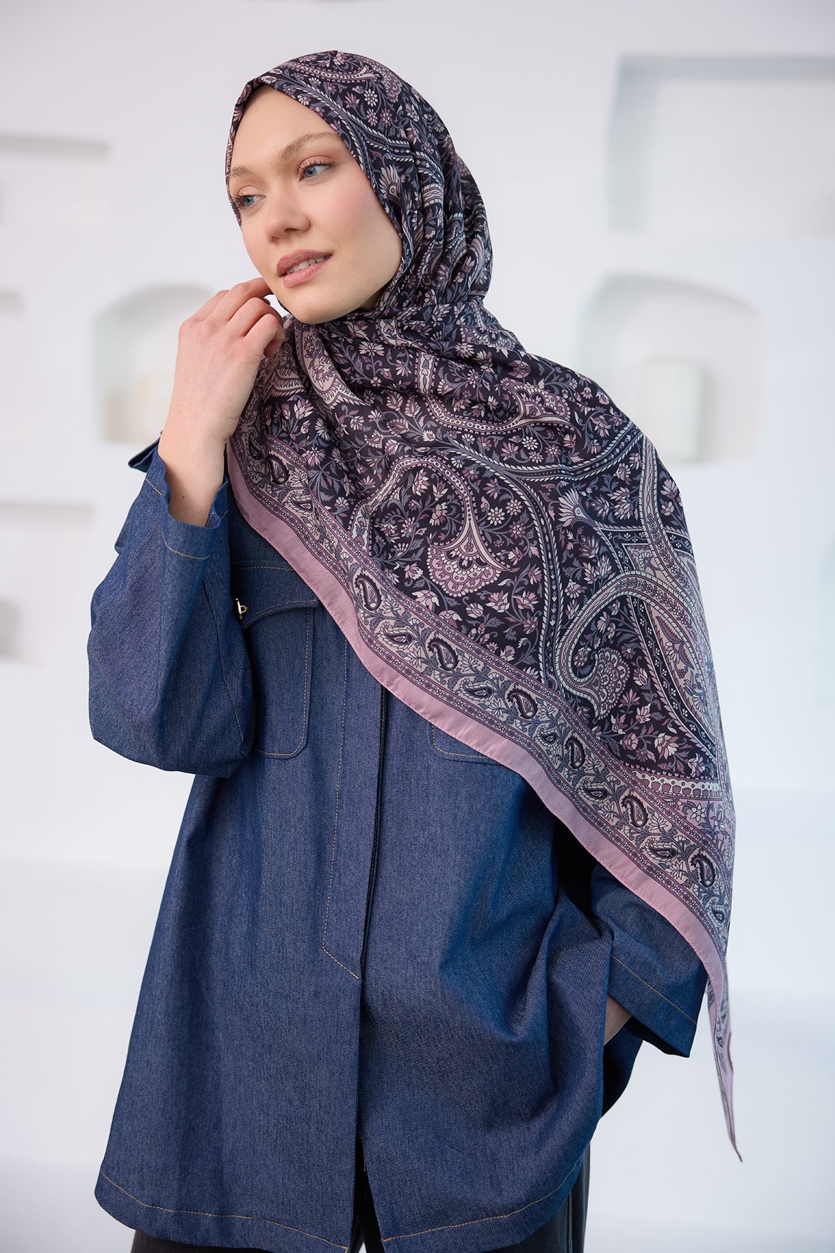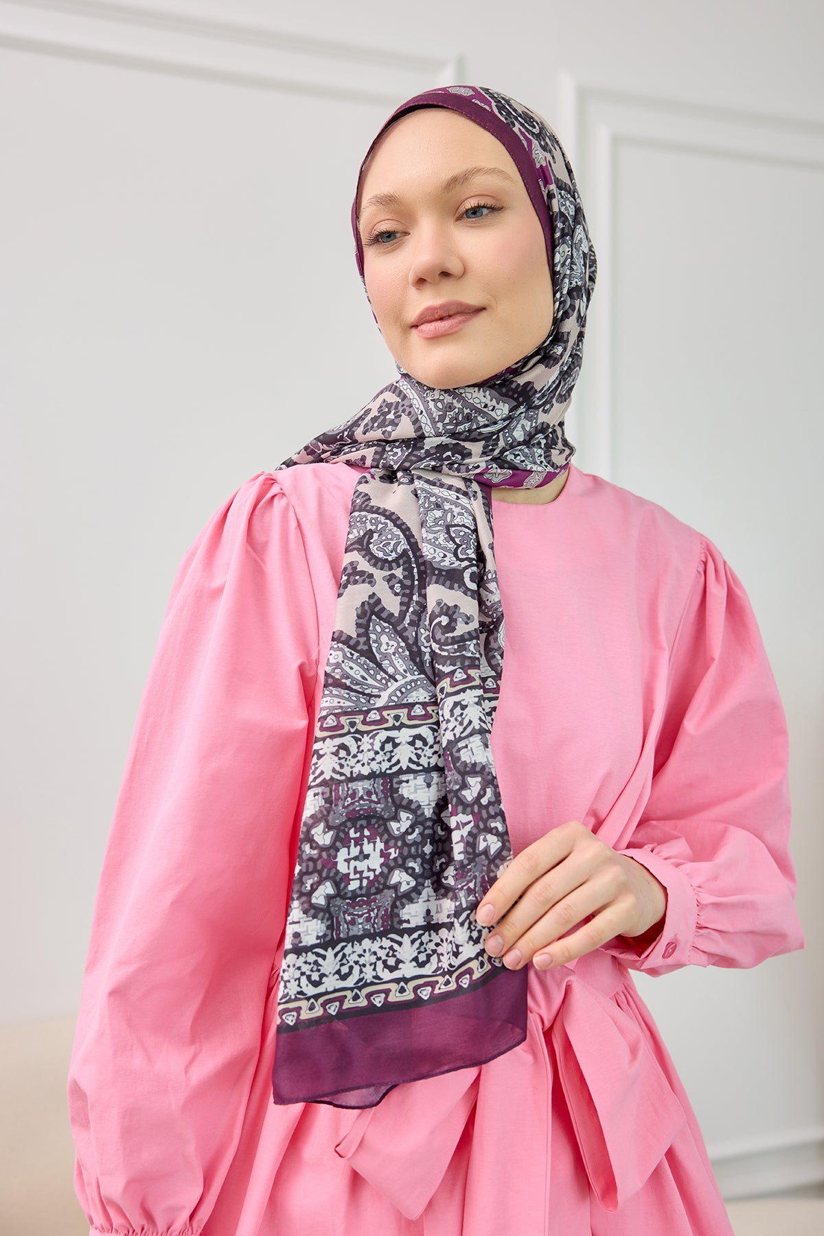 Ethnic Pattern Soft Shawl lilac