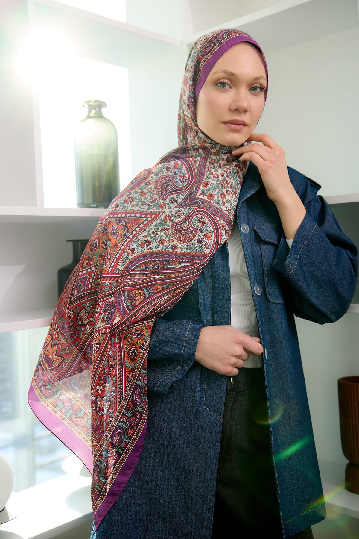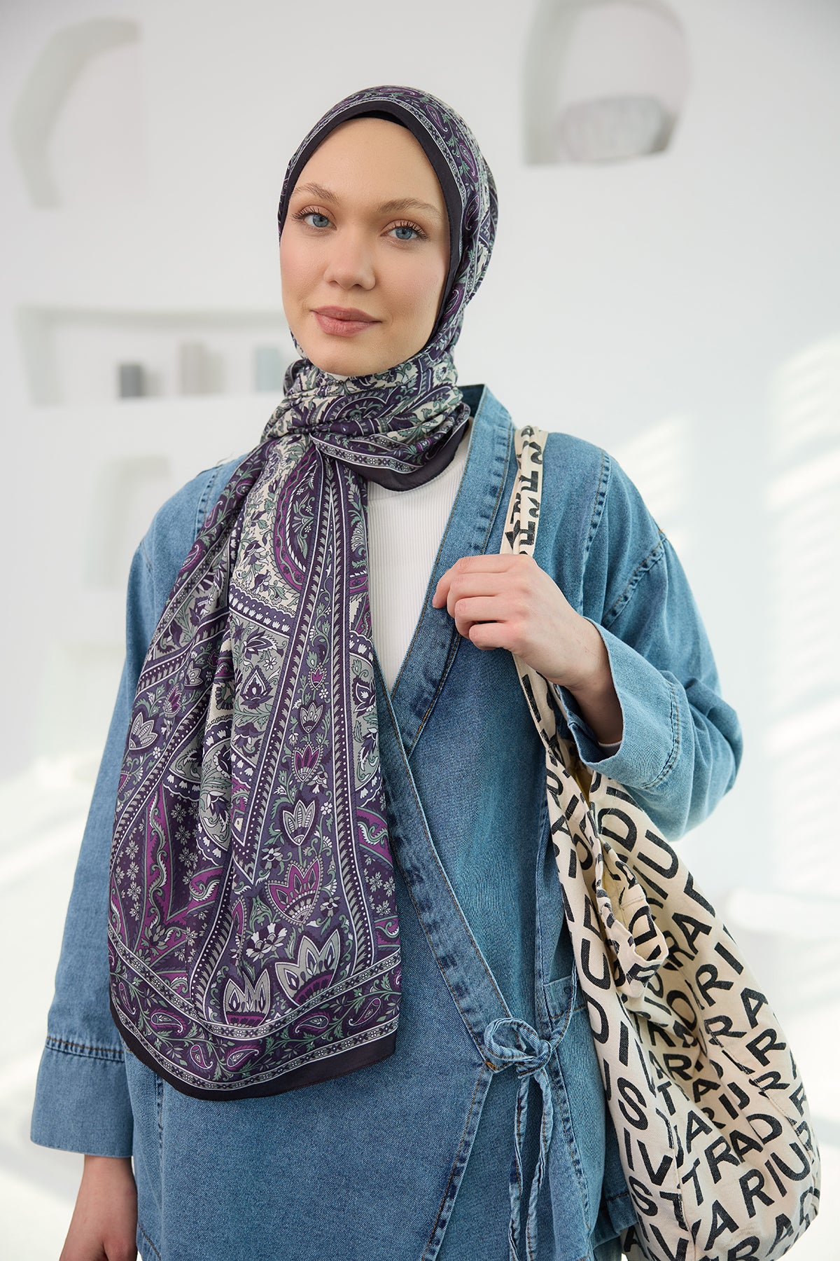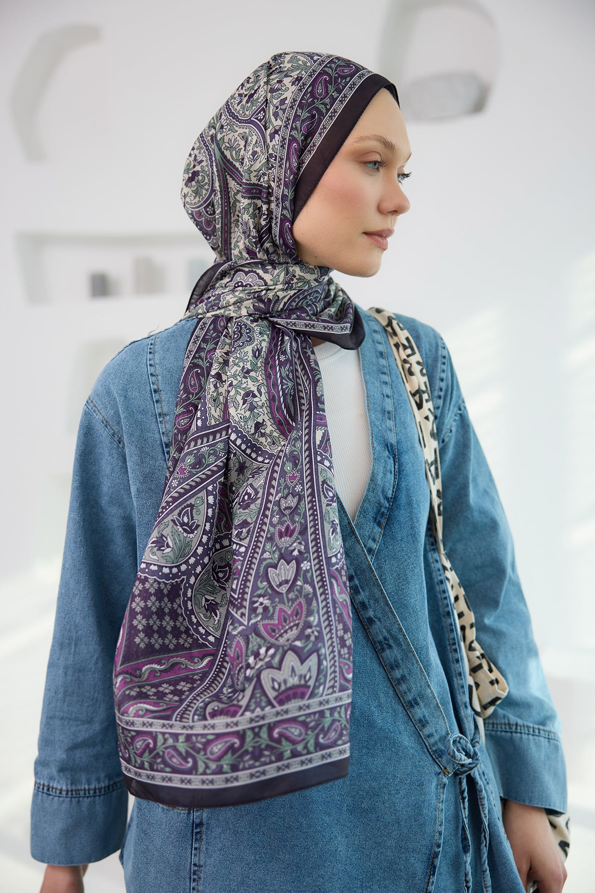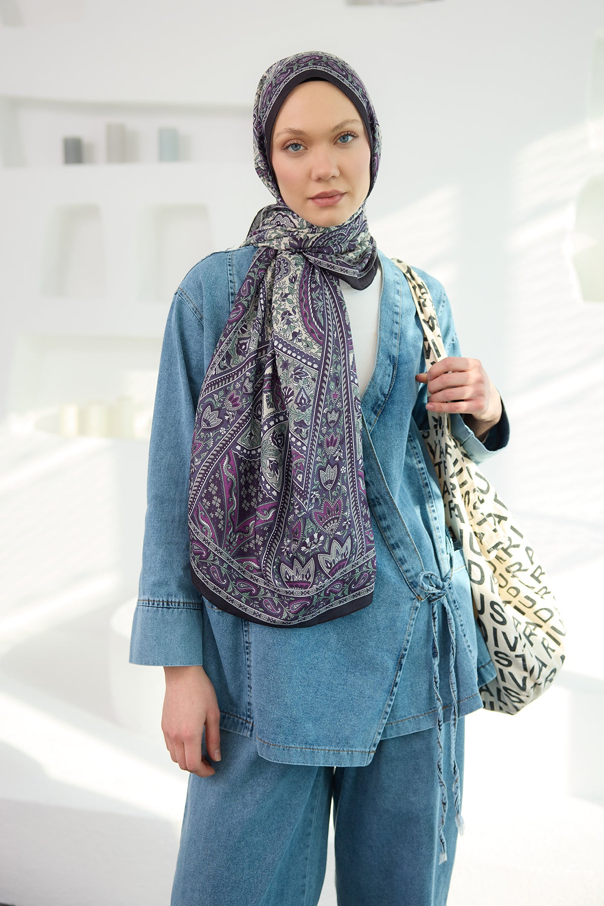 Ethnic Pattern Soft Shawl lilac