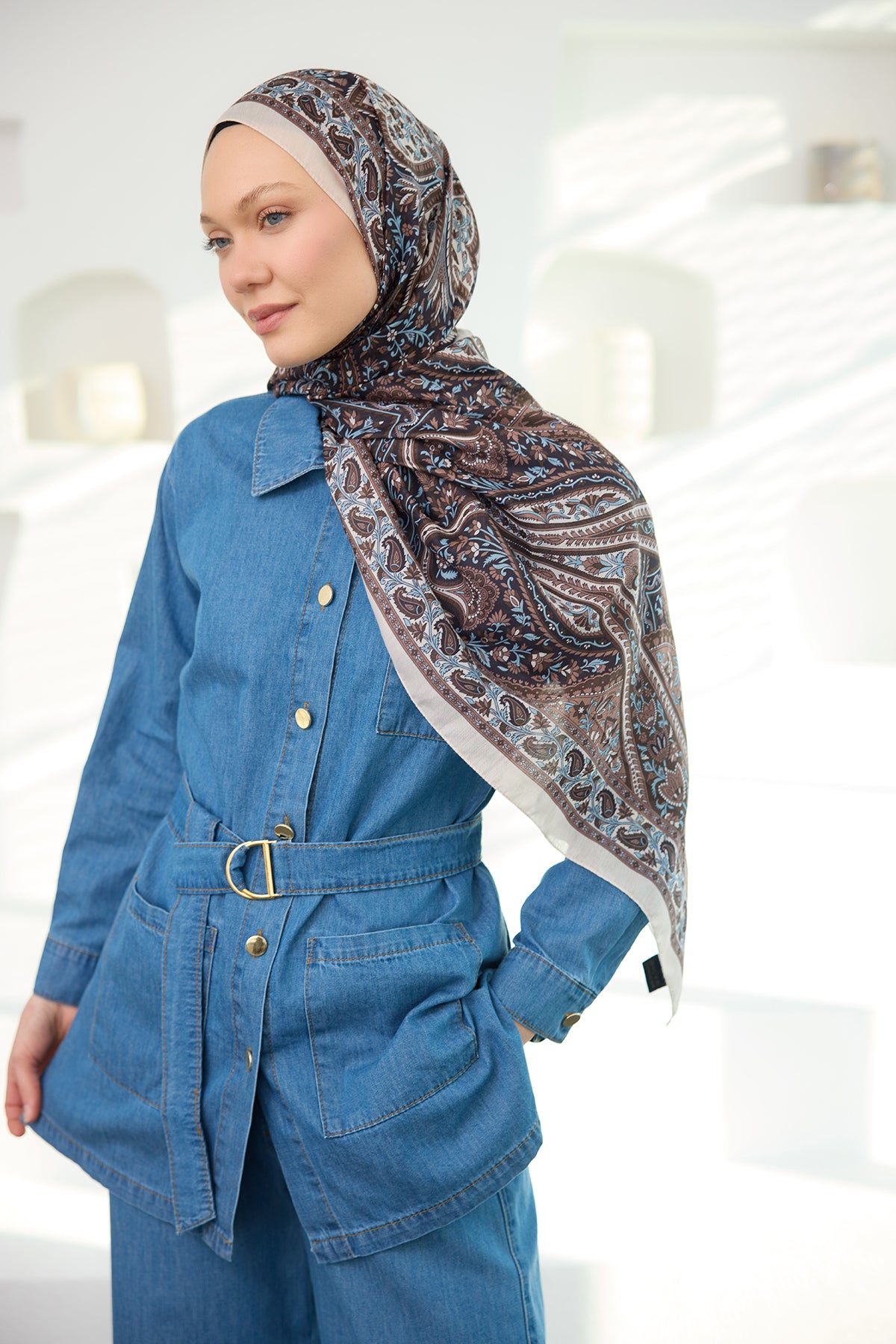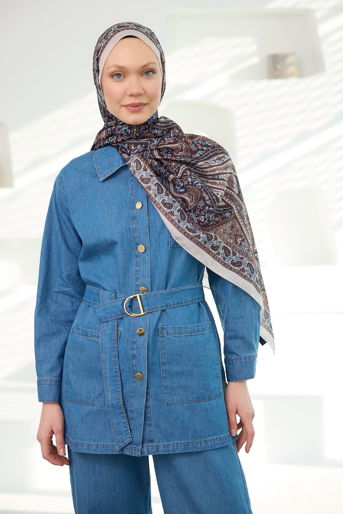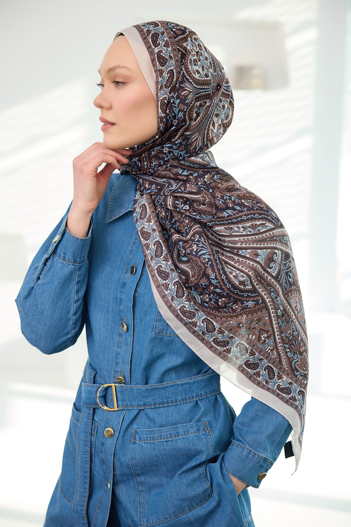 Ethnic Pattern Soft Shawl Brown