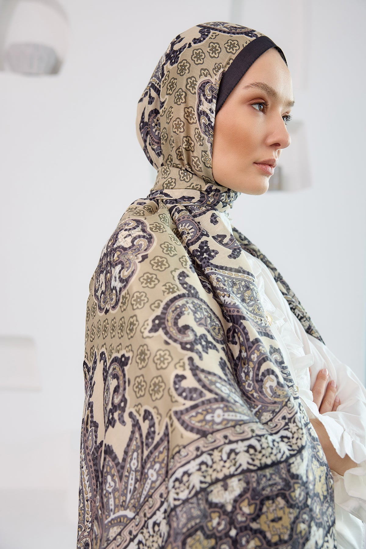 Ethnic Pattern Soft Shawl Beige