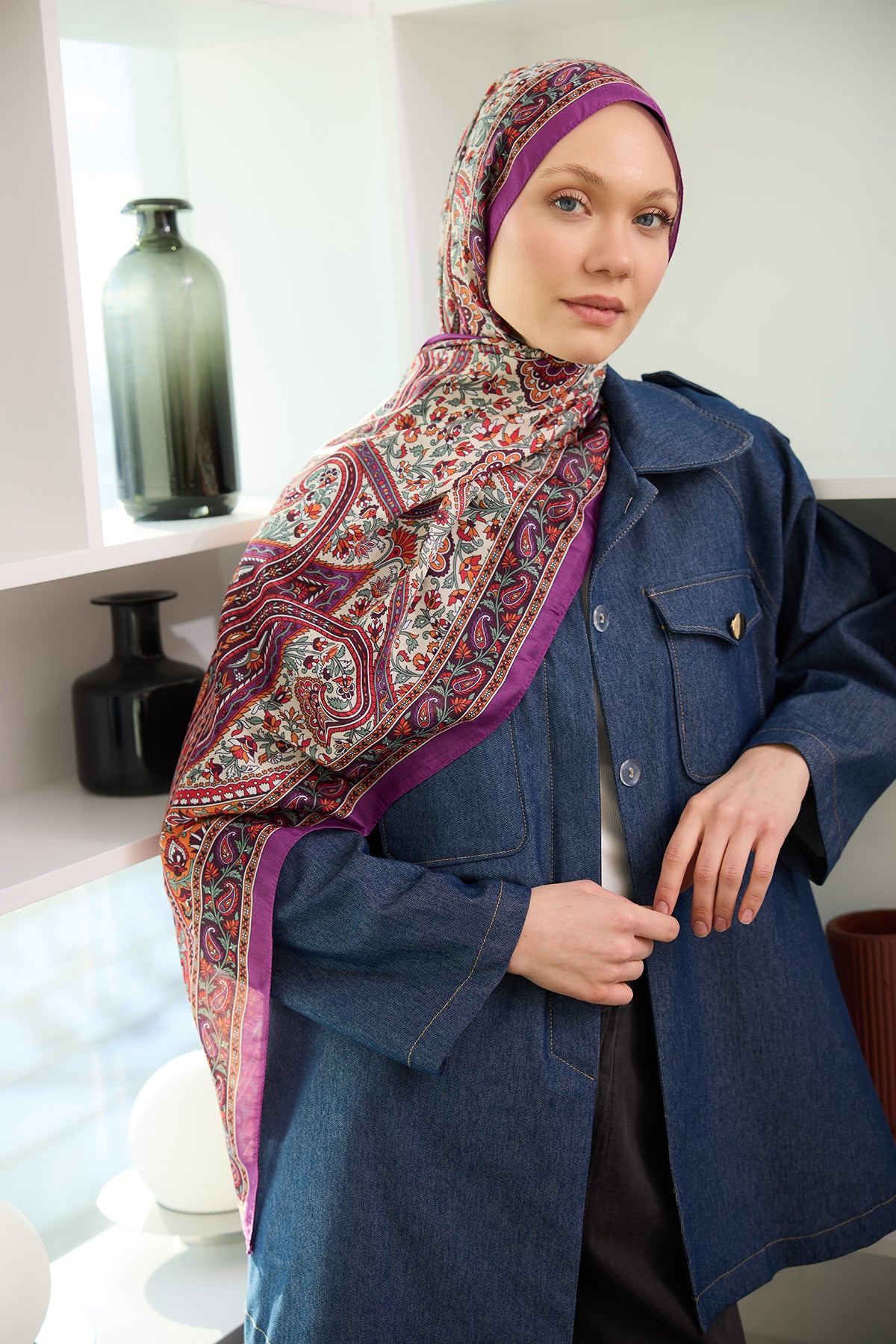 Ethnic Pattern Soft Shawl Purple