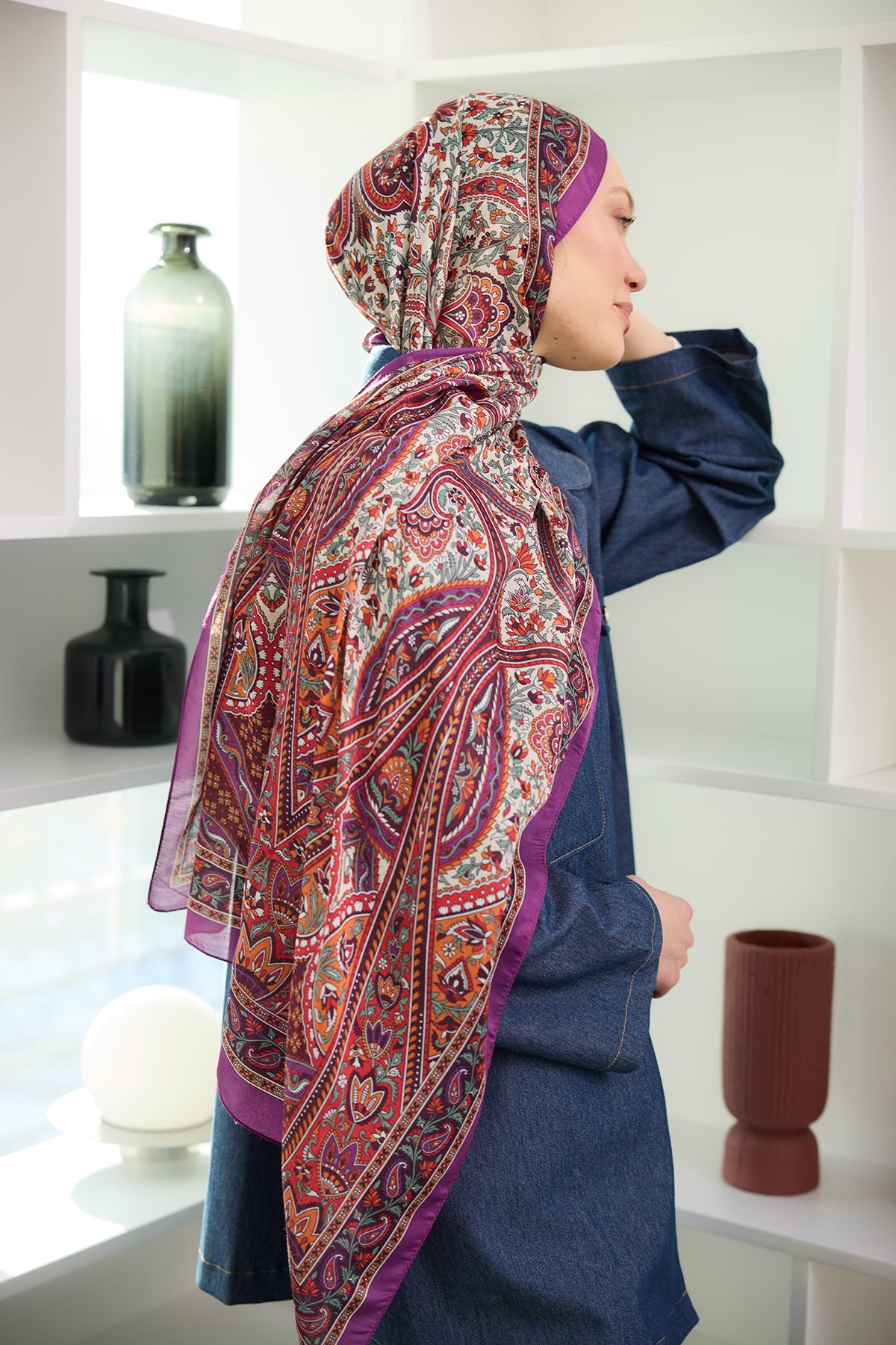 Ethnic Pattern Soft Shawl - Purple