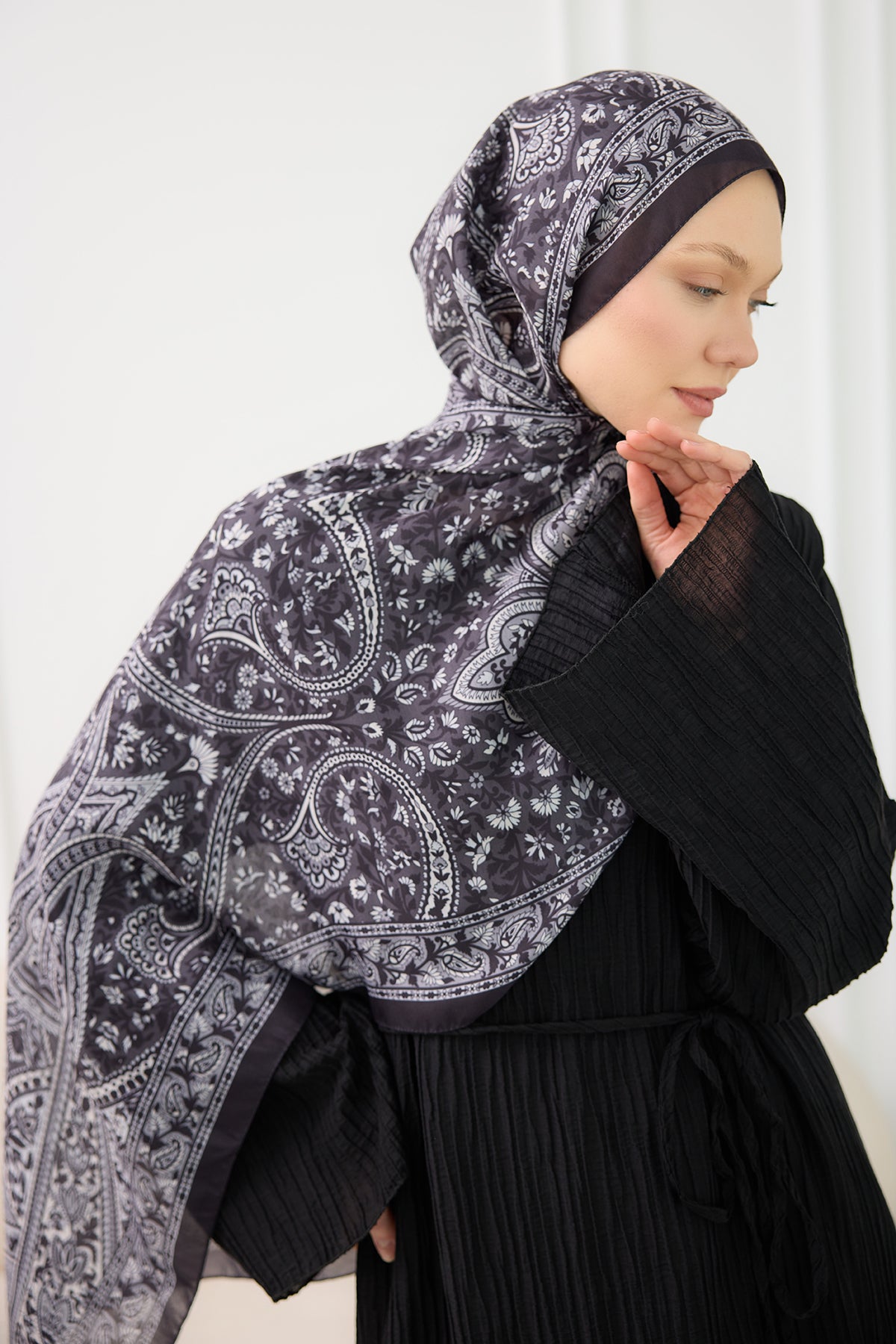 Ethnic Pattern Soft Shawl Black