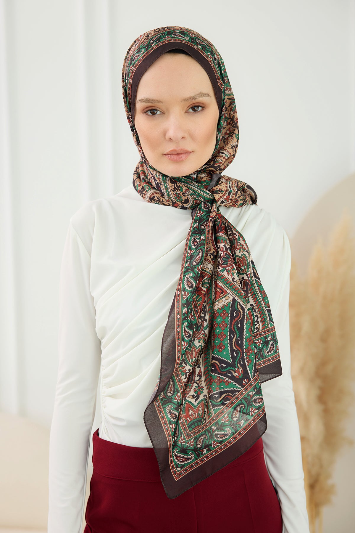 Ethnic Pattern Soft Shawl Oil Green