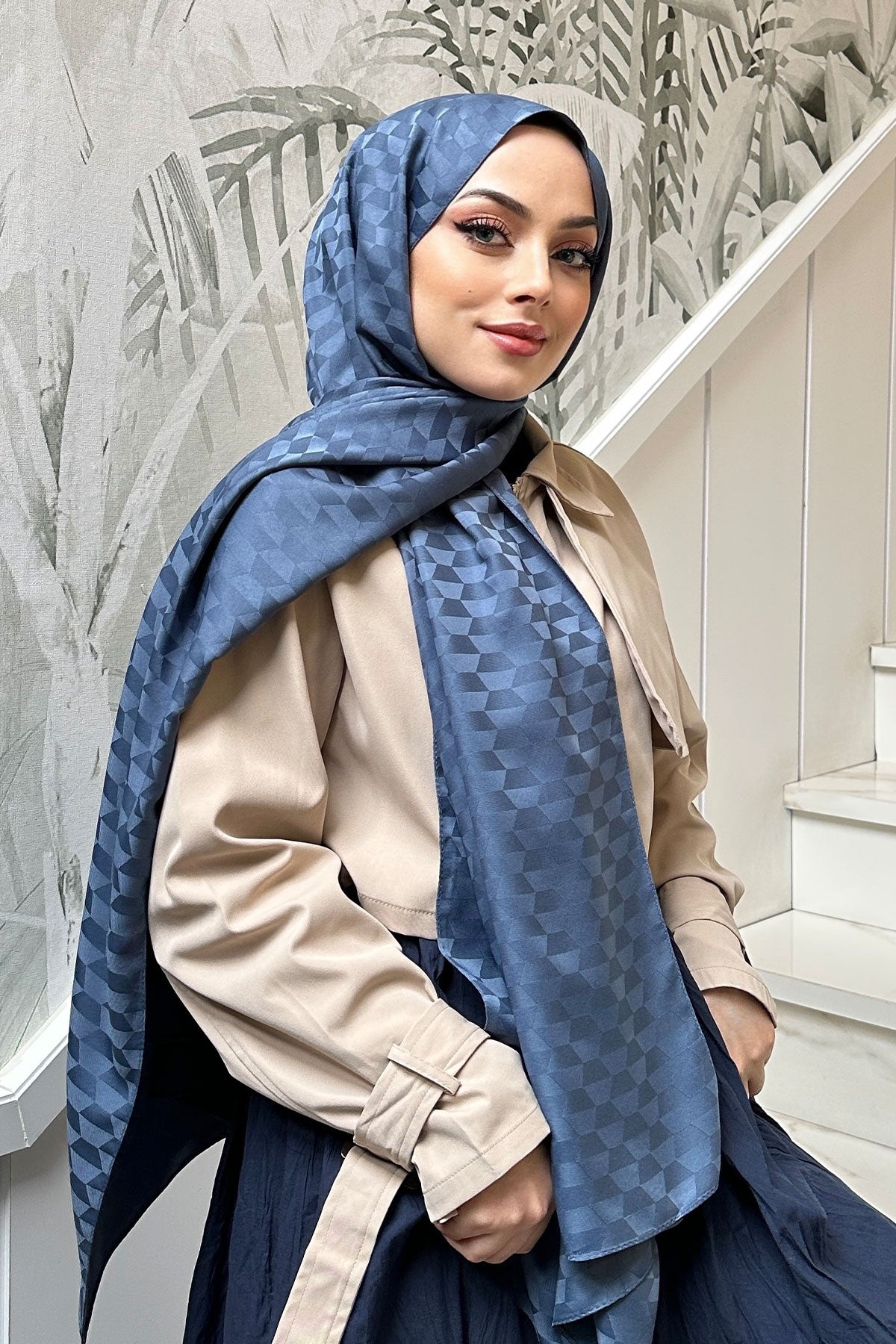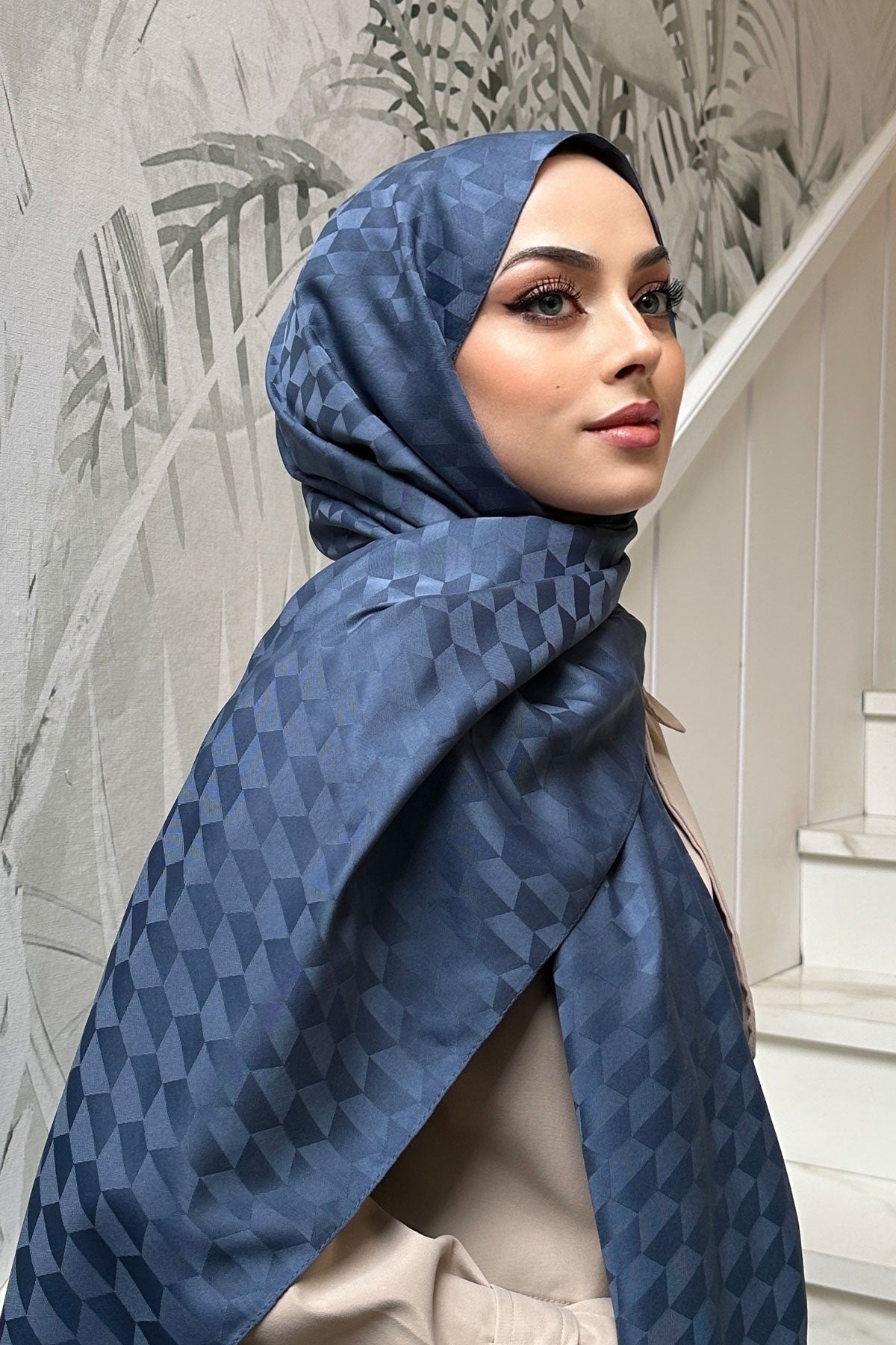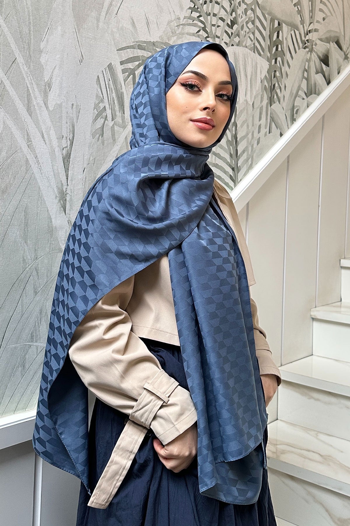 Blue Jacquard Shawl with Cocoon Pattern