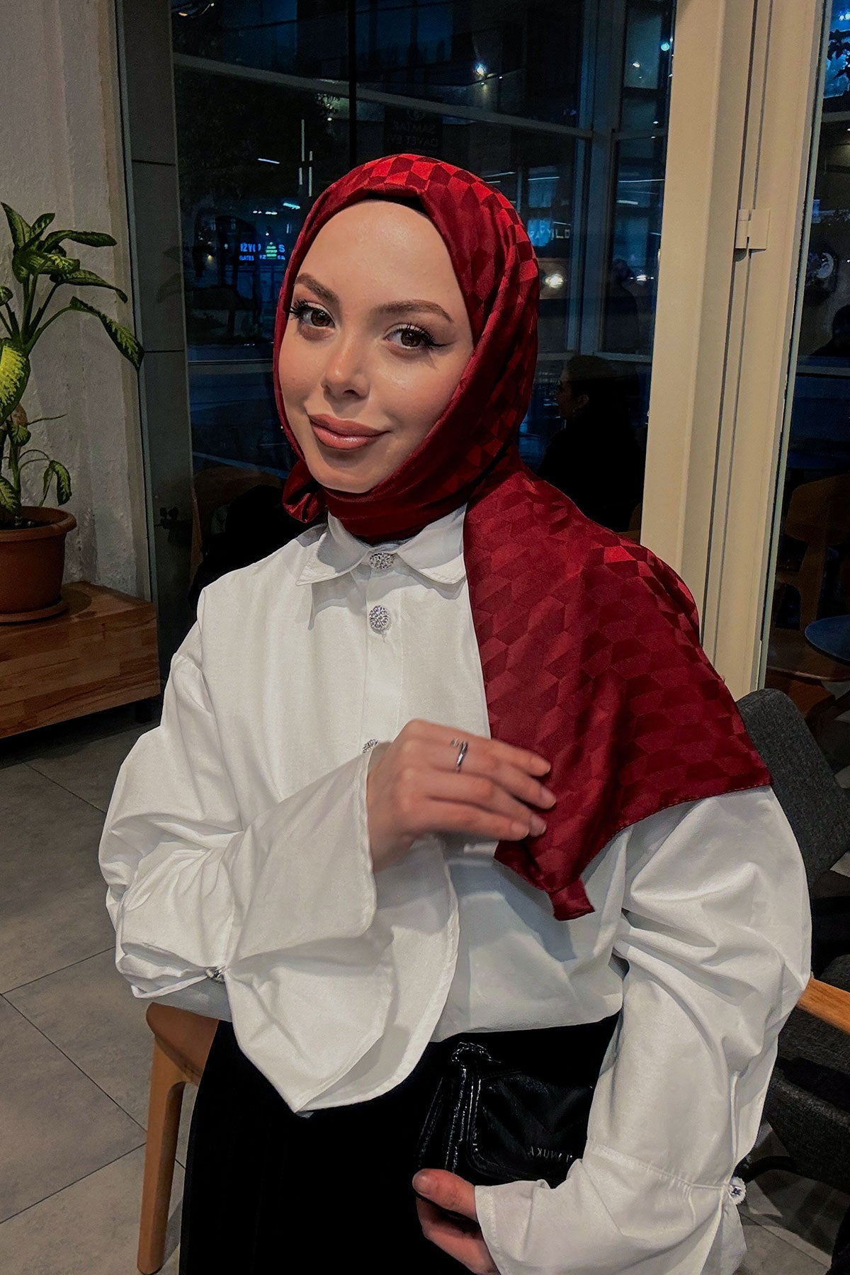 Burgundy Jacquard Shawl with Cocoon Pattern