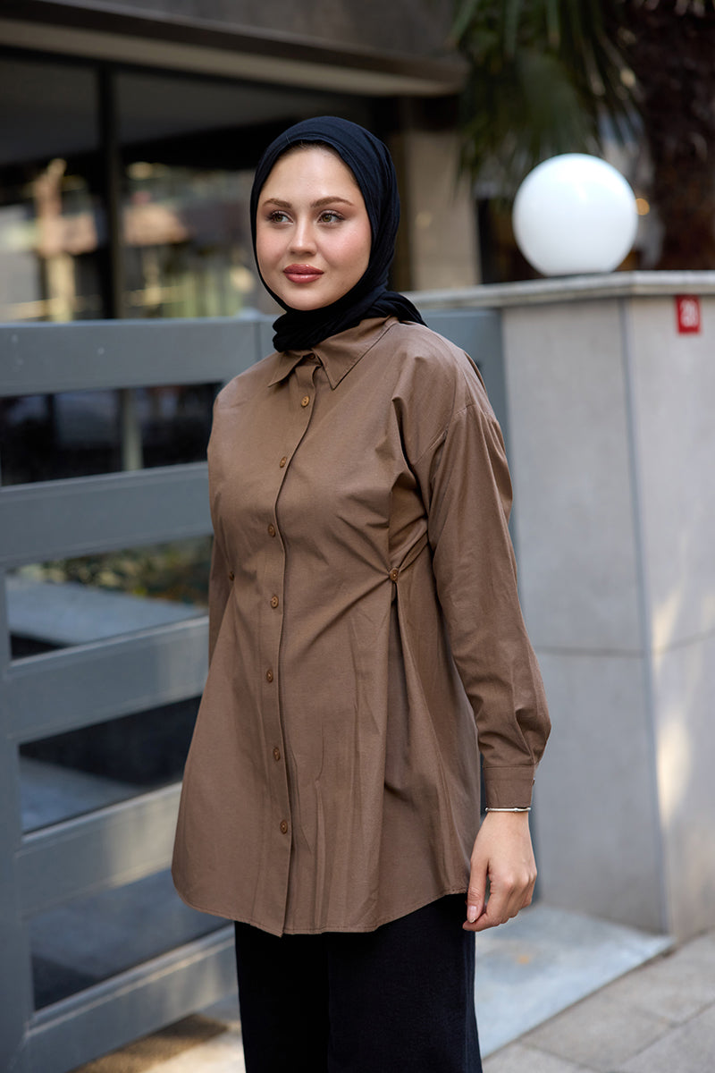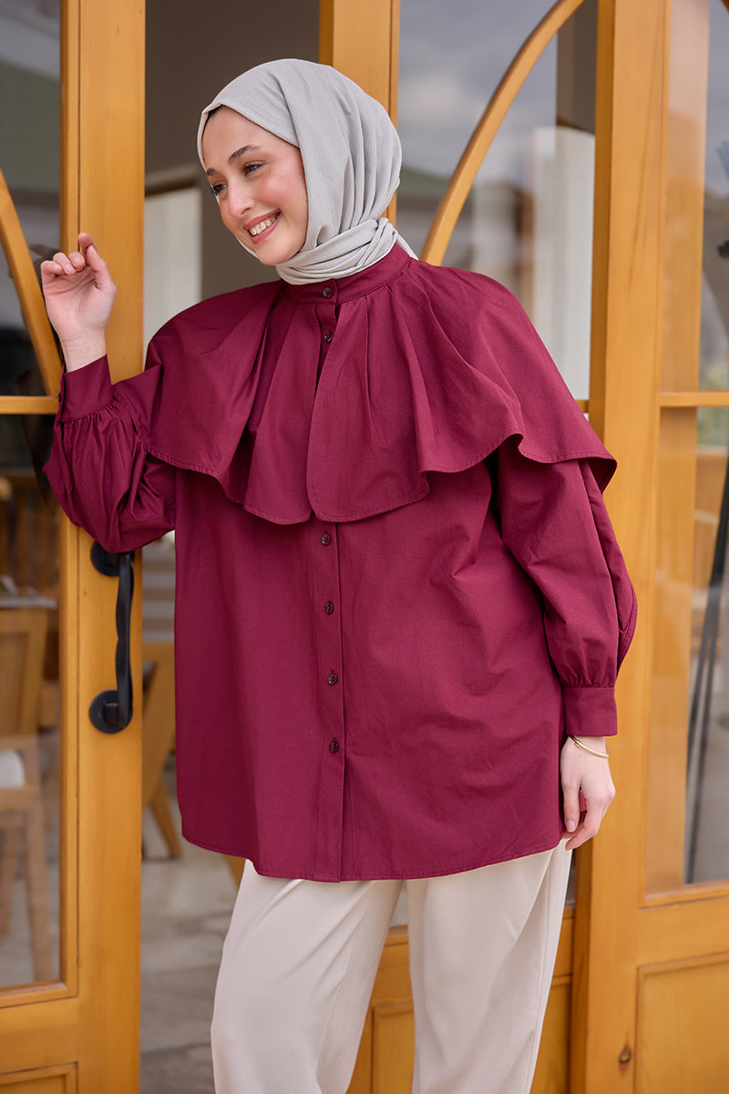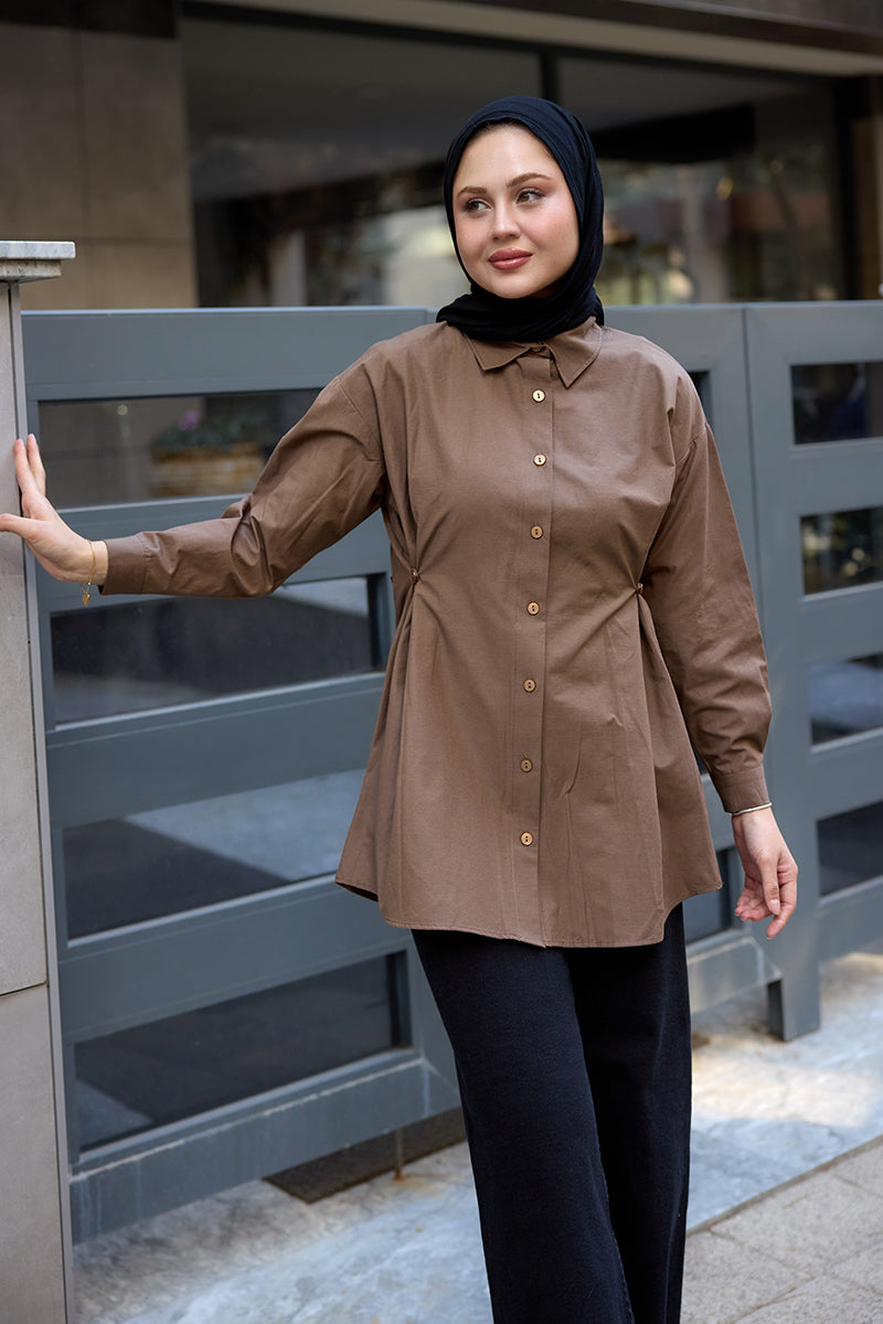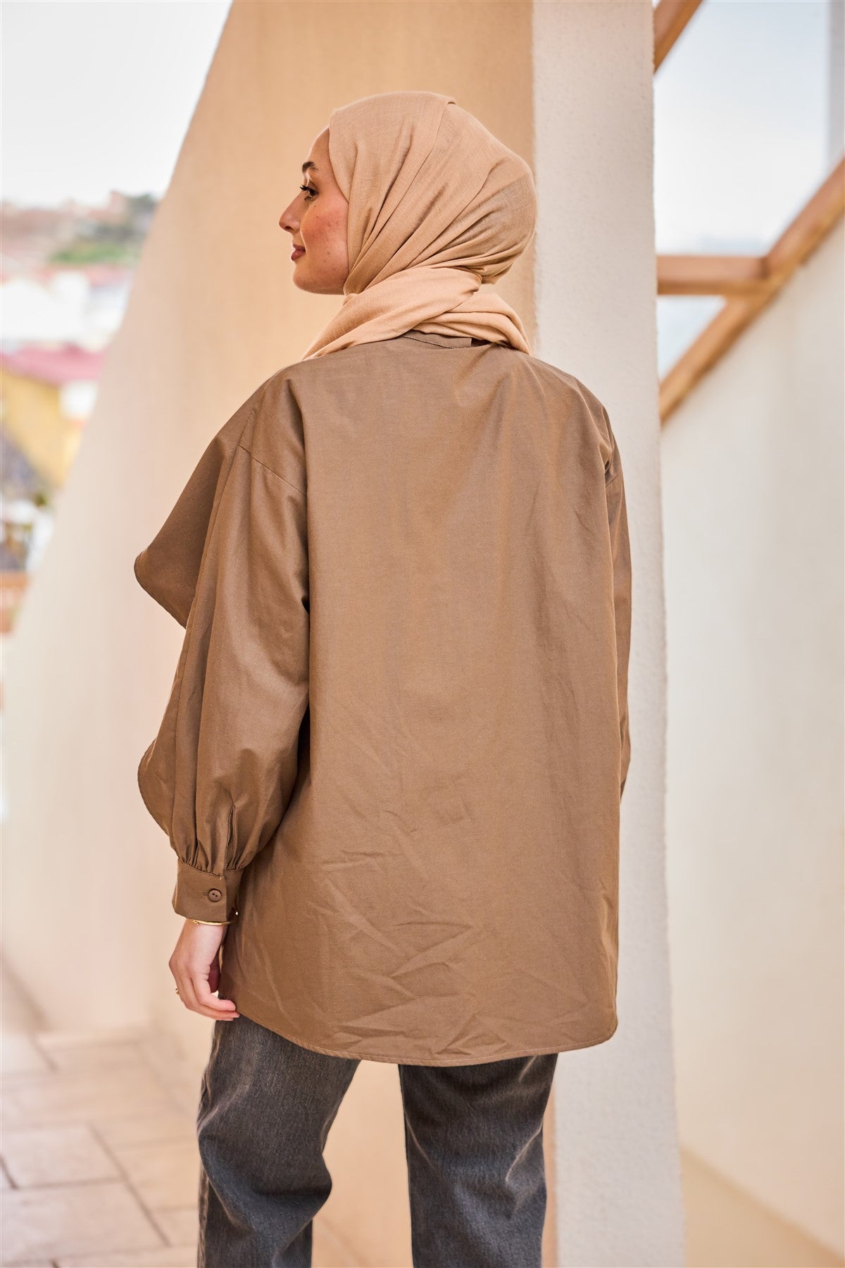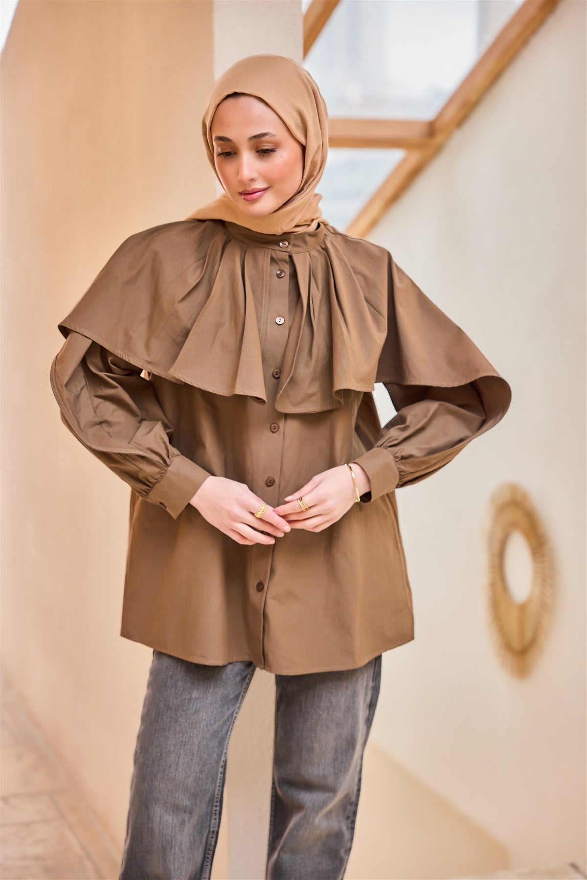 Balloon-Sleeve Double-Collar Shirt - Brown