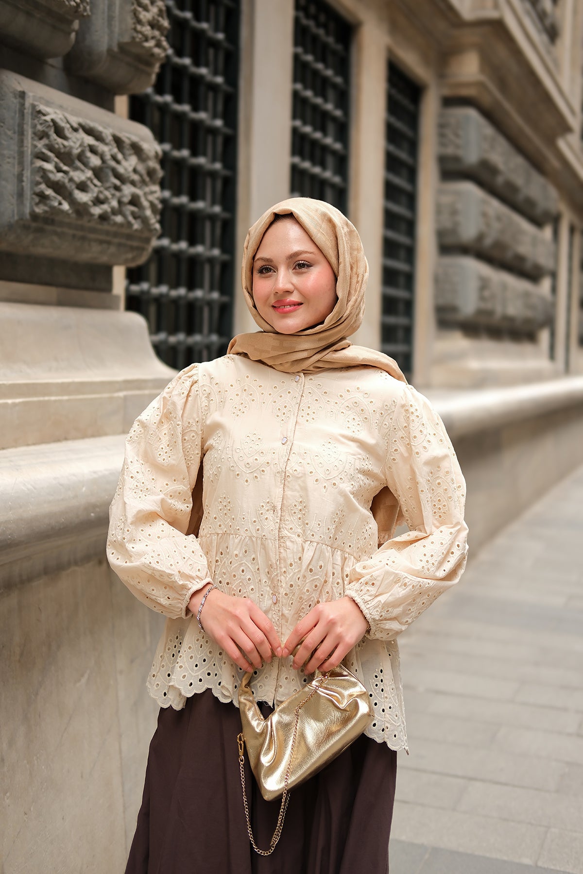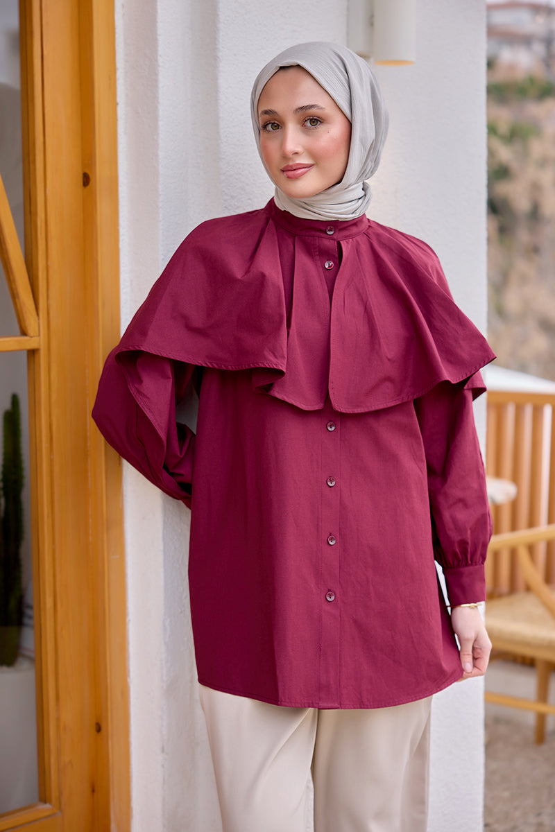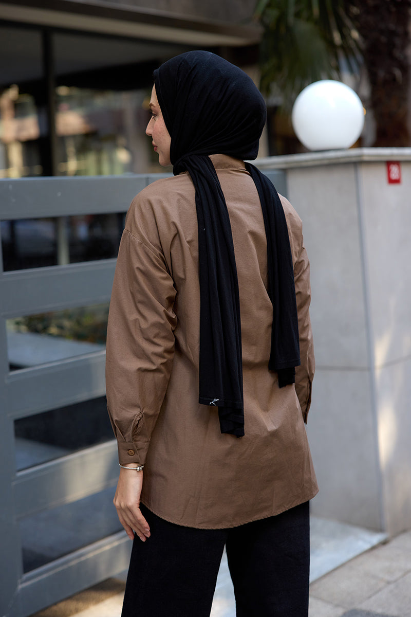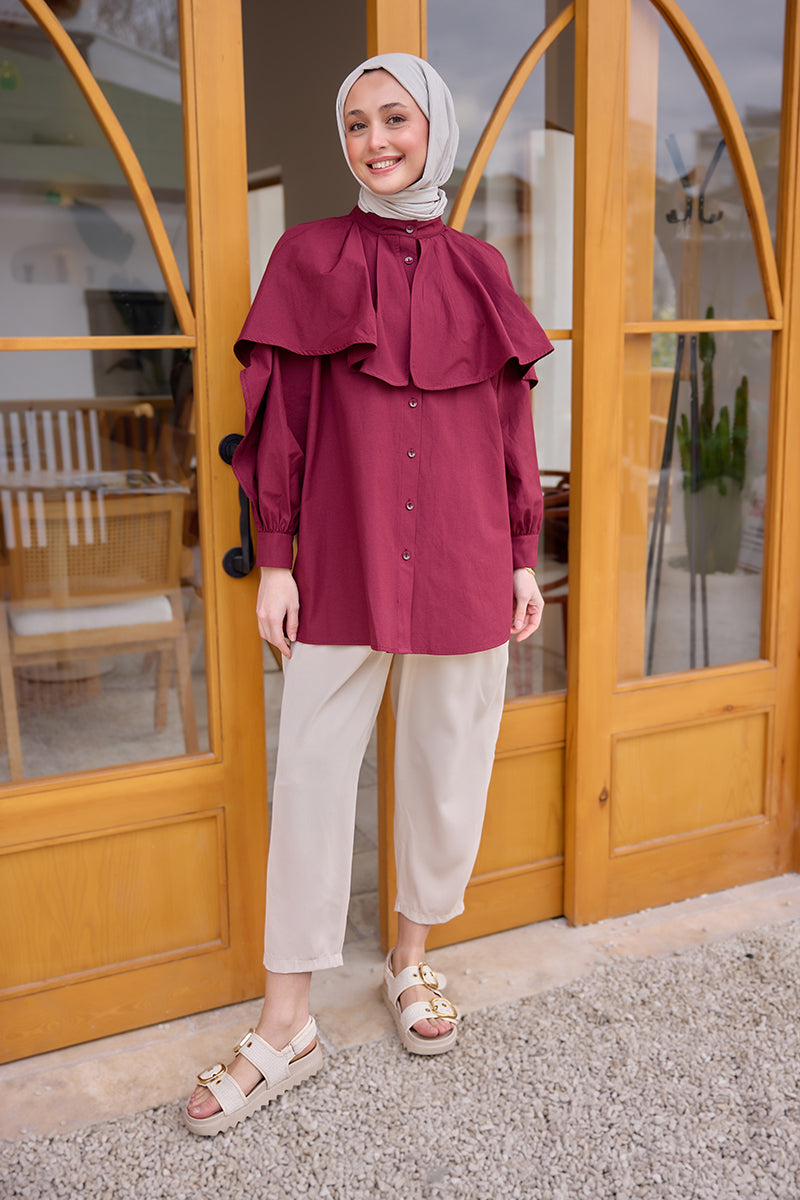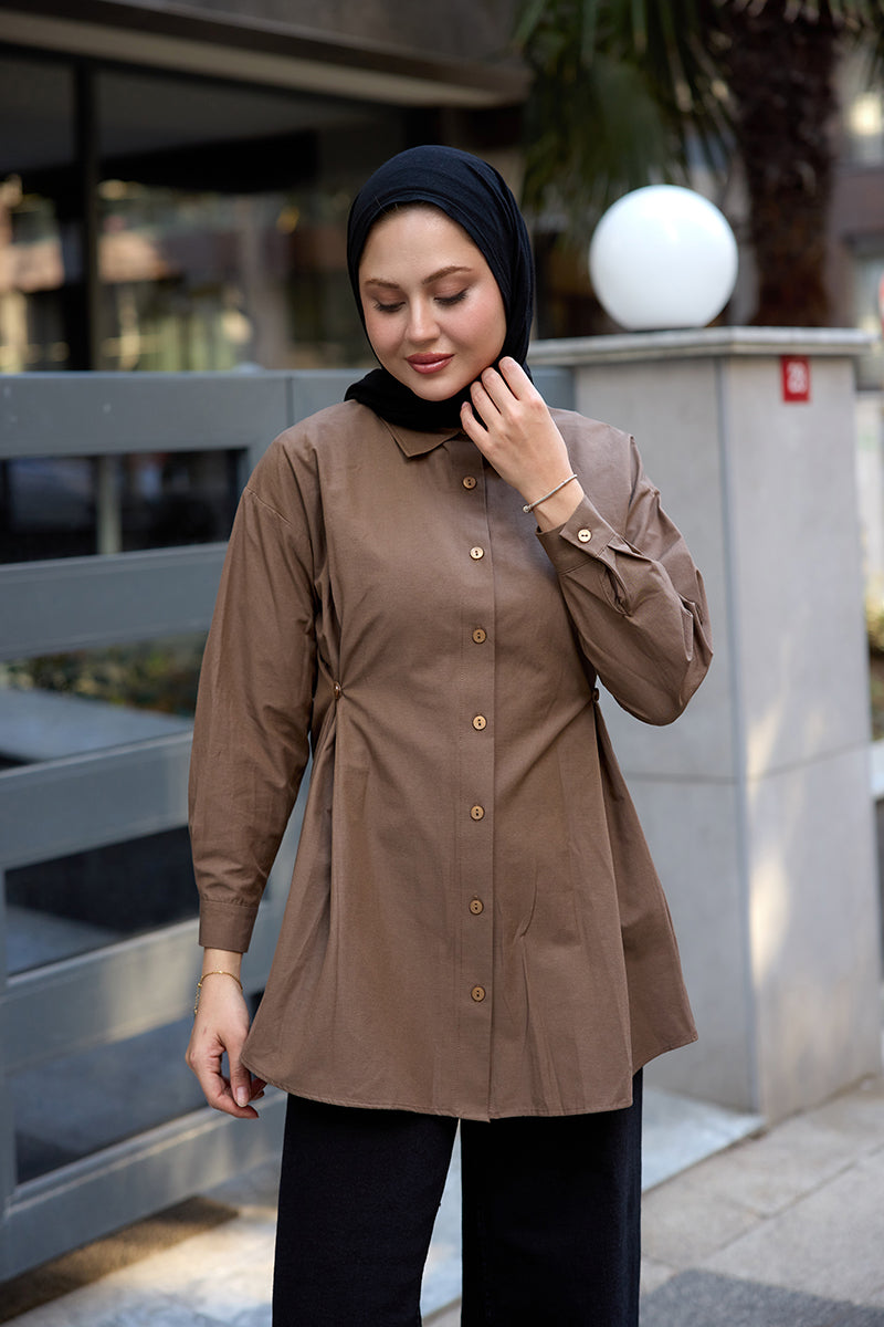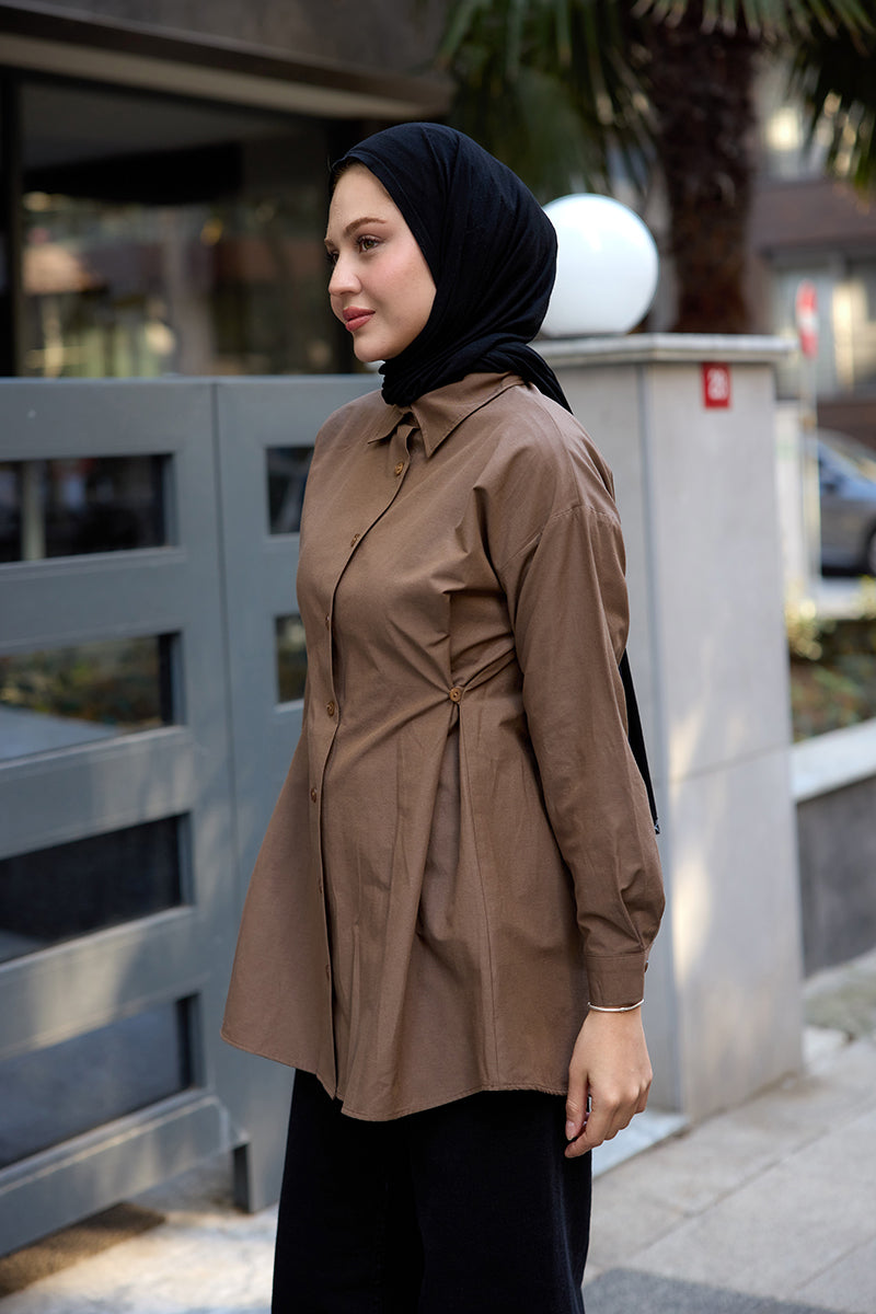 Balloon-Sleeve Double-Collar Shirt - Brown