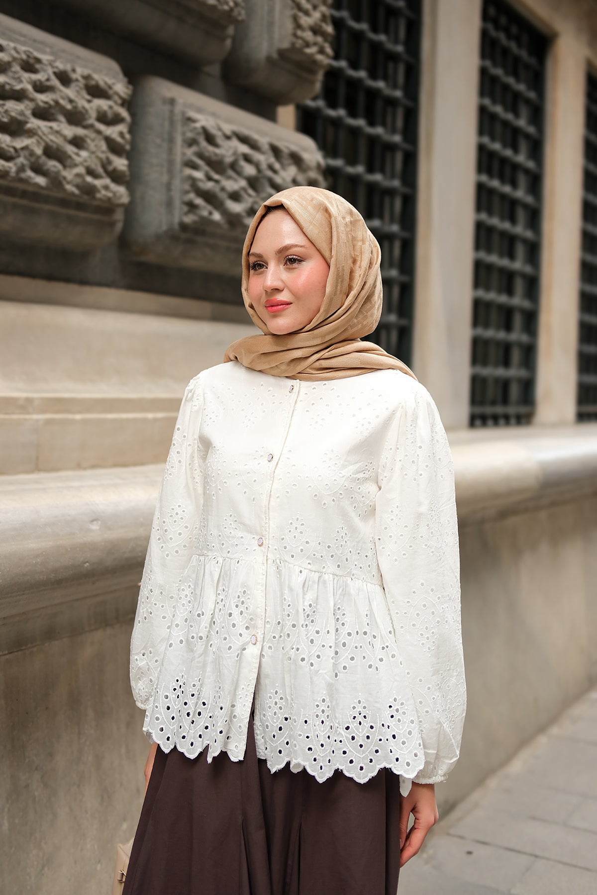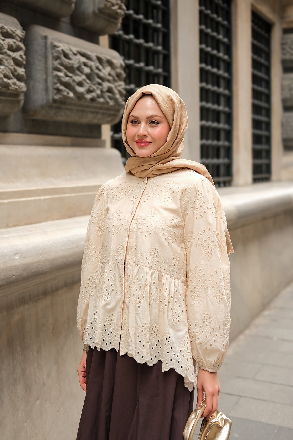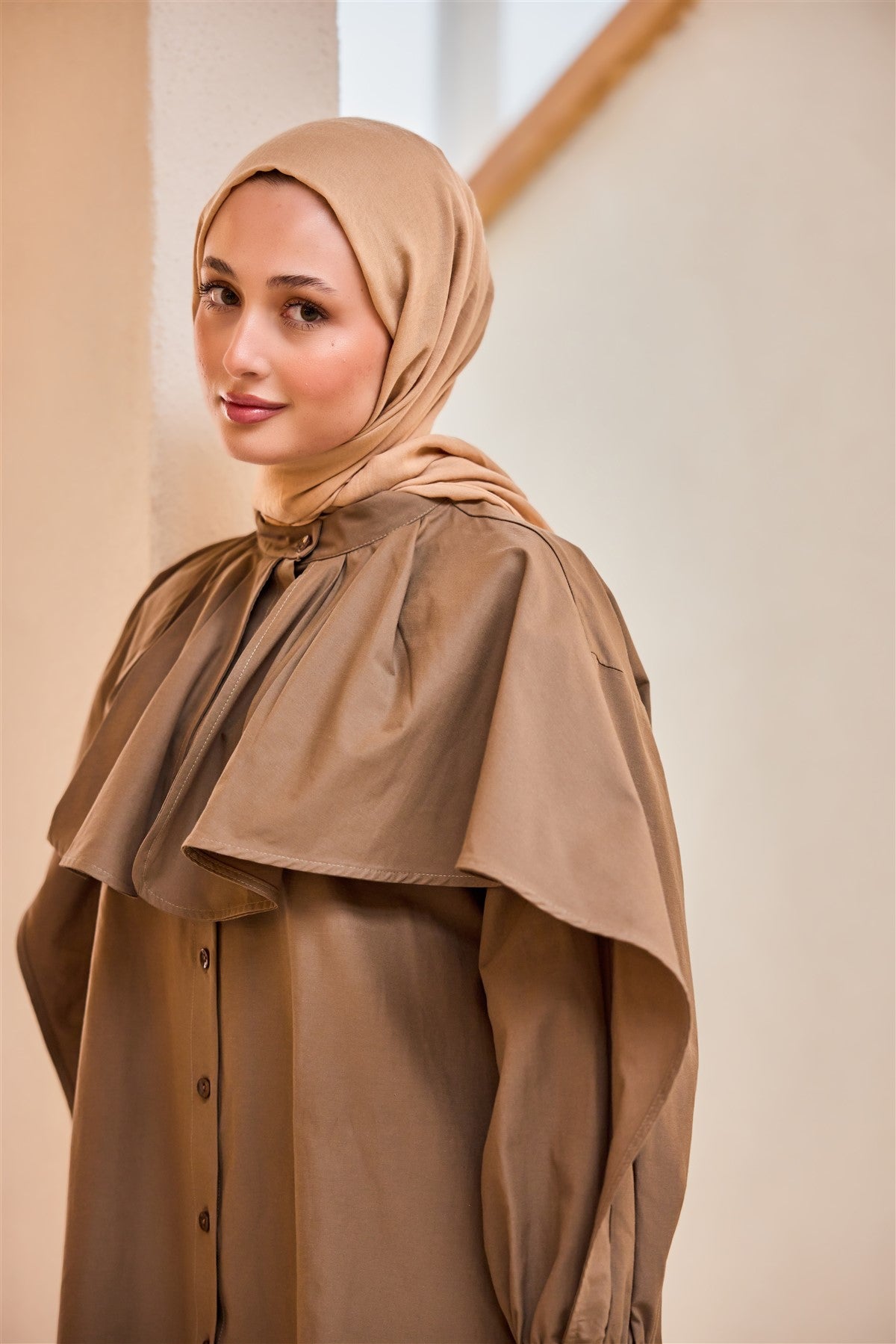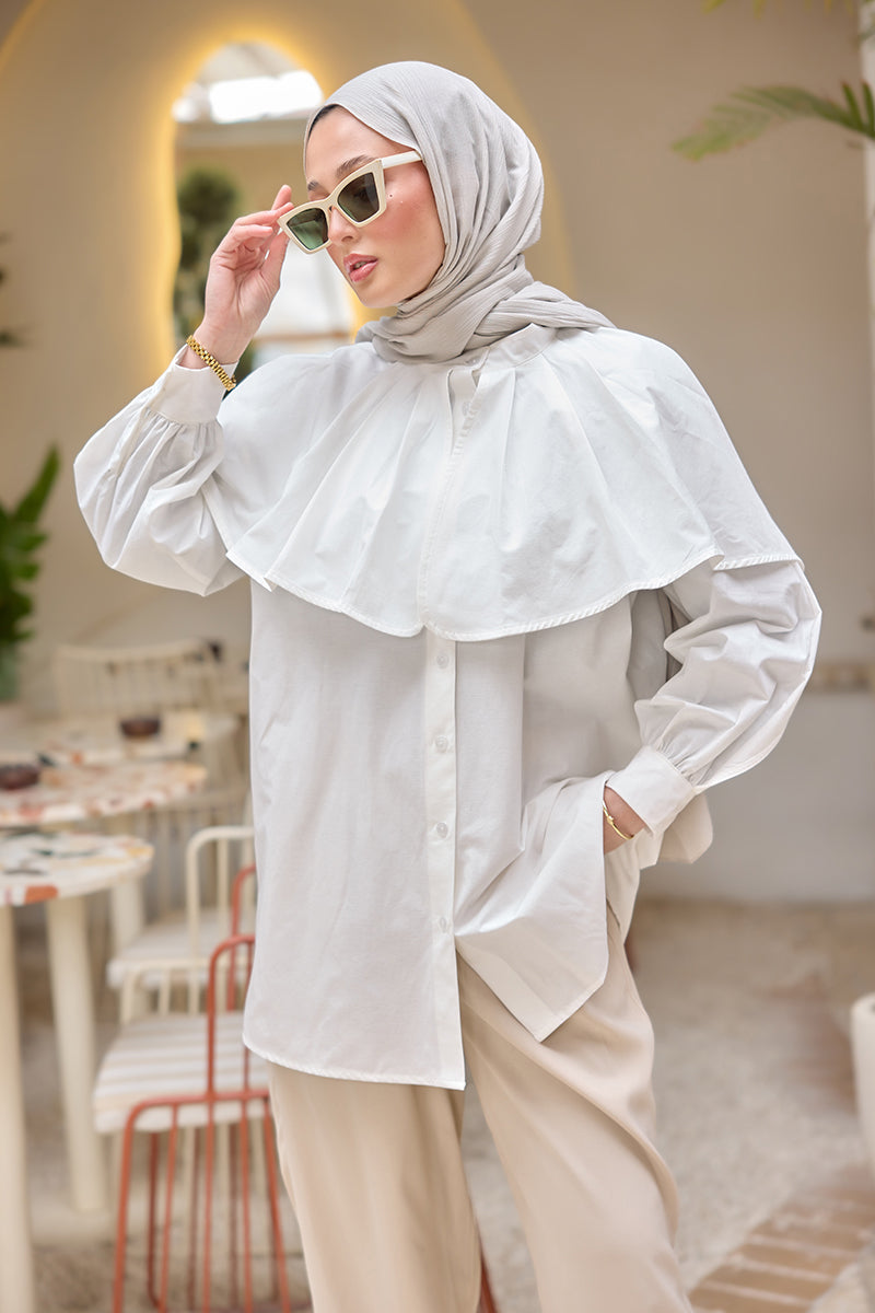 Balloon-Sleeve Double-Collar Shirt - Brown