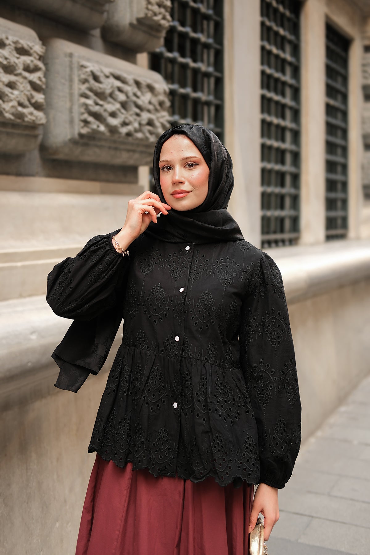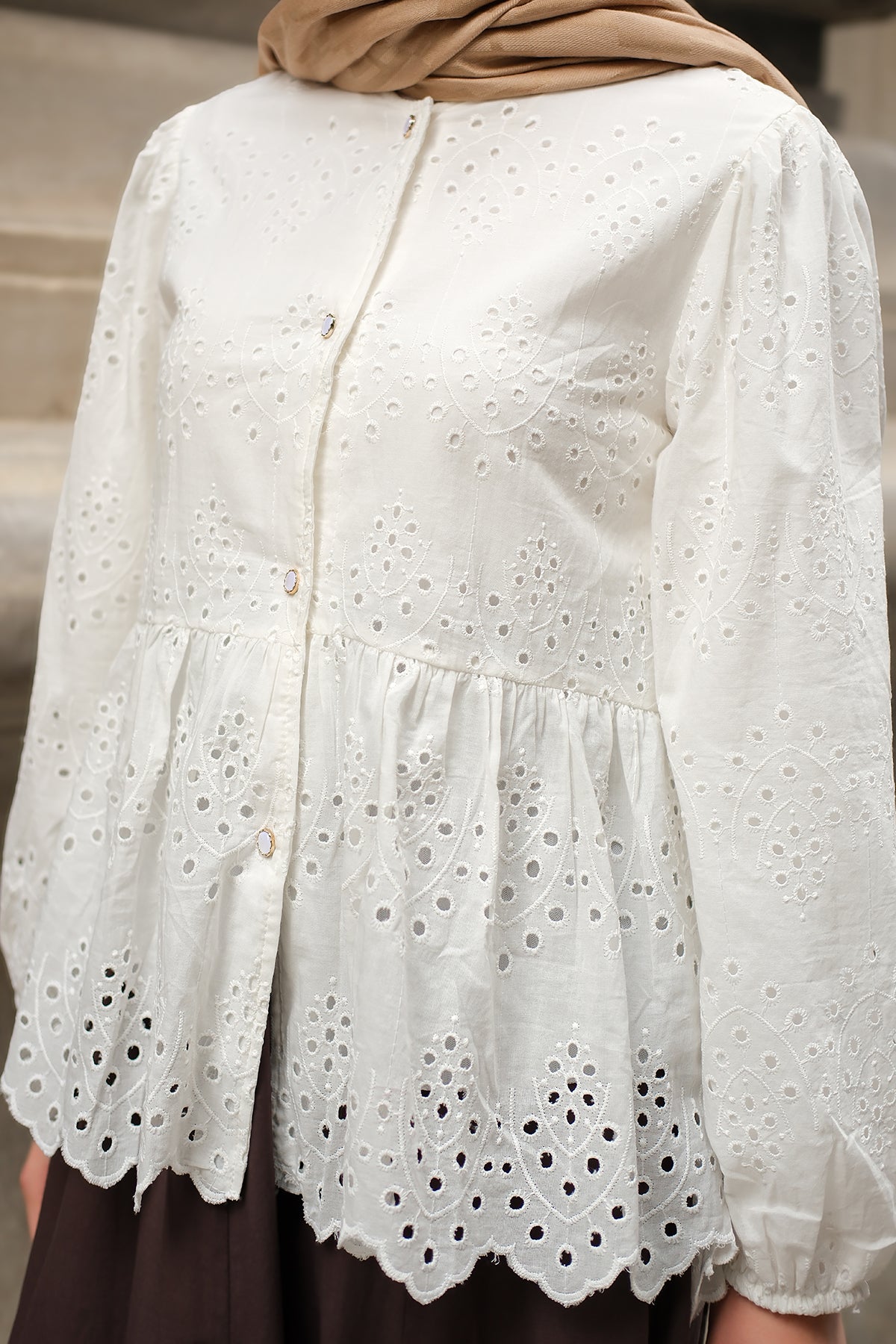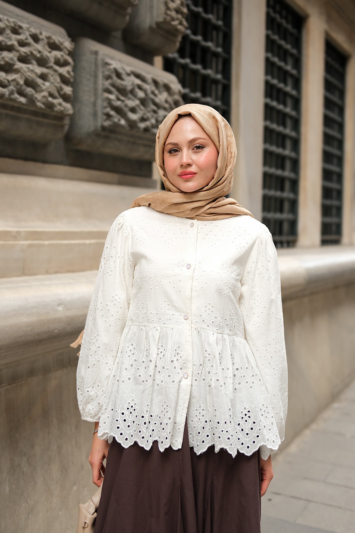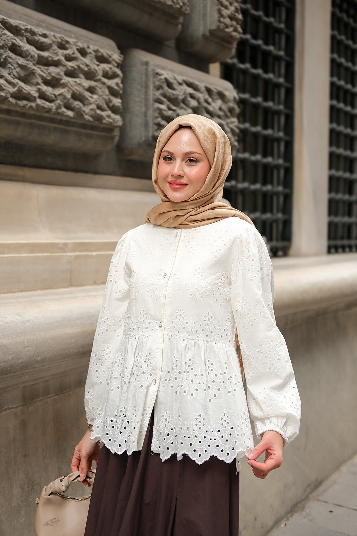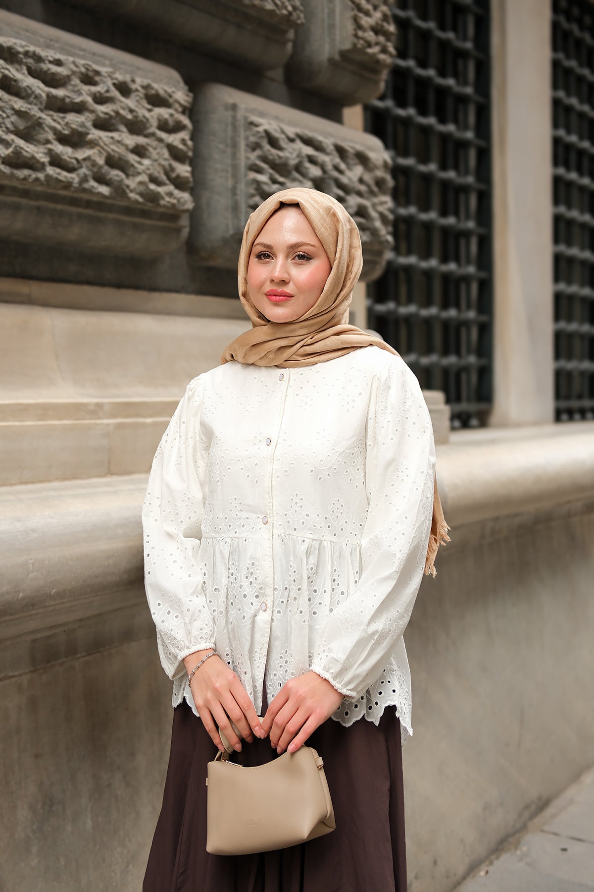Balloon-Sleeve Double-Collar Shirt - Brown