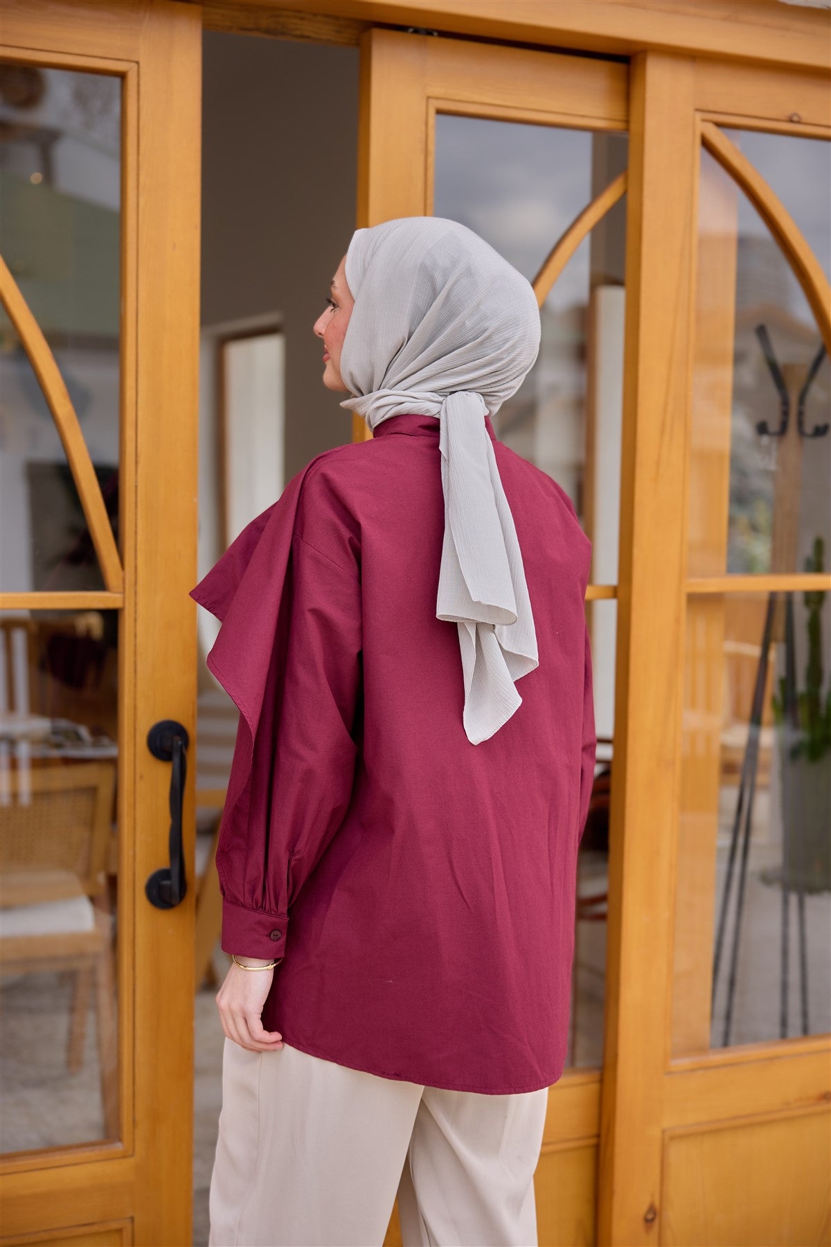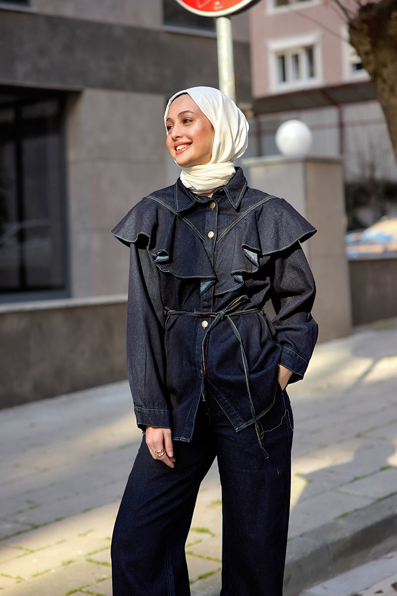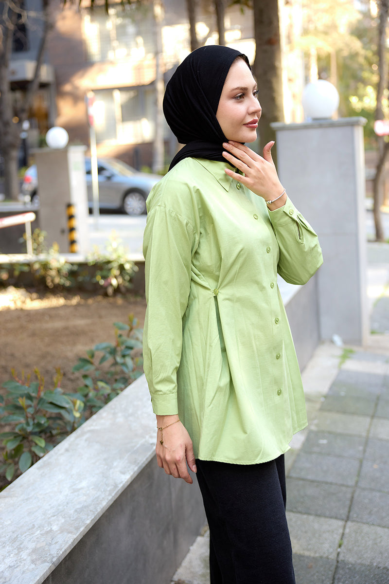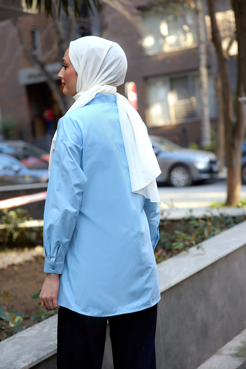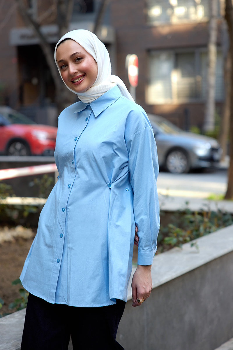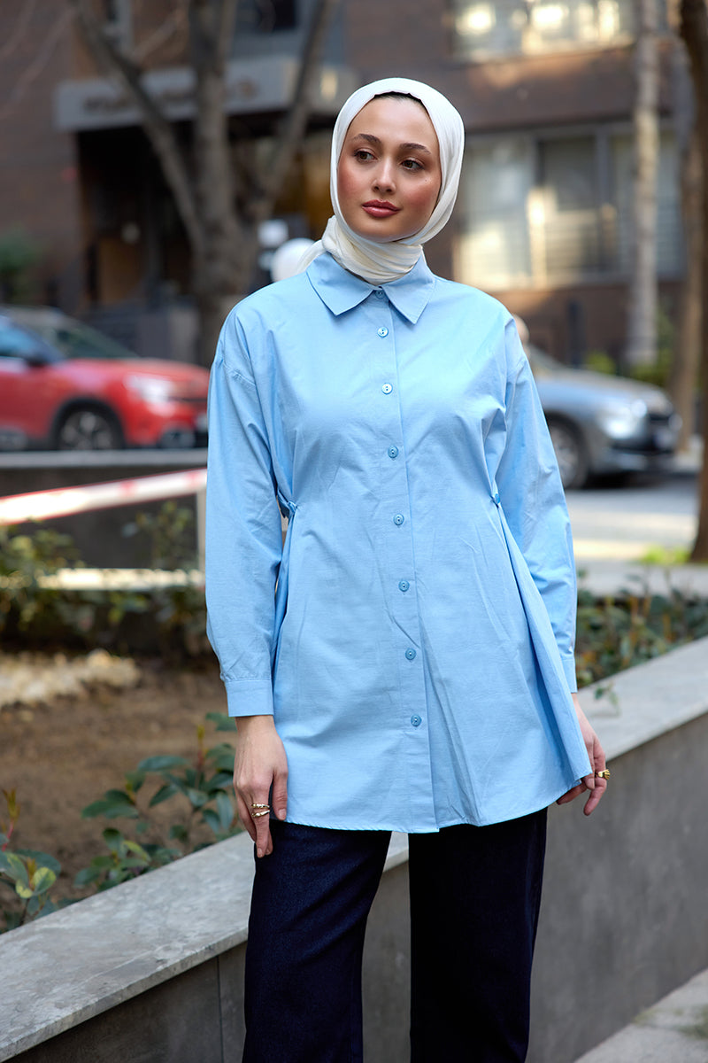 Shirt with Pleated Collar and Sleeve Details Navy Blue