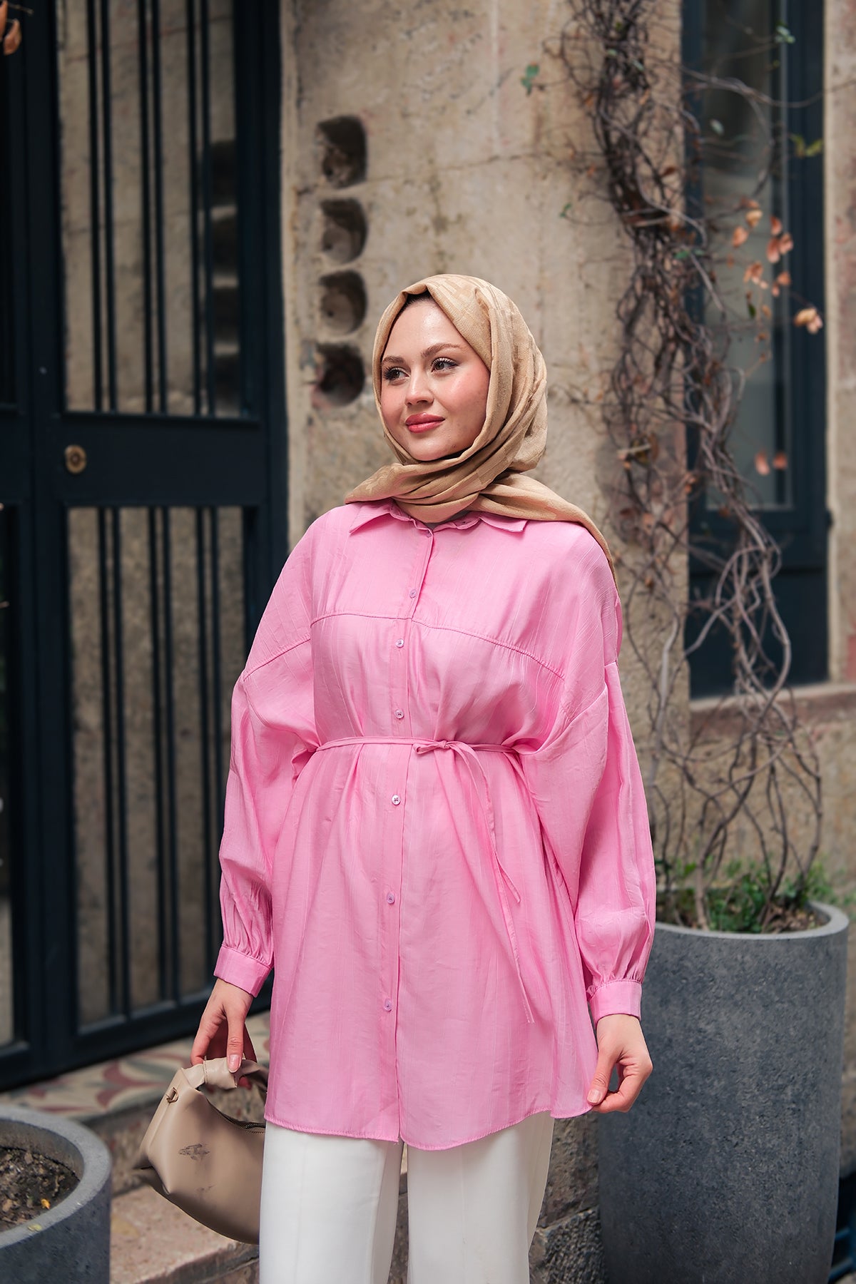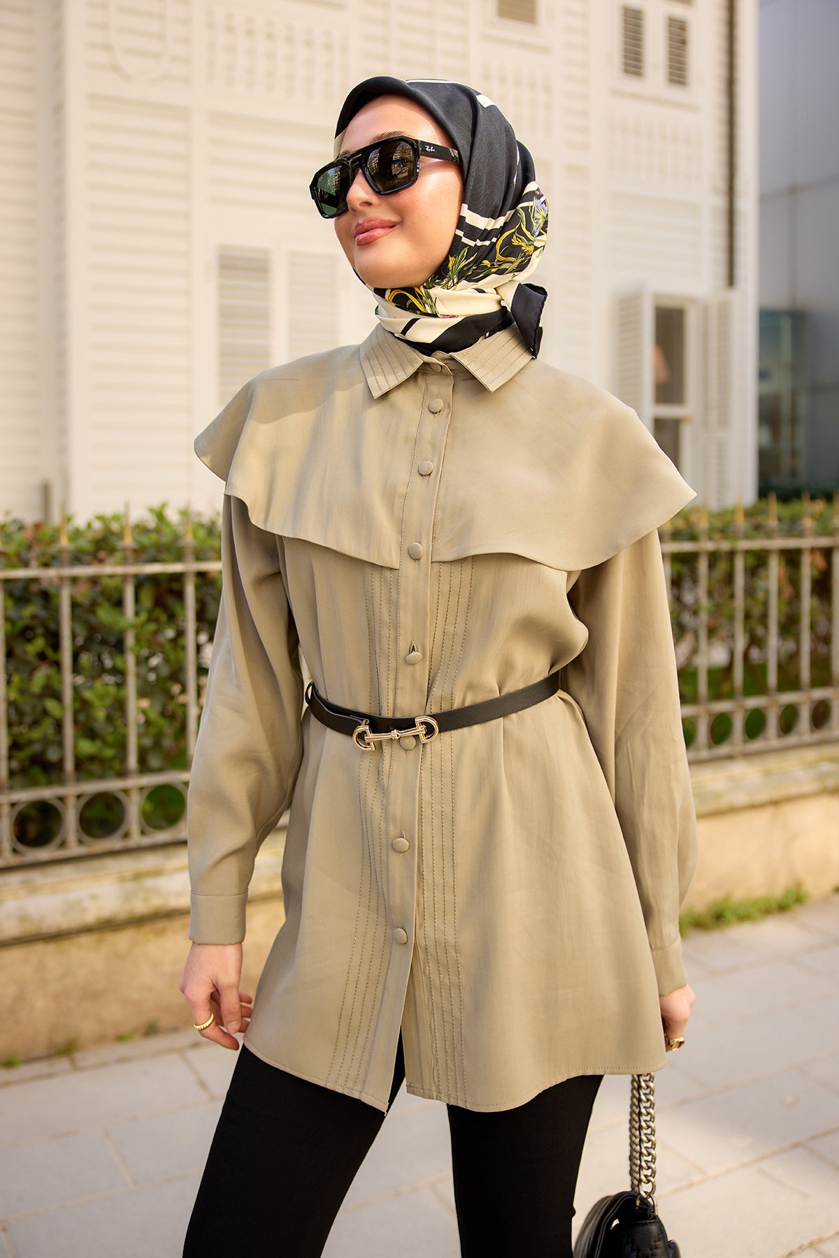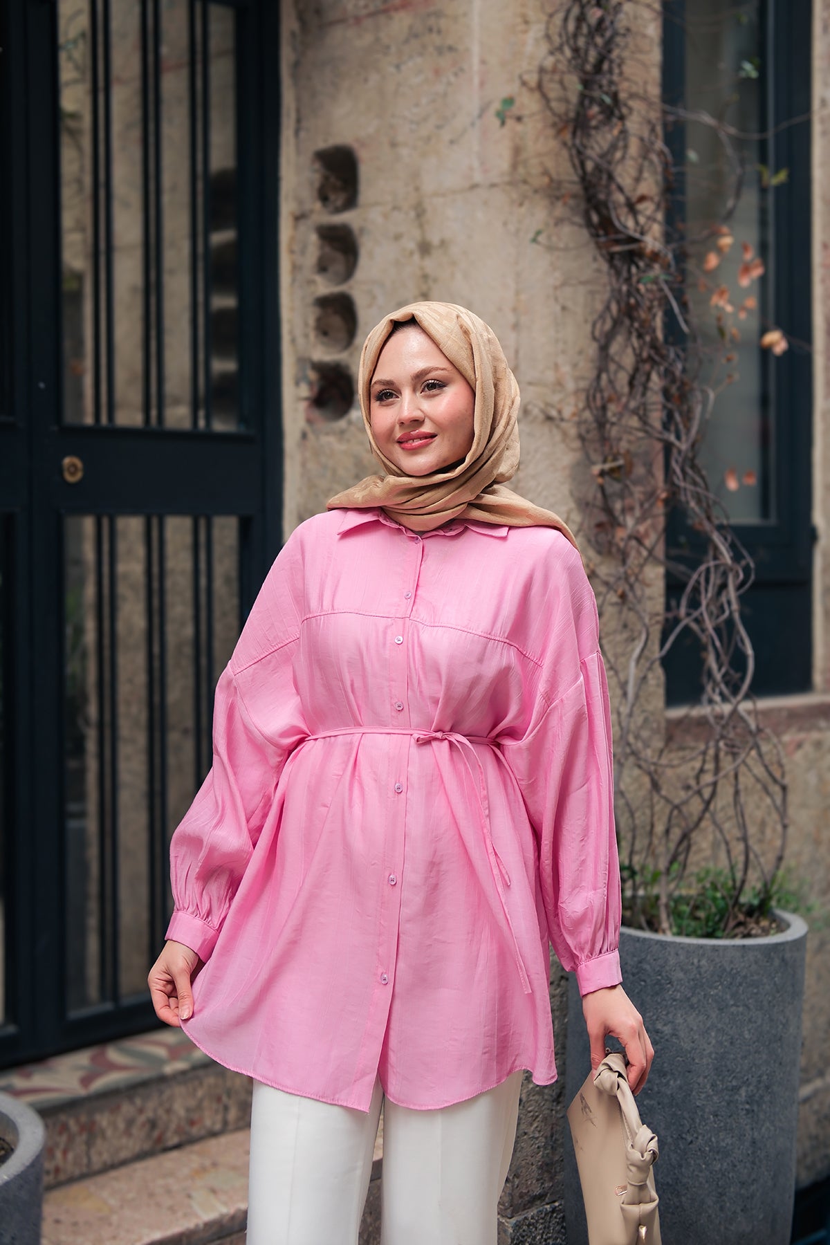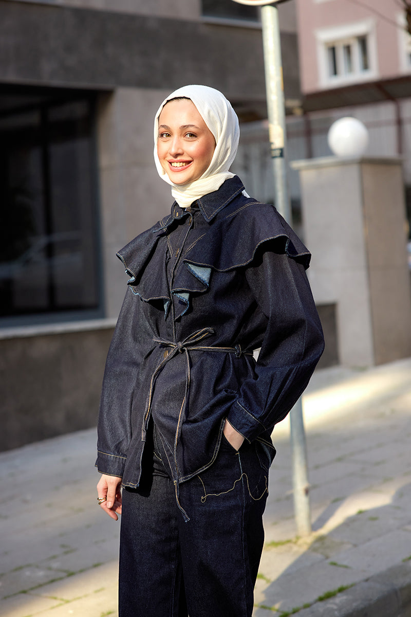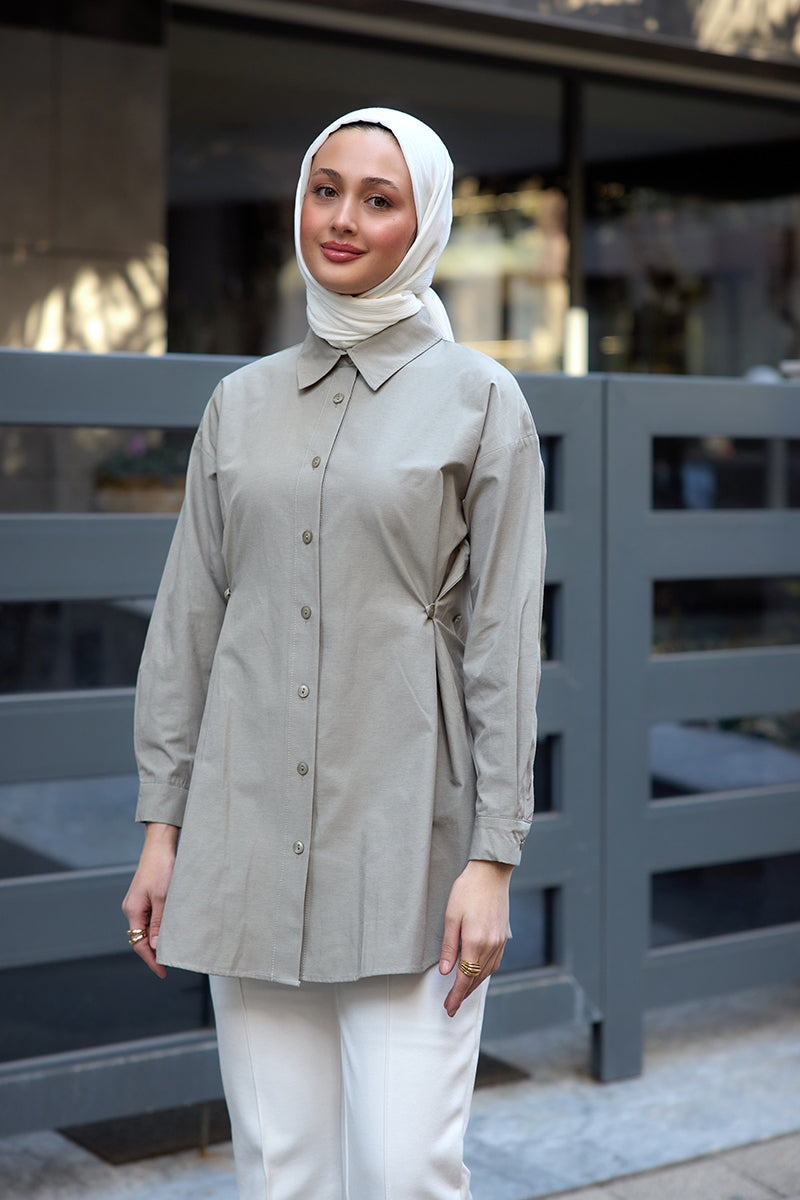 Shirt with Pleated Collar and Sleeve Details Navy Blue