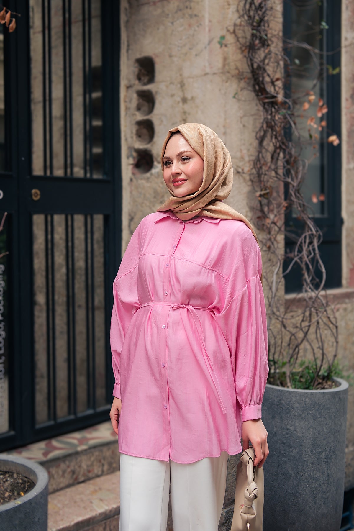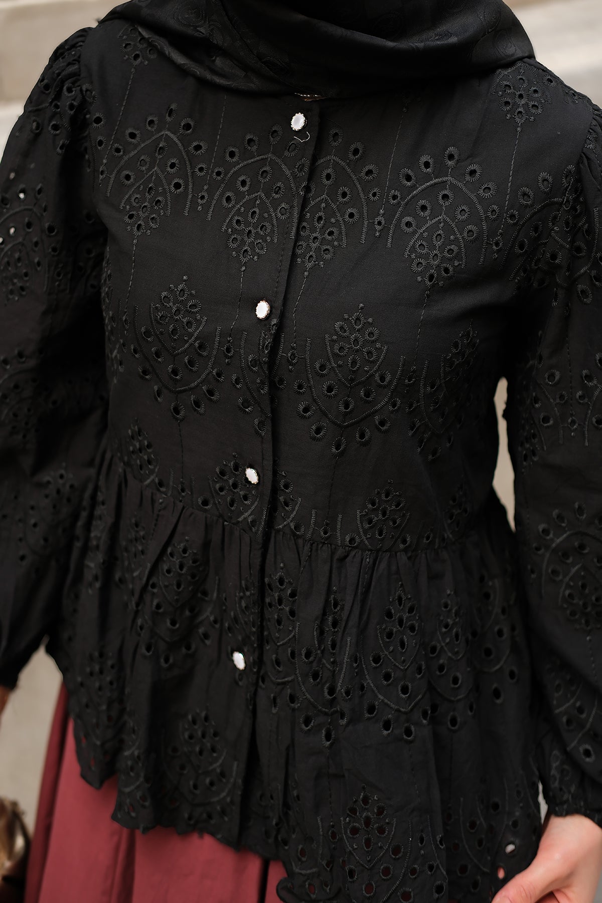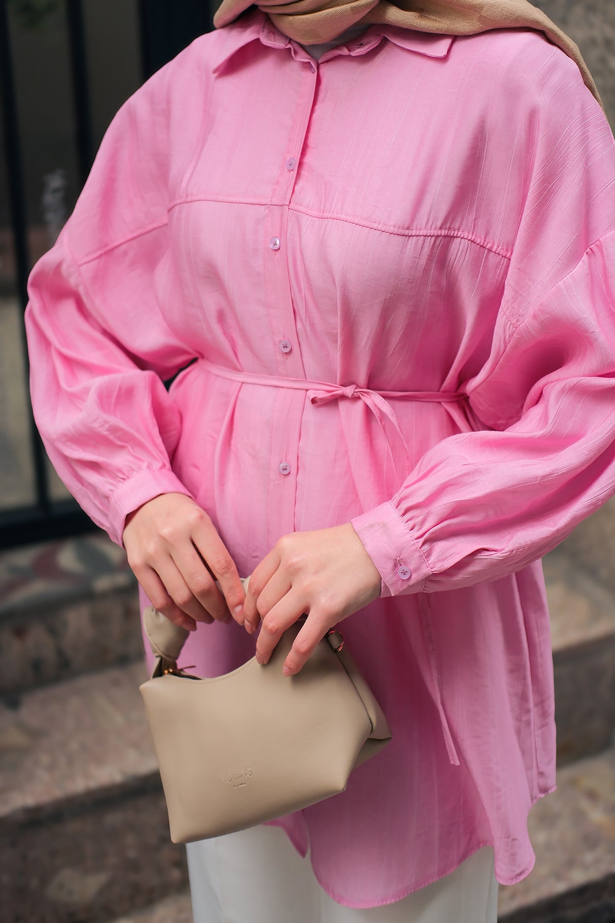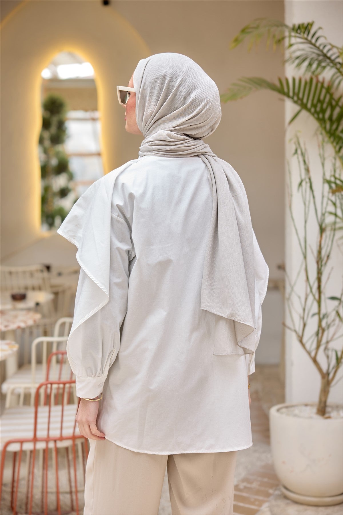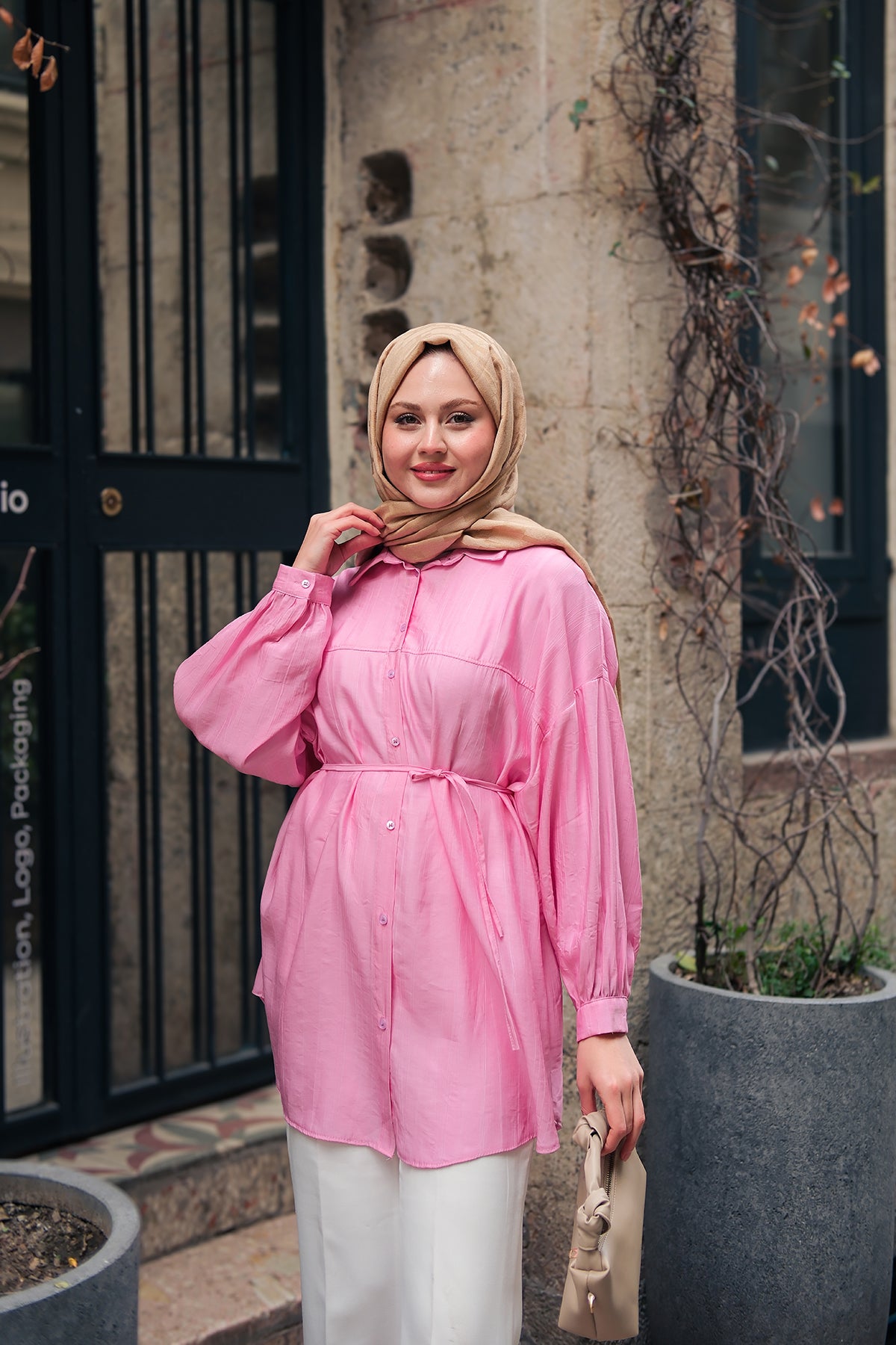 Shirt with Pleated Collar and Sleeve Details Navy Blue