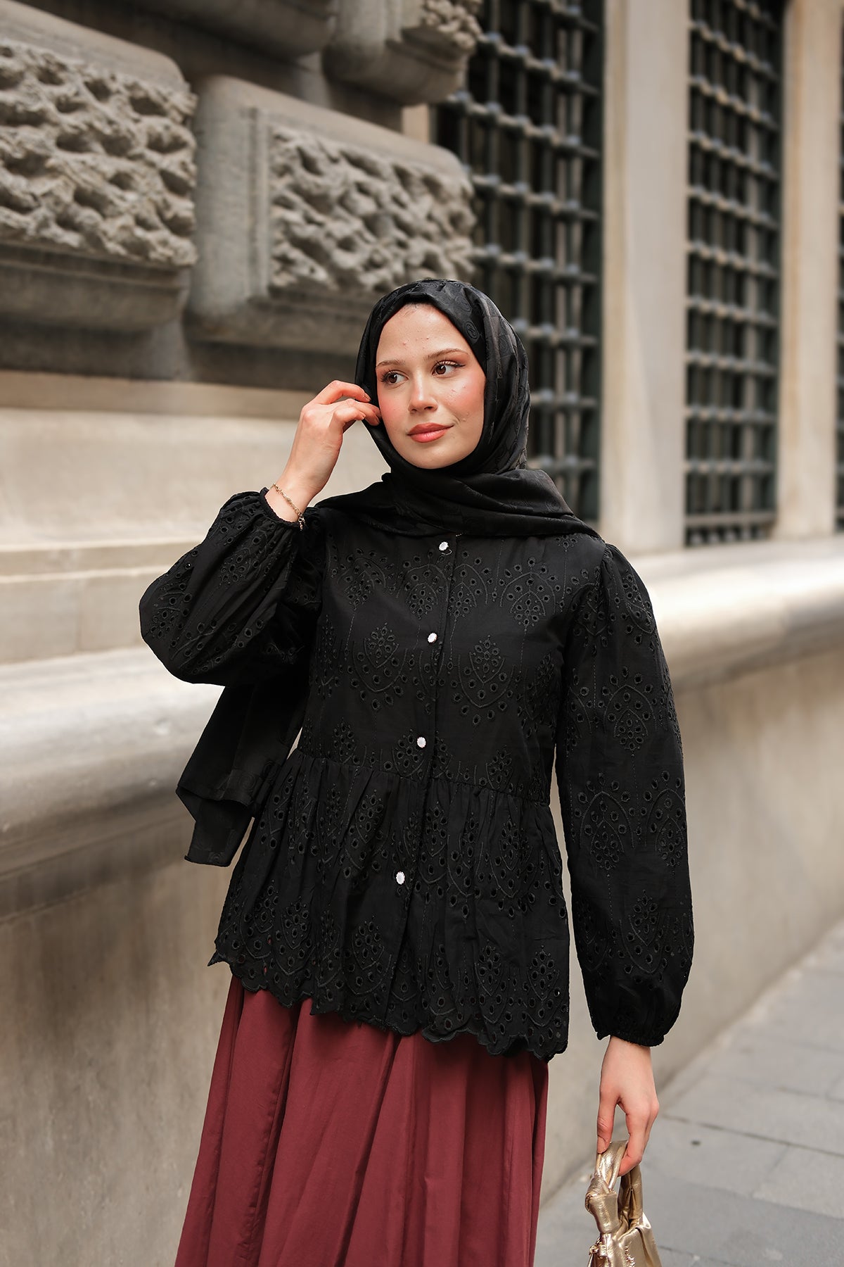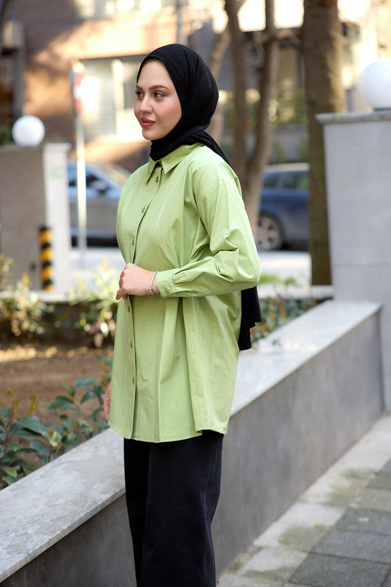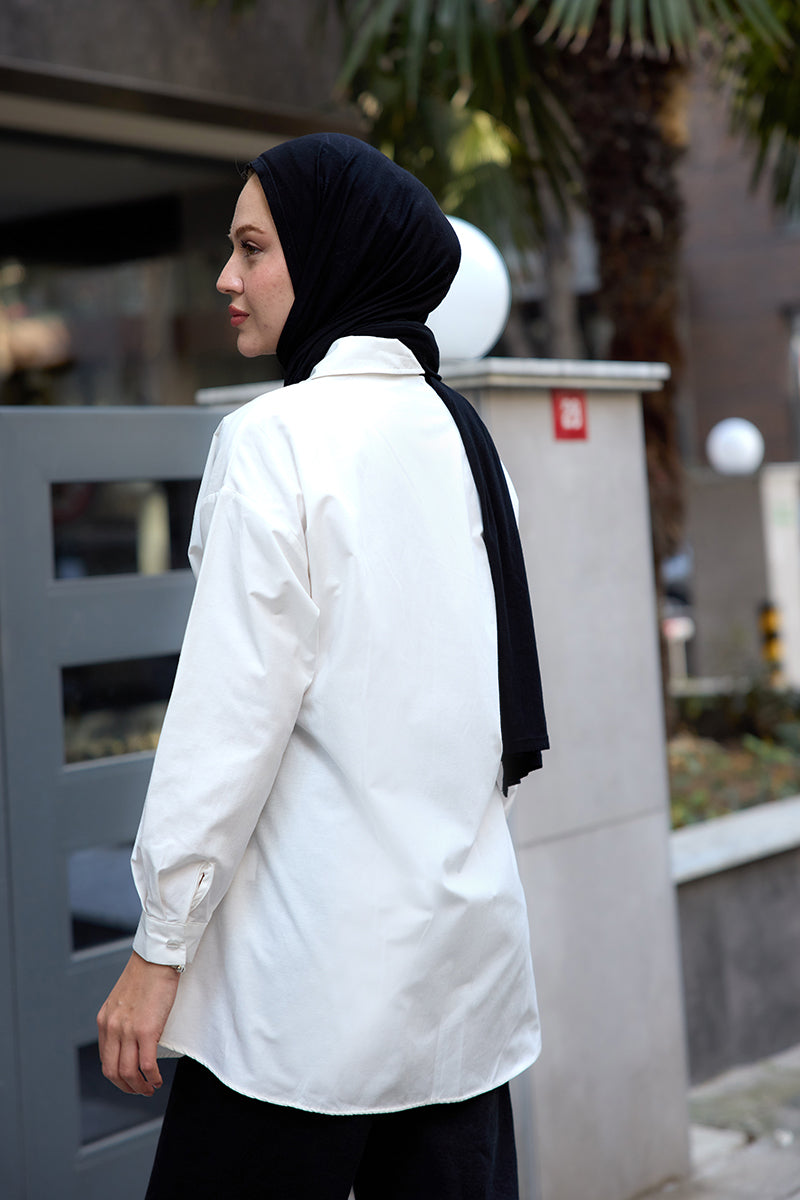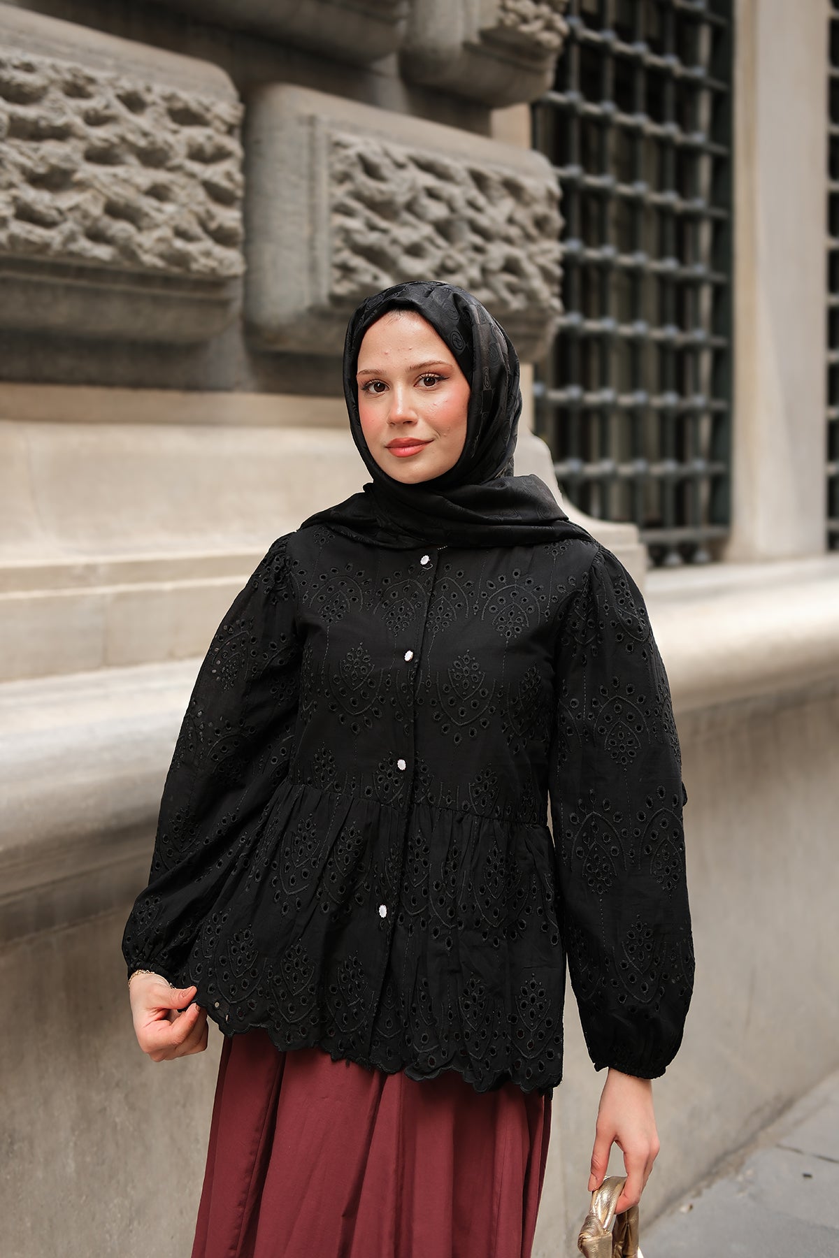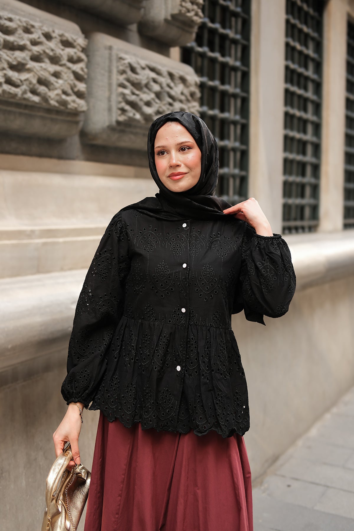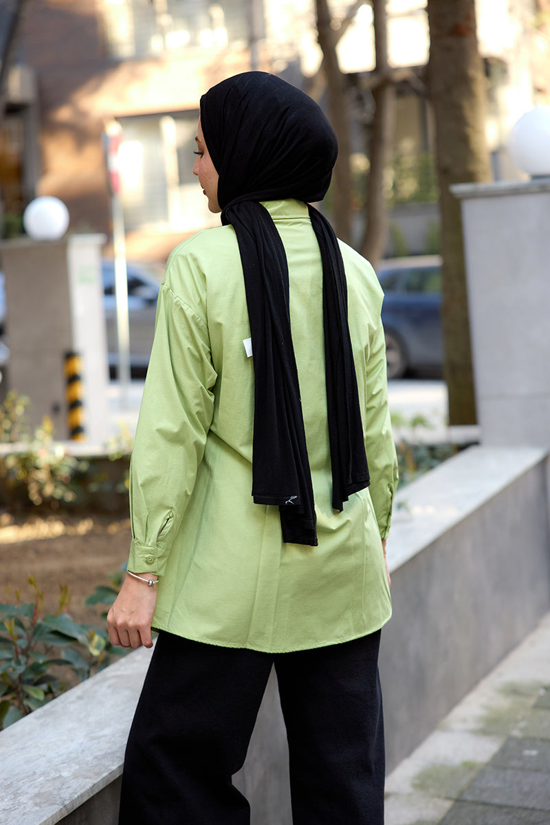 Shirt with Pleated Collar and Sleeve Details Navy Blue