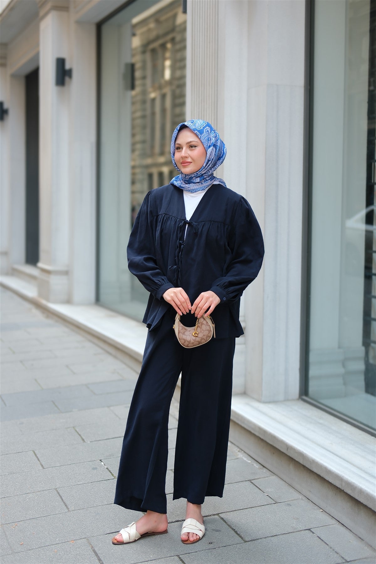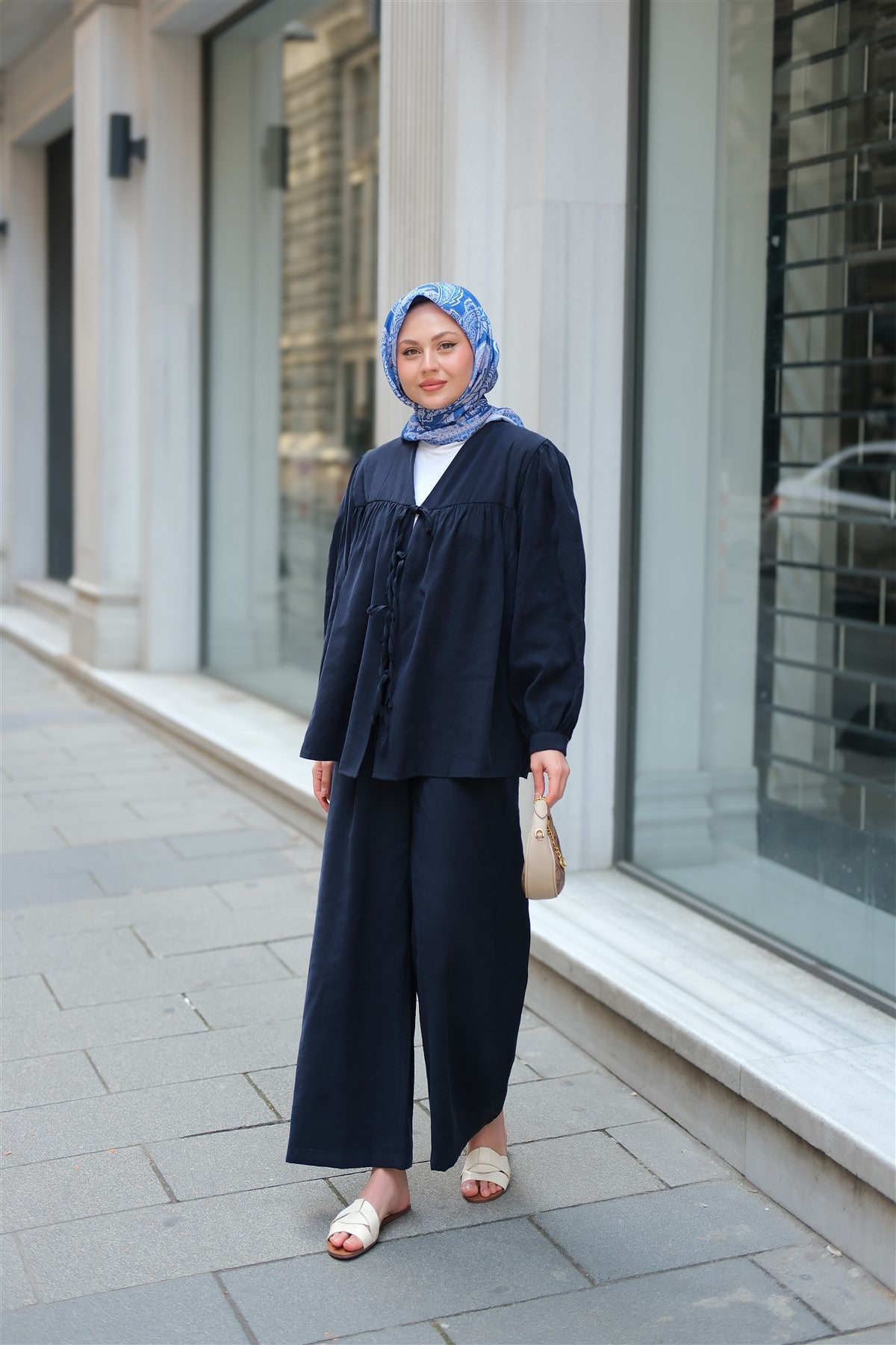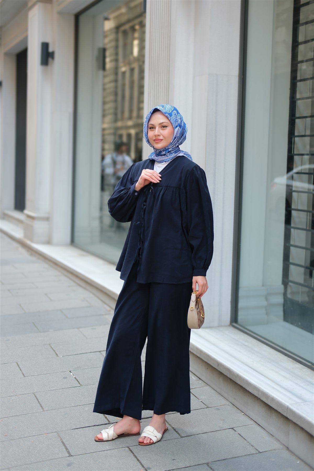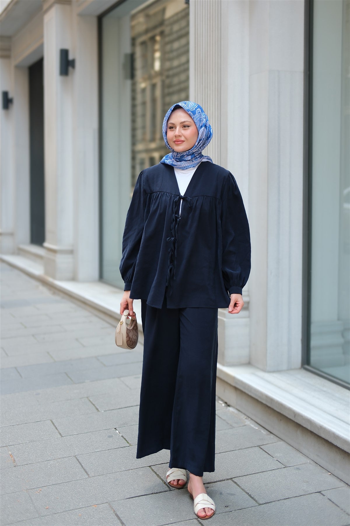 Front-Tied Cupra Suit Navy Blue