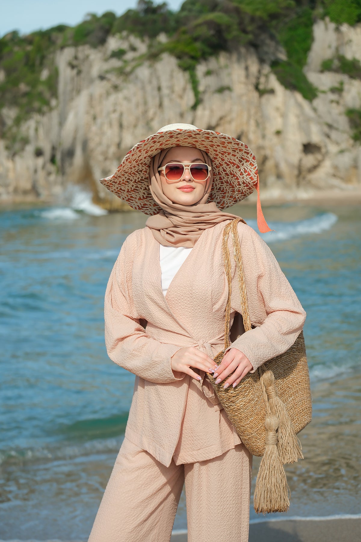 Crinkle Textured Suit - Mink Beige