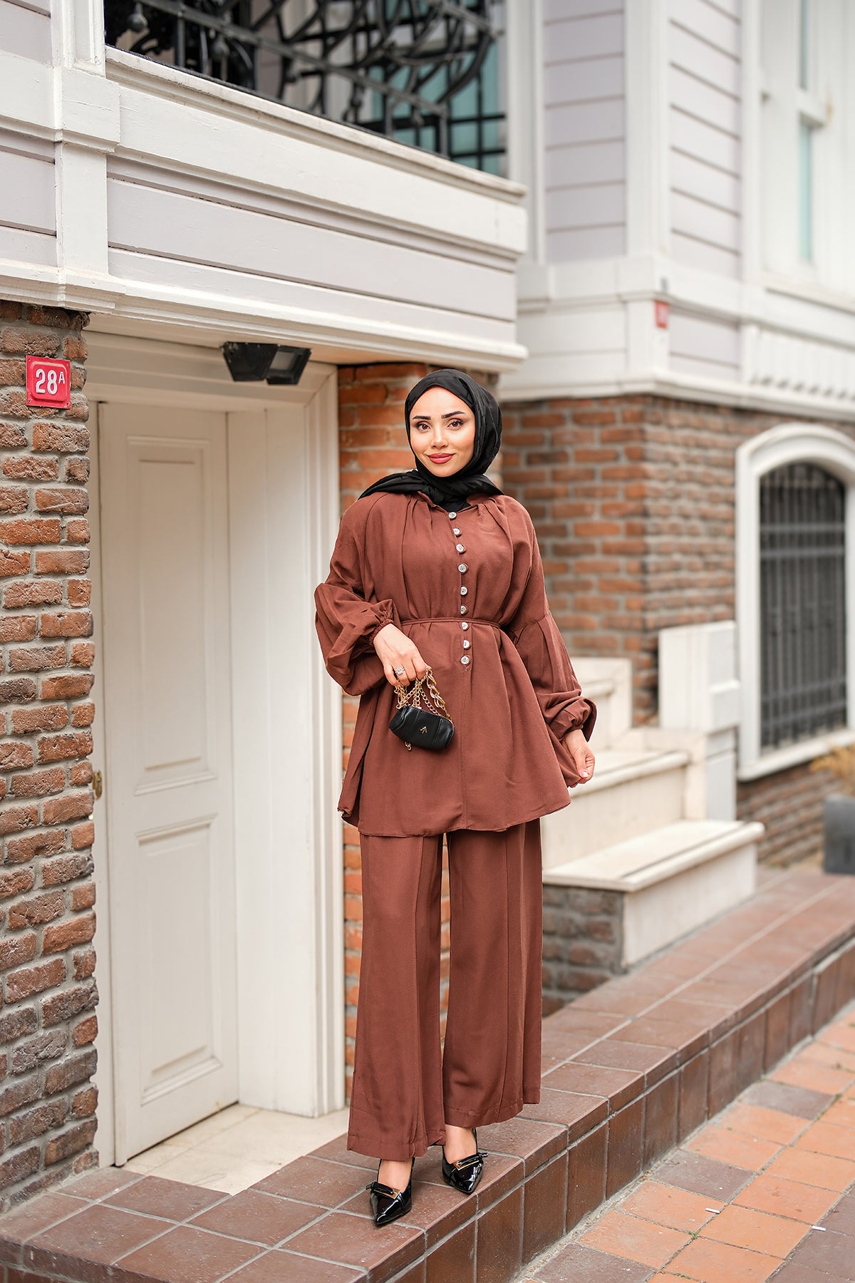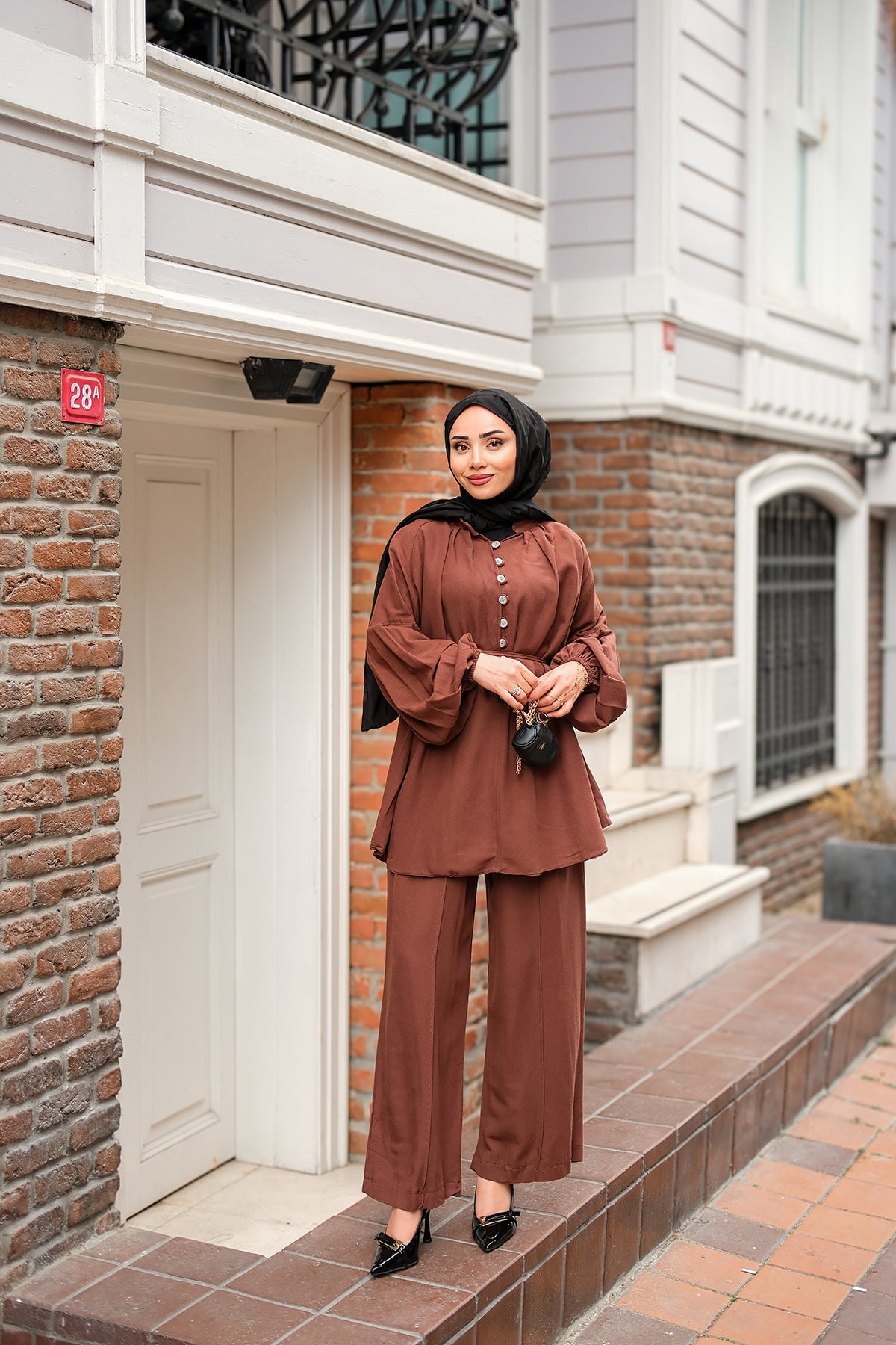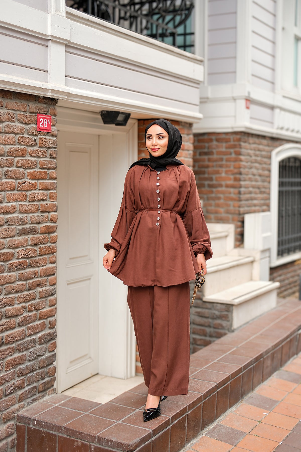 Front Button Detailed Two-Piece Set - Brown