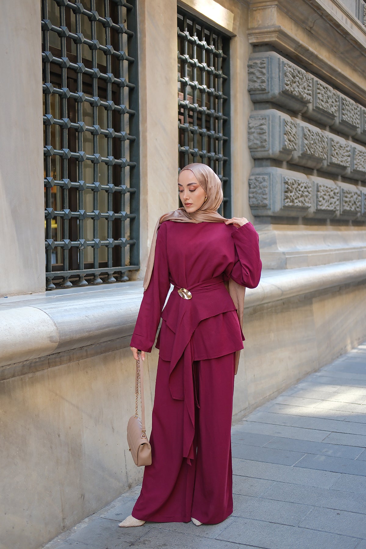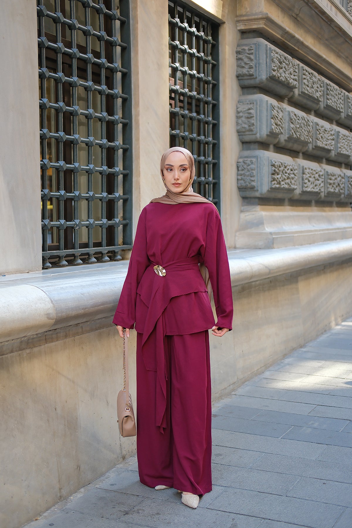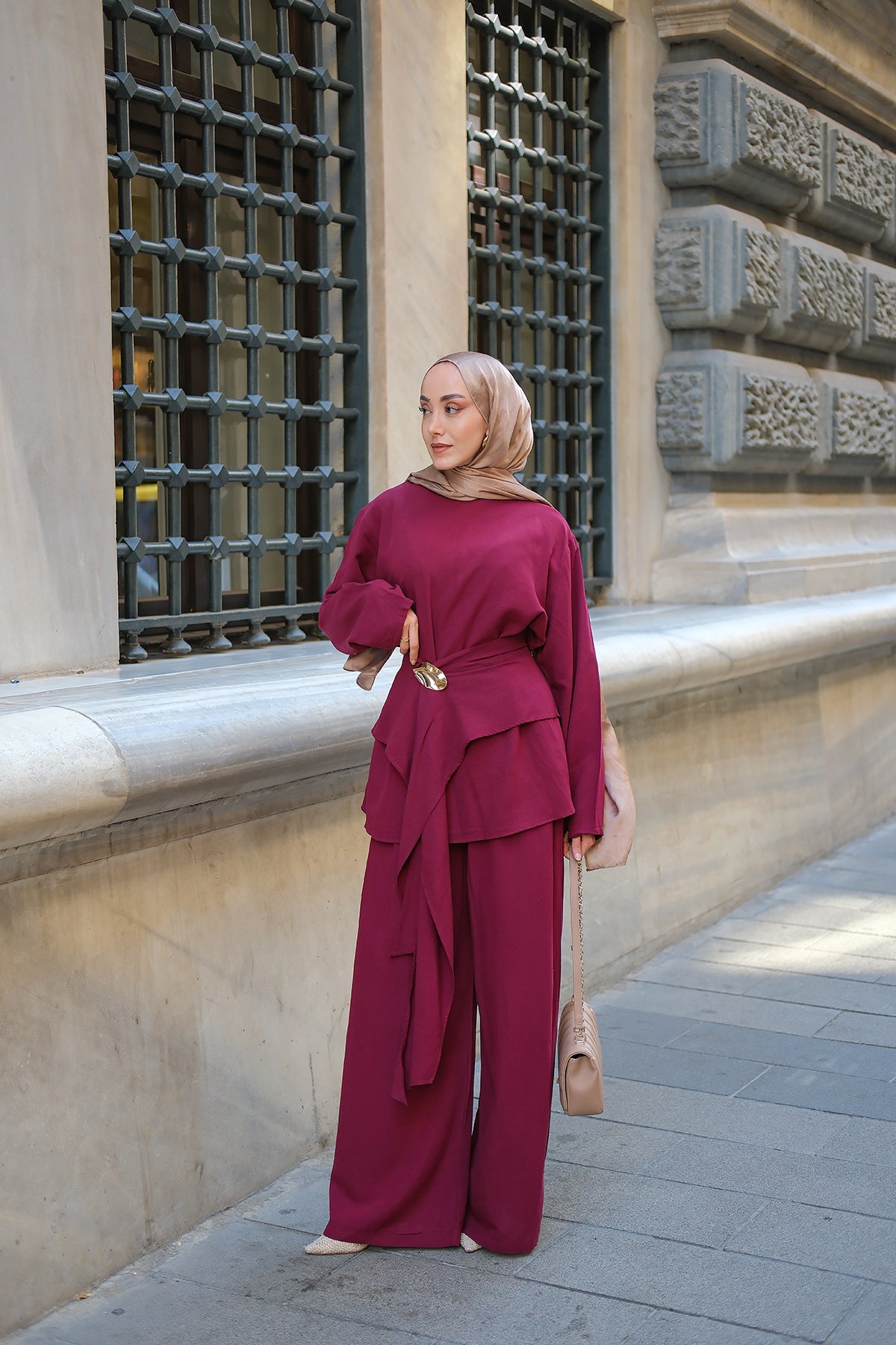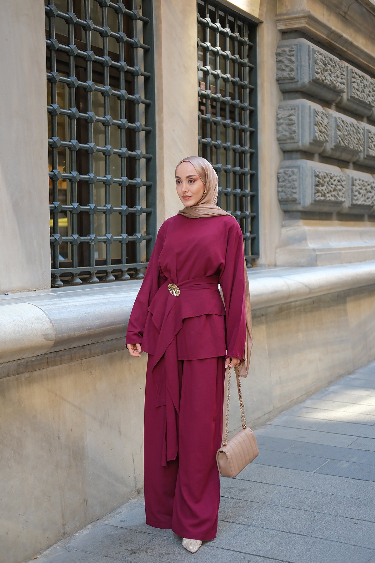 Set with Belt Detail – Burgundy