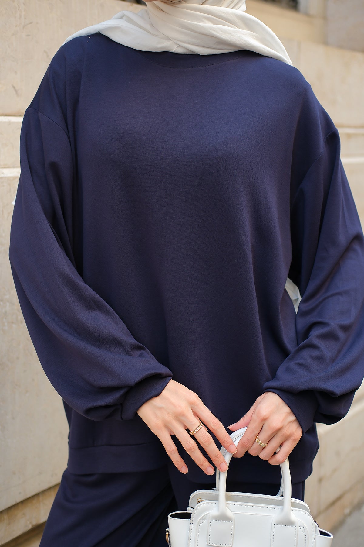 Crew Neck Two-Piece Set - Navy Blue