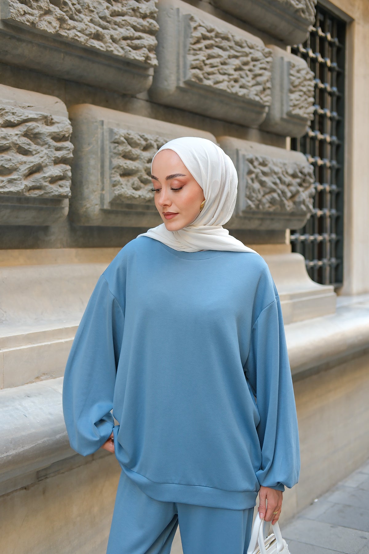 Crew Neck Two-Piece Set - Light Blue