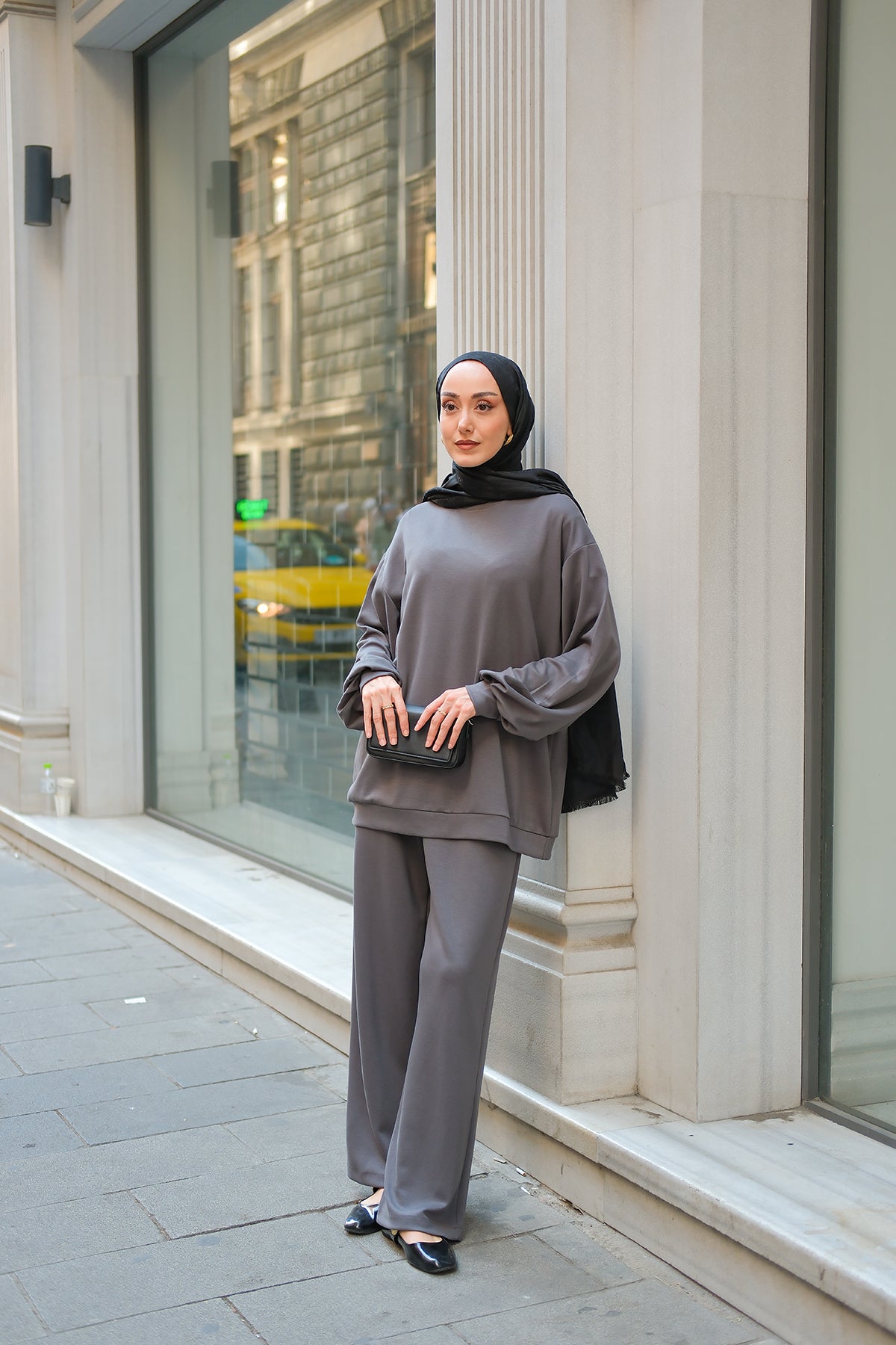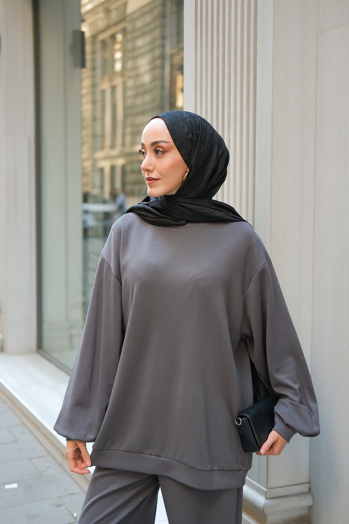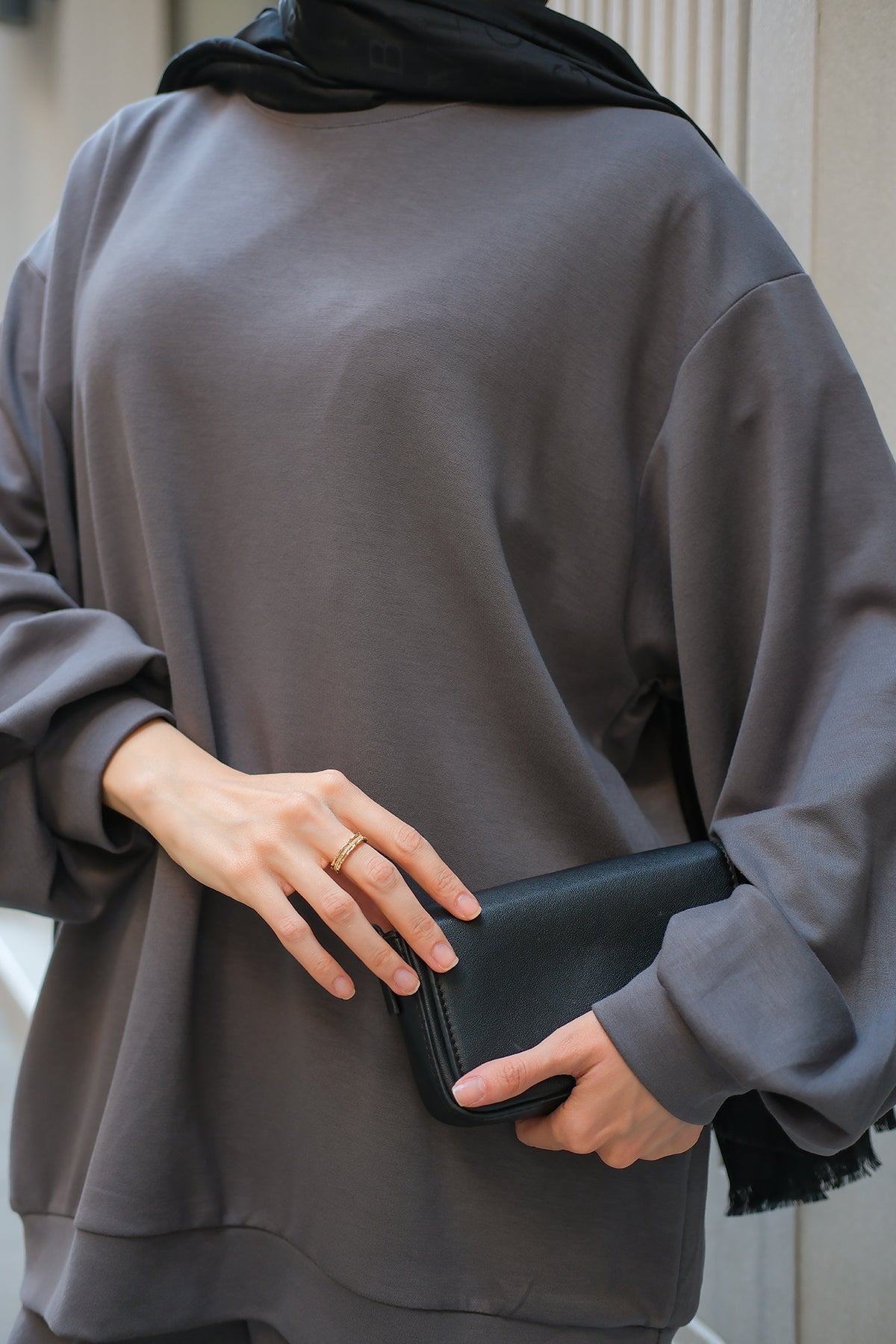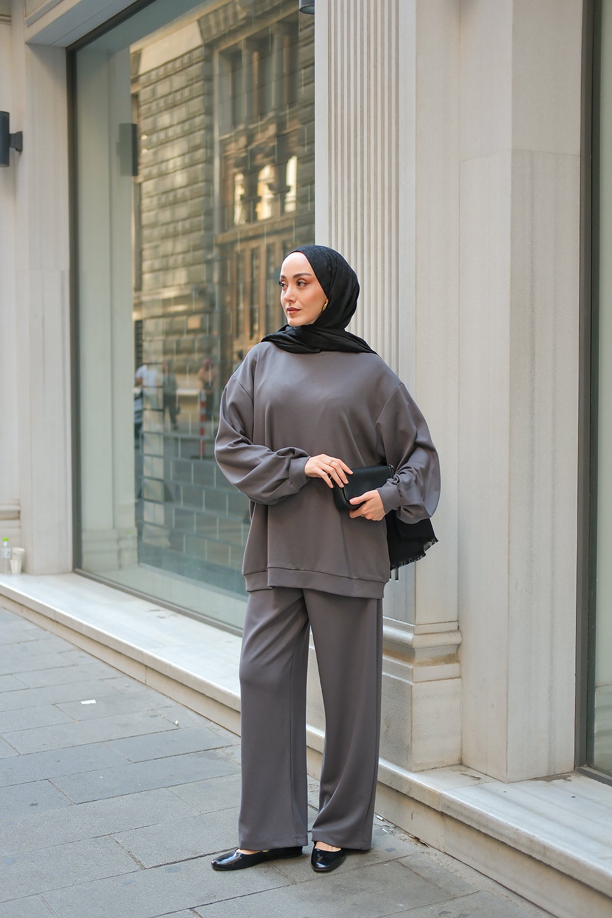 Crew Neck Two-Piece Set - Grey