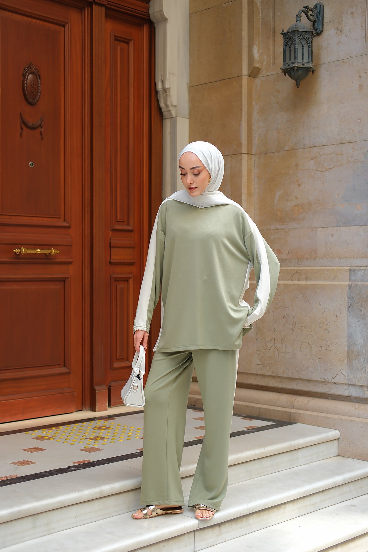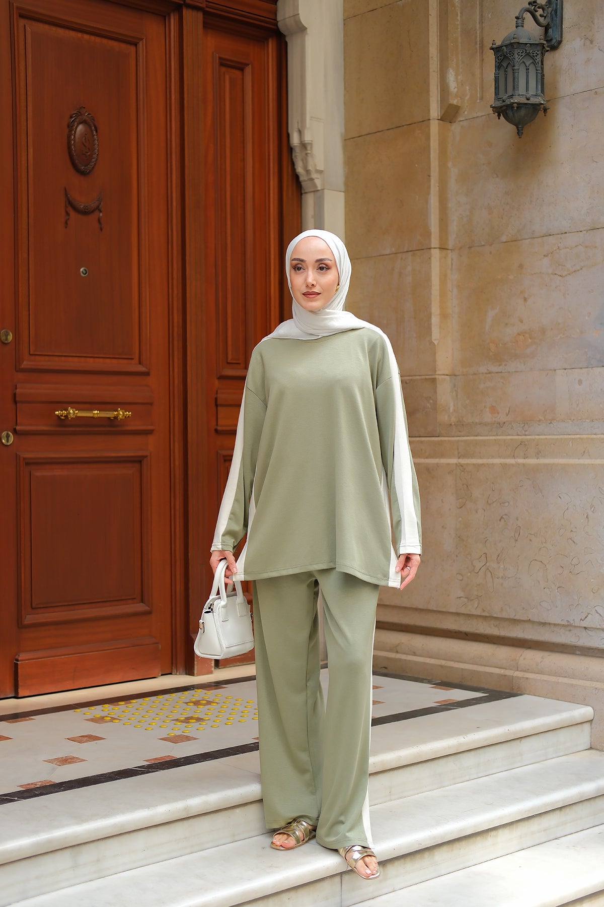 Side Stripe Detail Two-Piece Set - Light Green