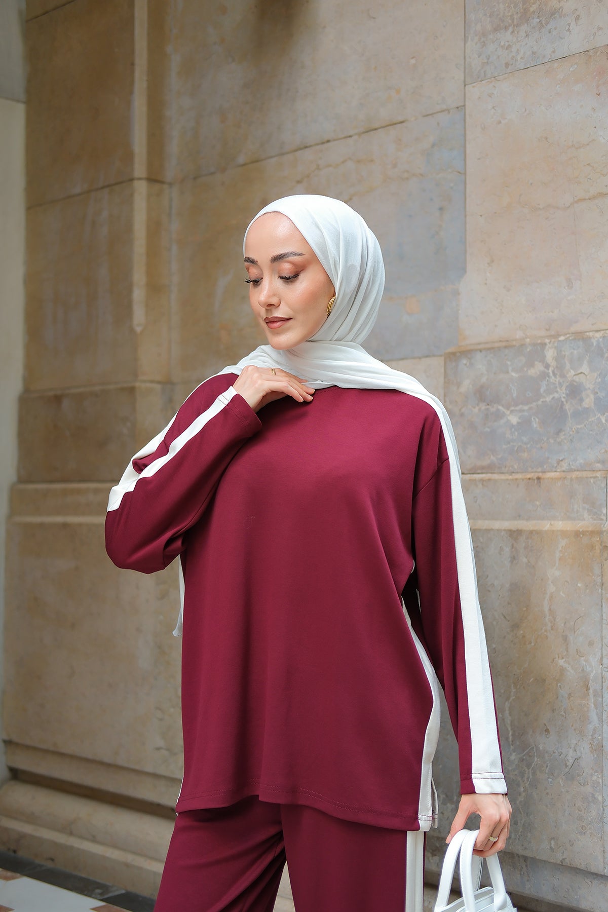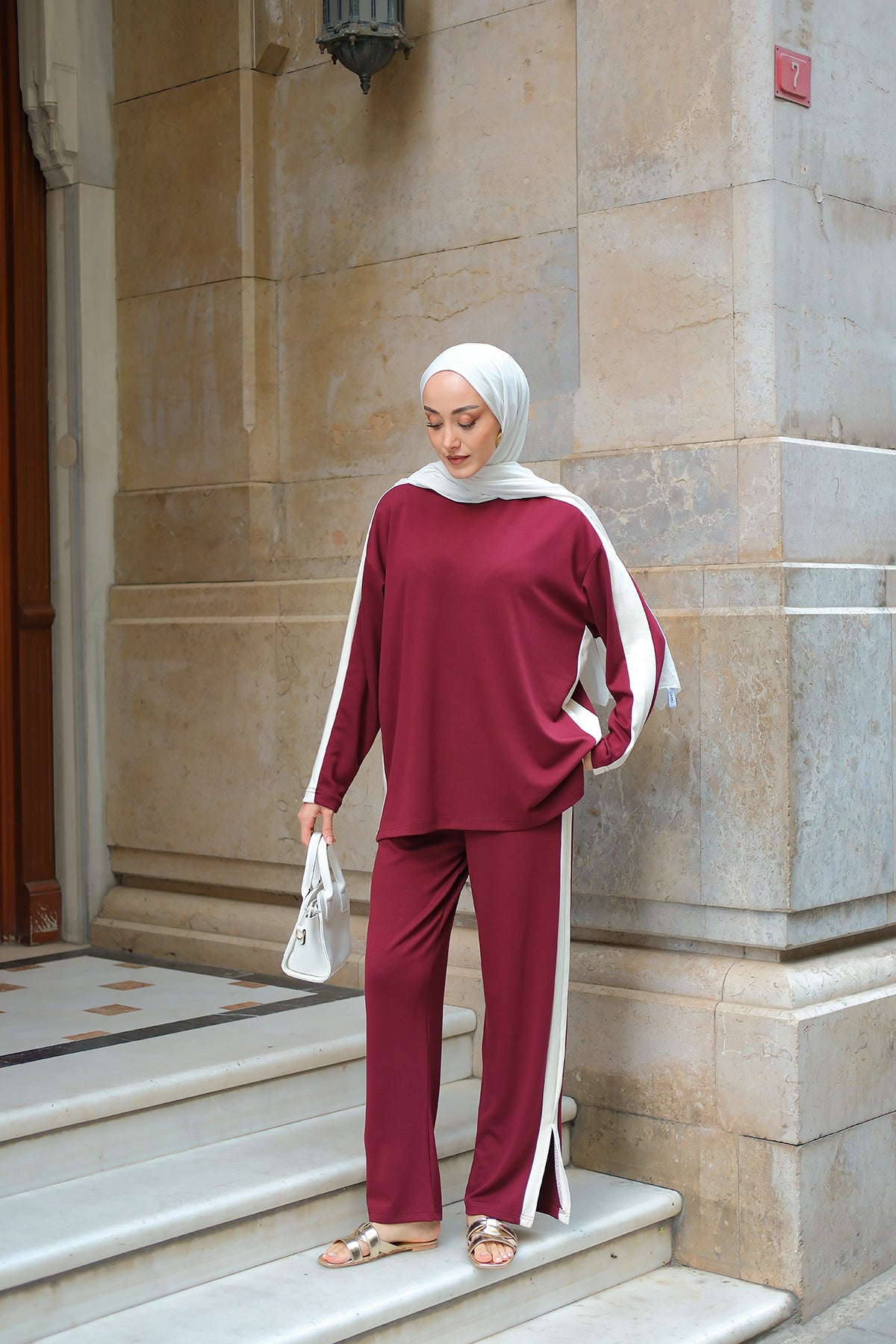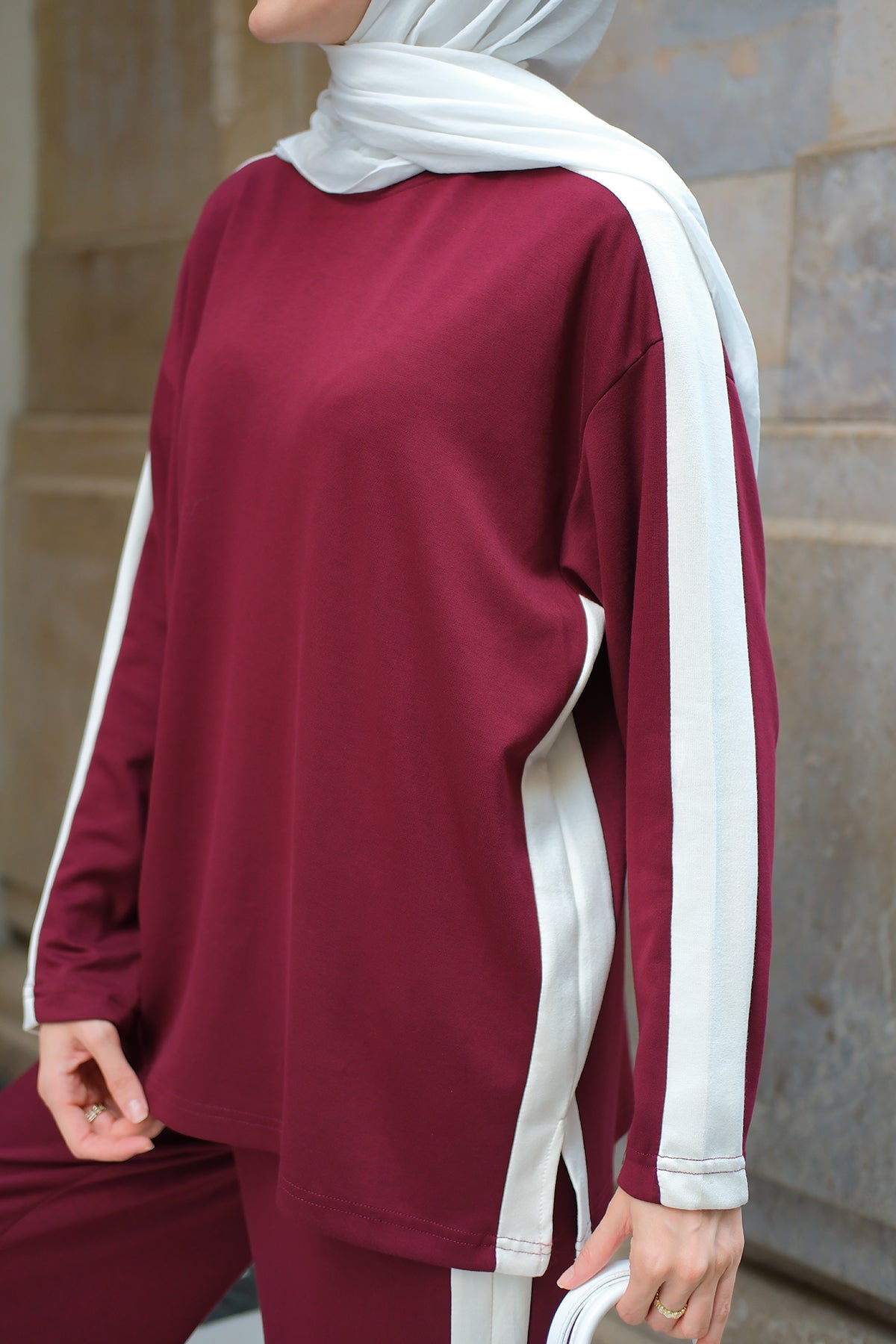 Side Stripe Detail Two-Piece Set - Burgundy