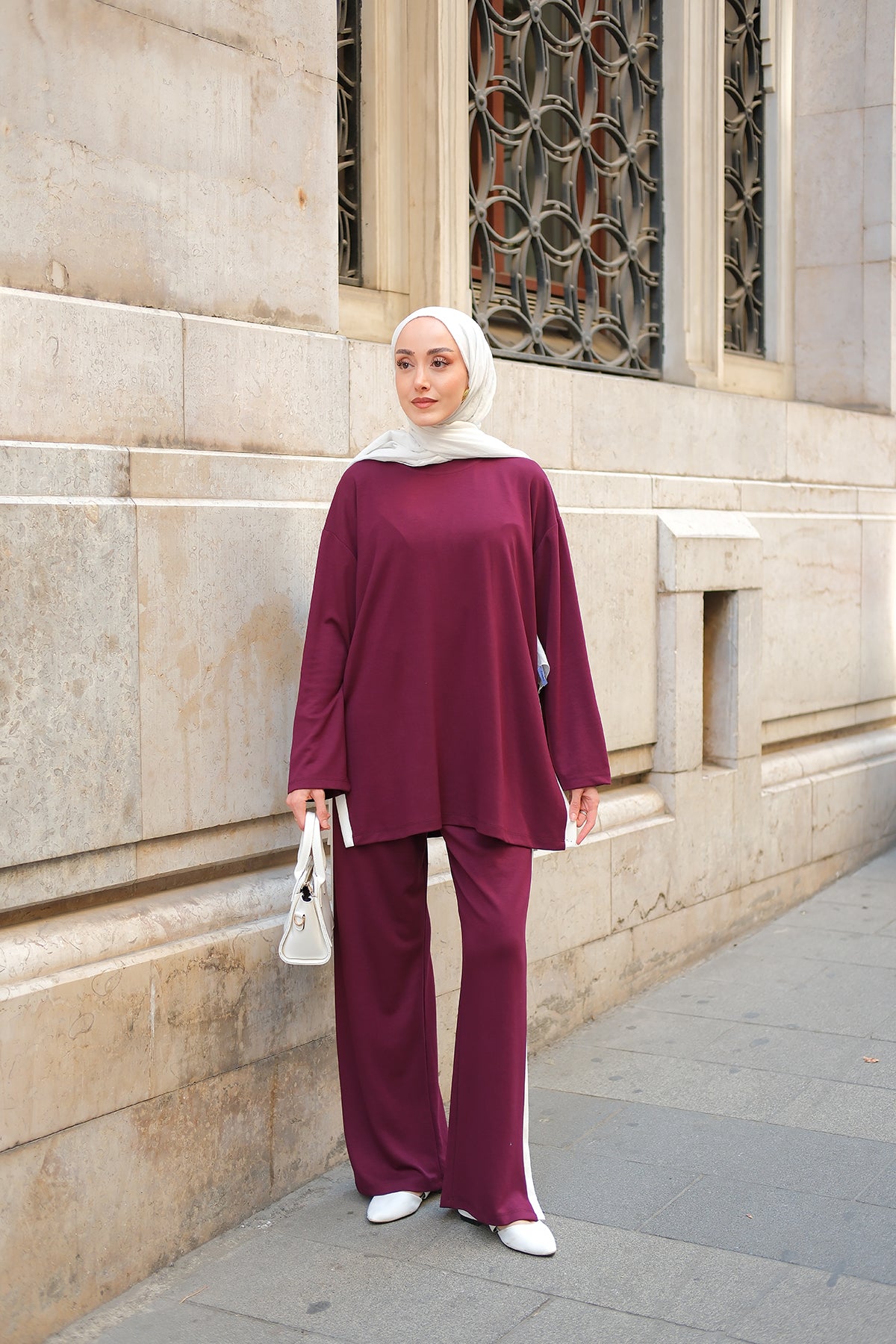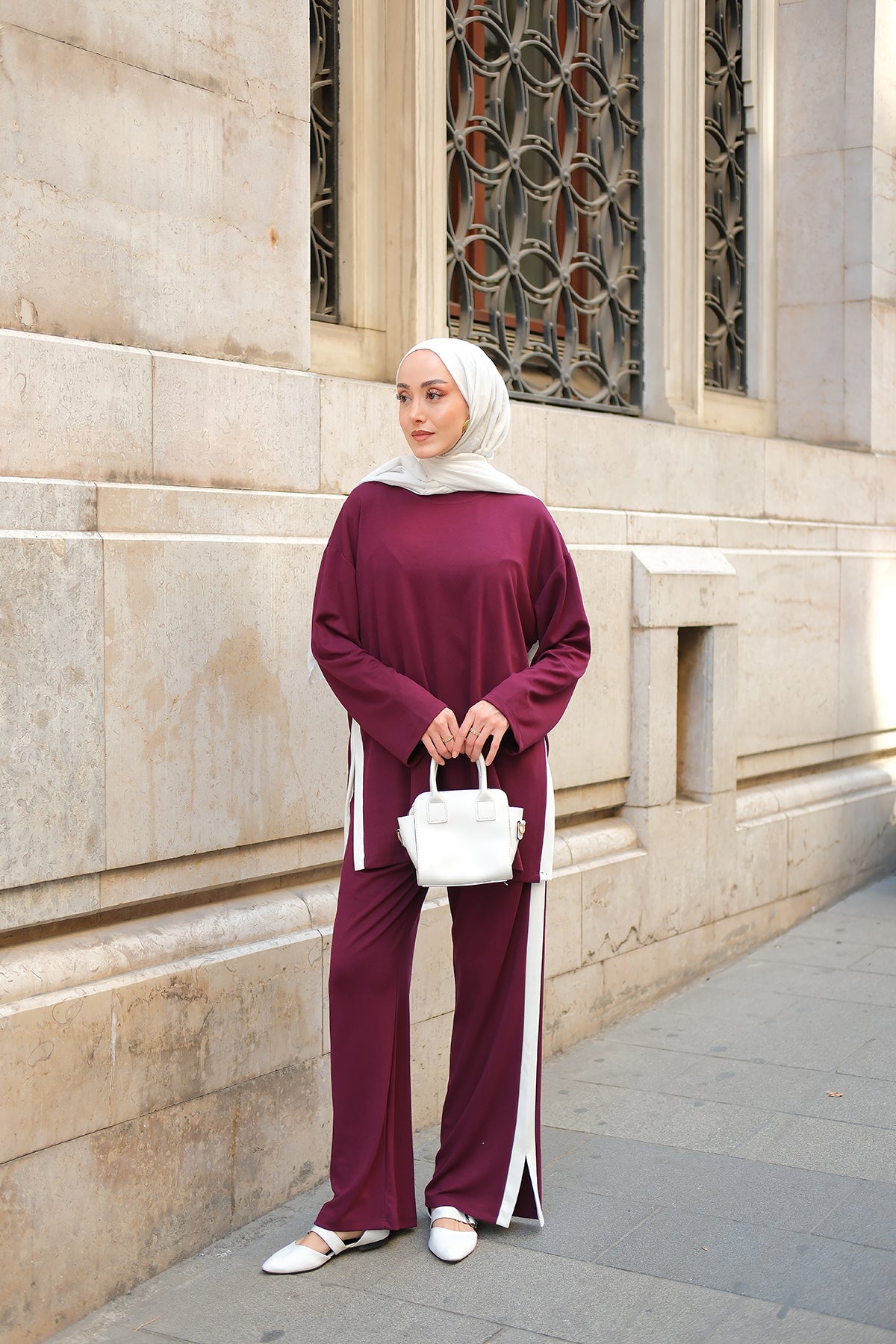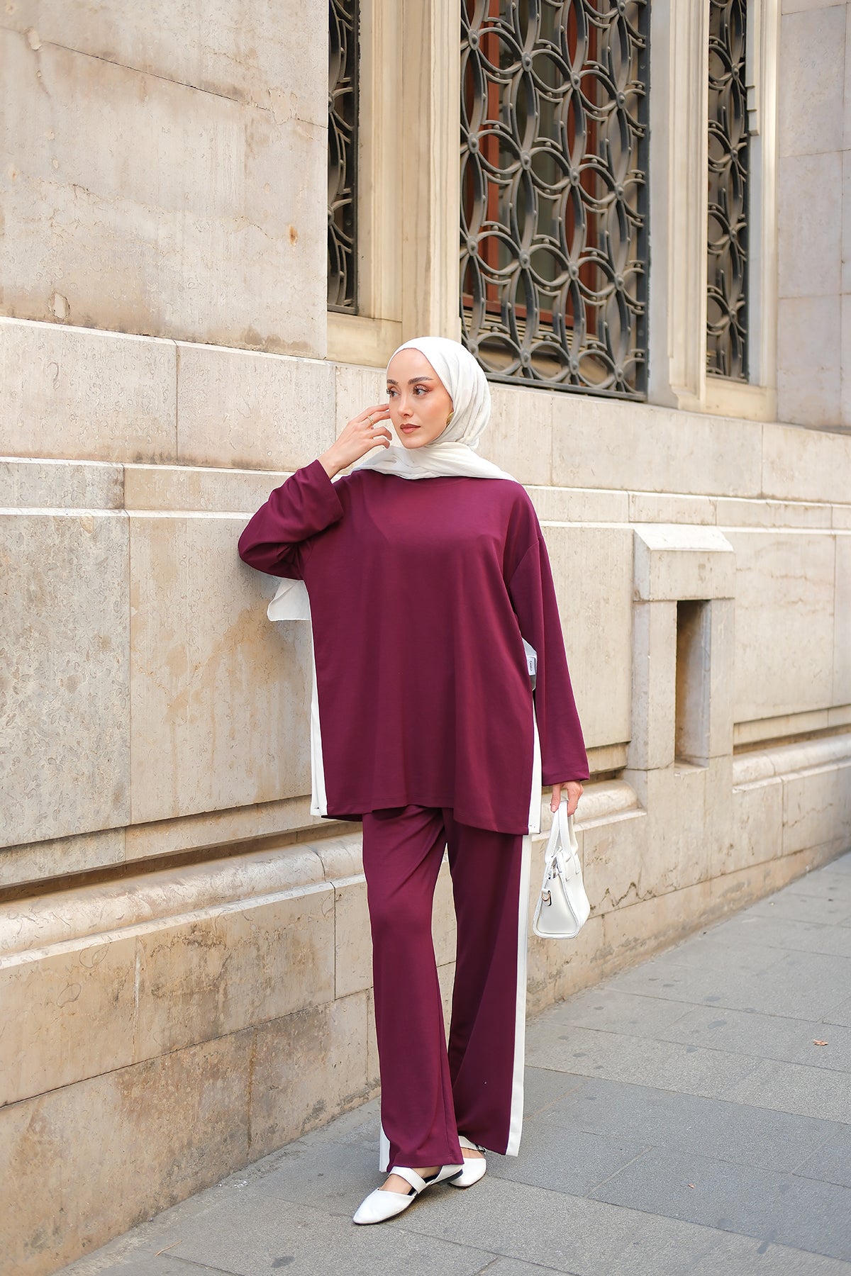 Side Stripe Detail Two-Piece Set - Burgundy