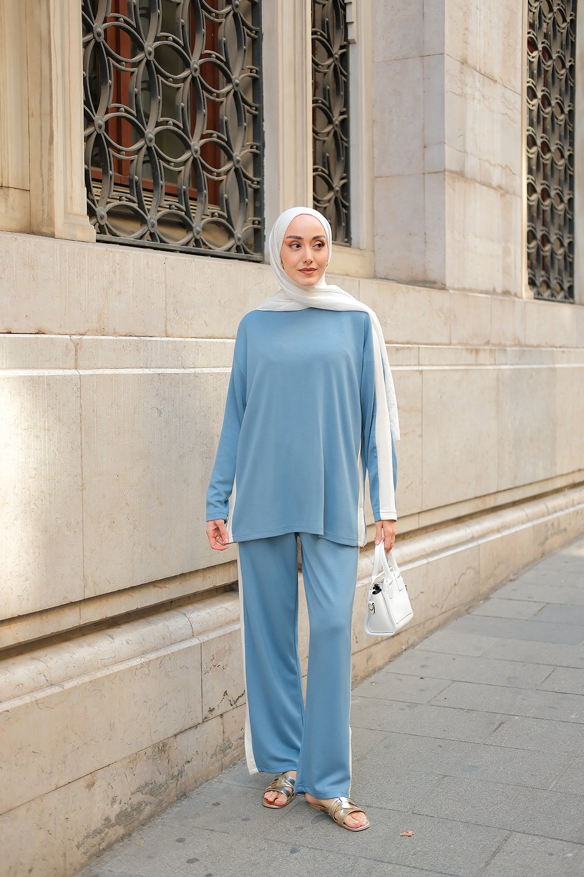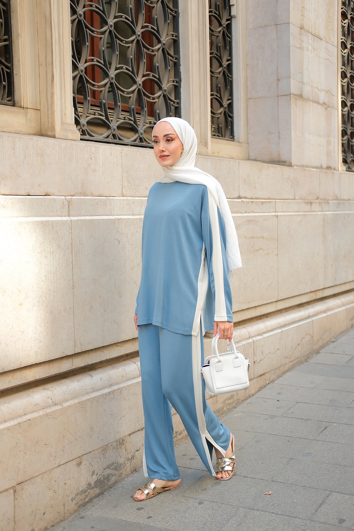 Side Stripe Detail Two-Piece Set - Light Blue