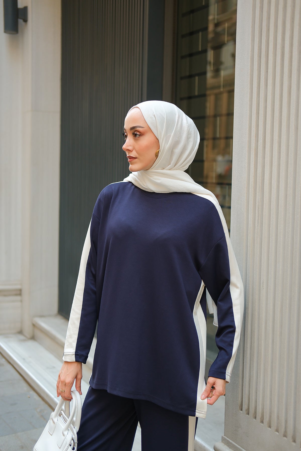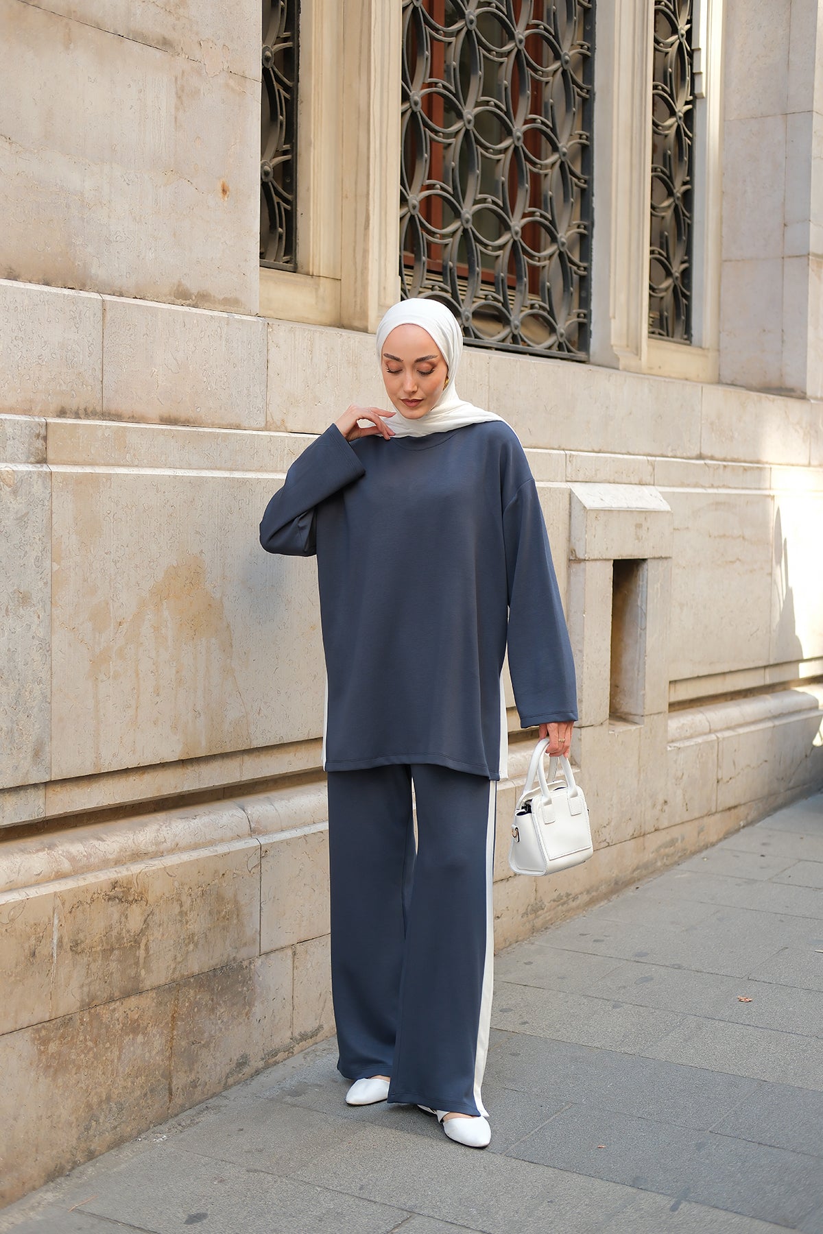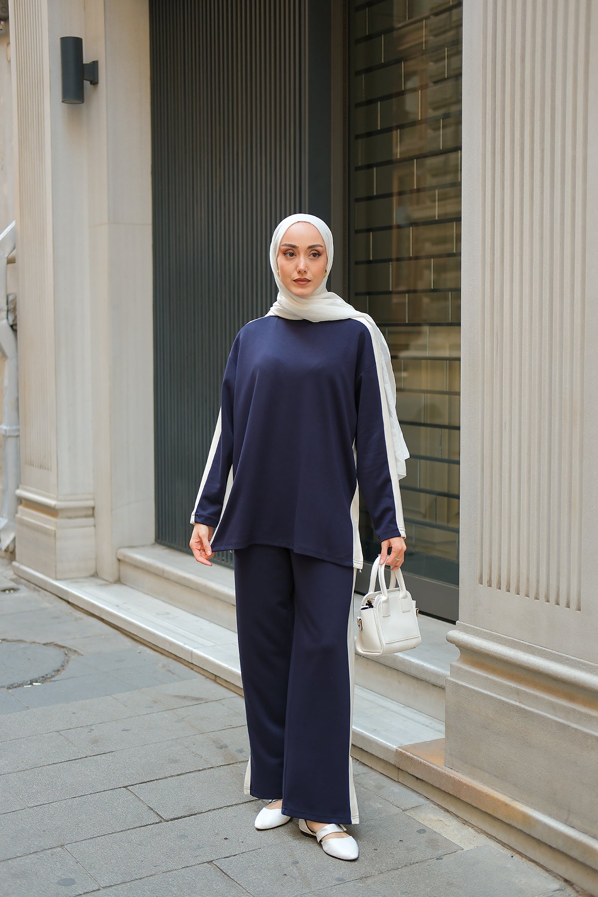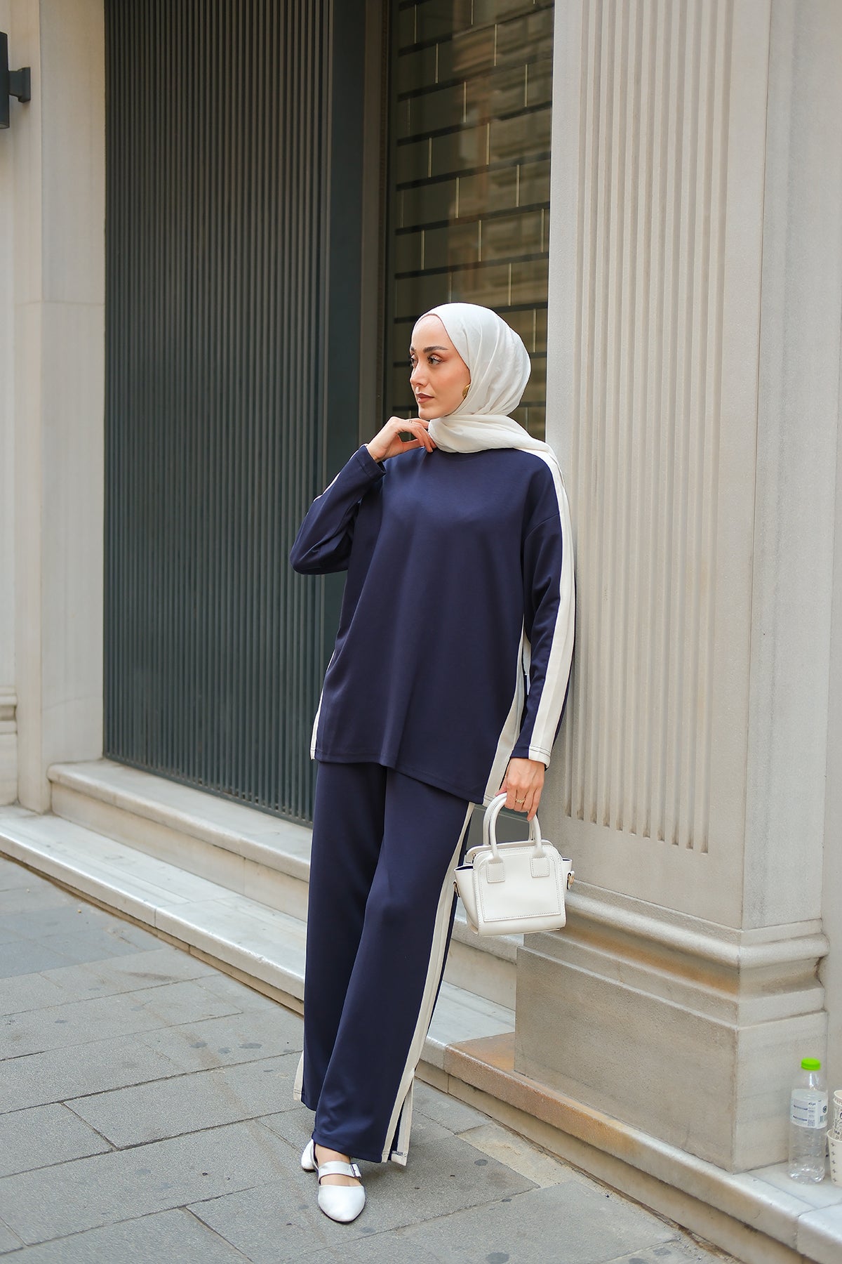 Slit Accent Detailed Set - Navy Blue