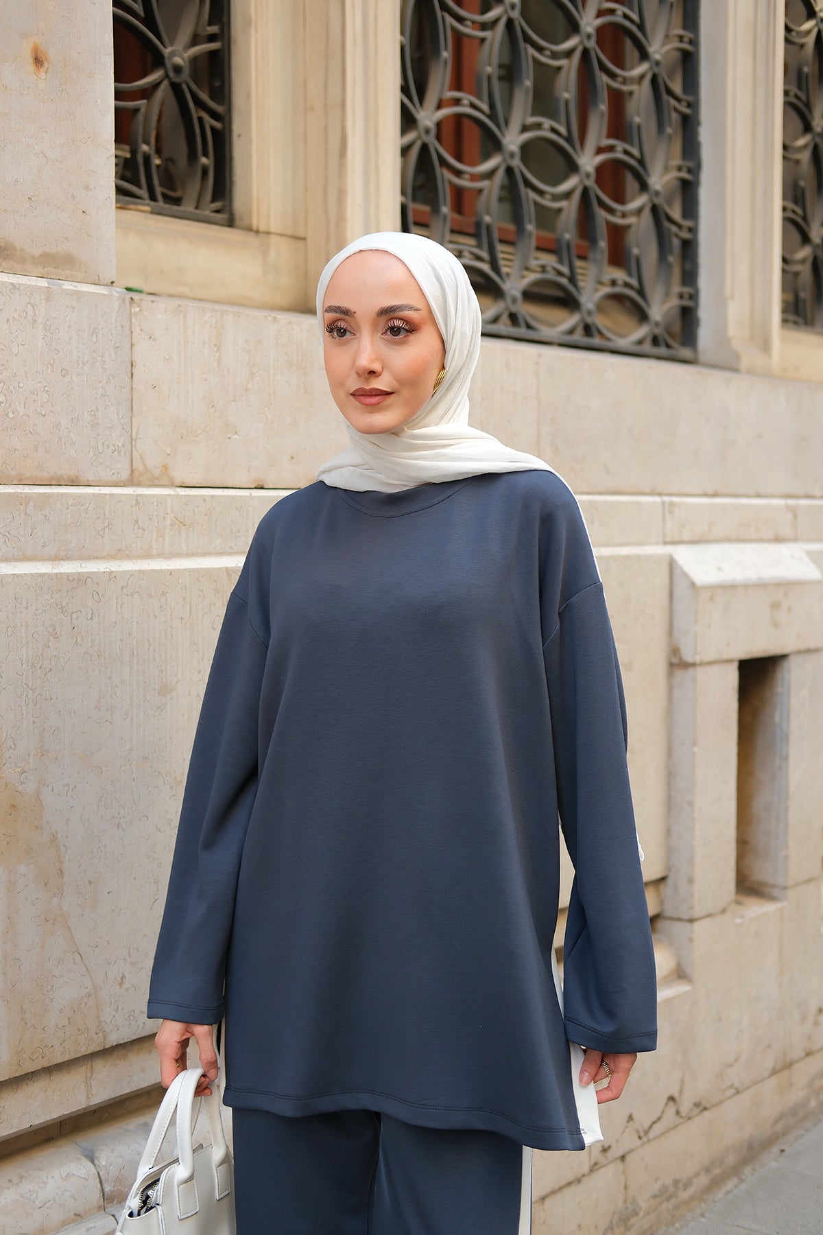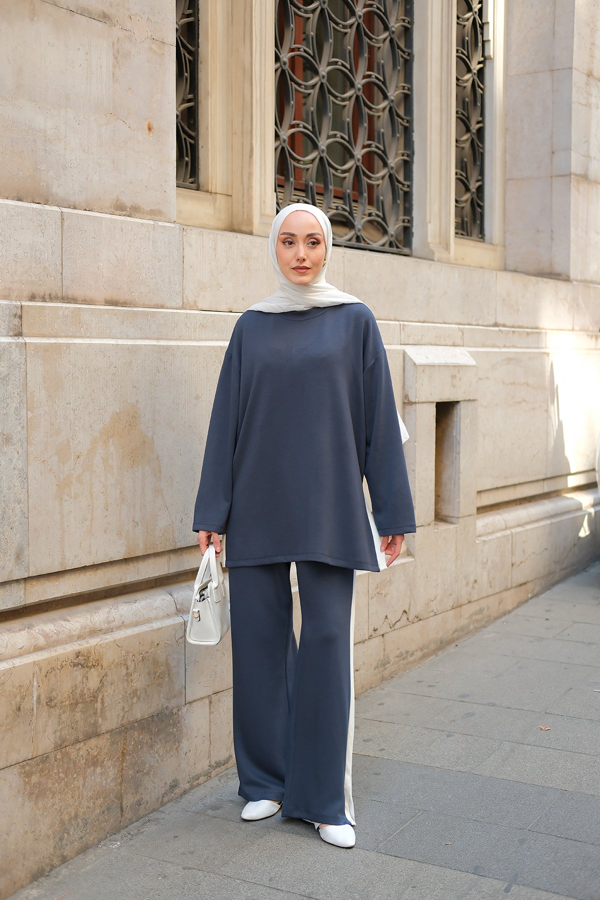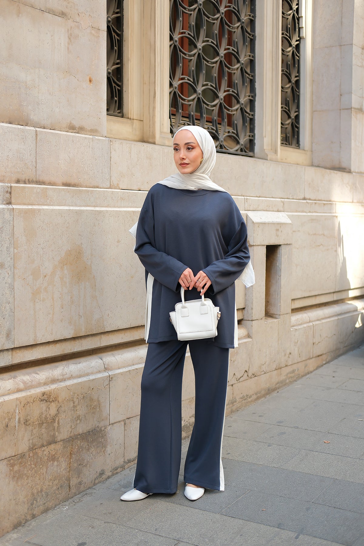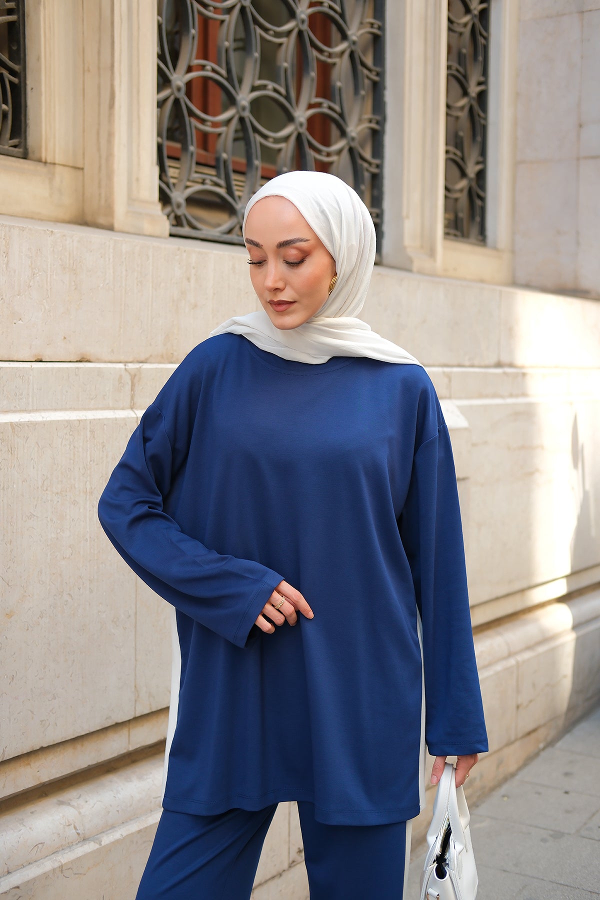 Slit Accent Detailed Set - Navy Blue