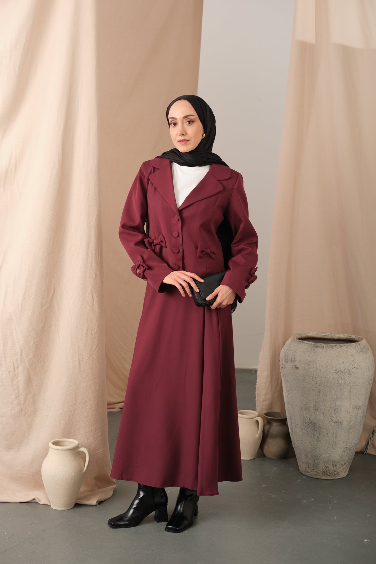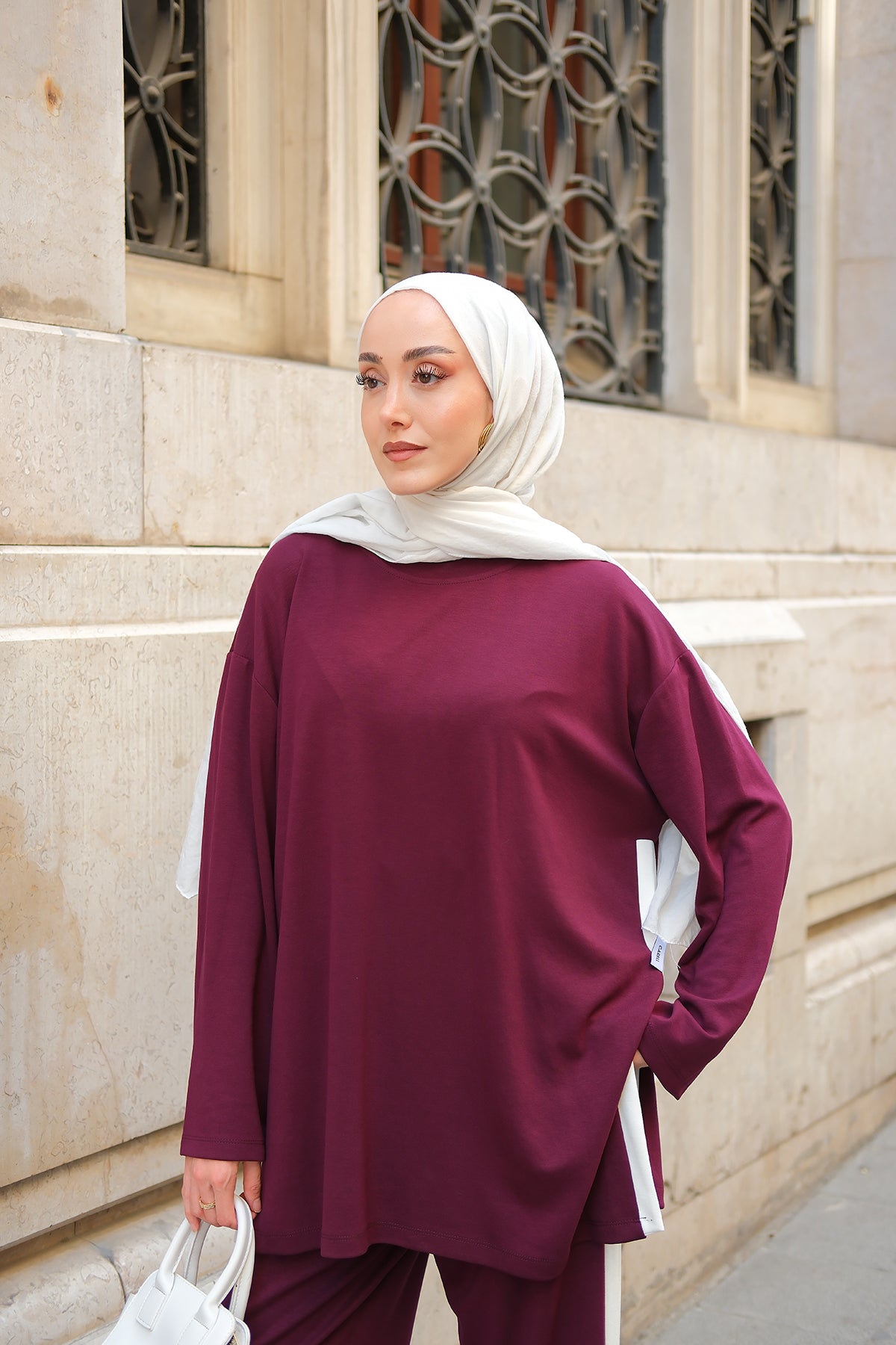 Slit Accent Detailed Set - Burgundy