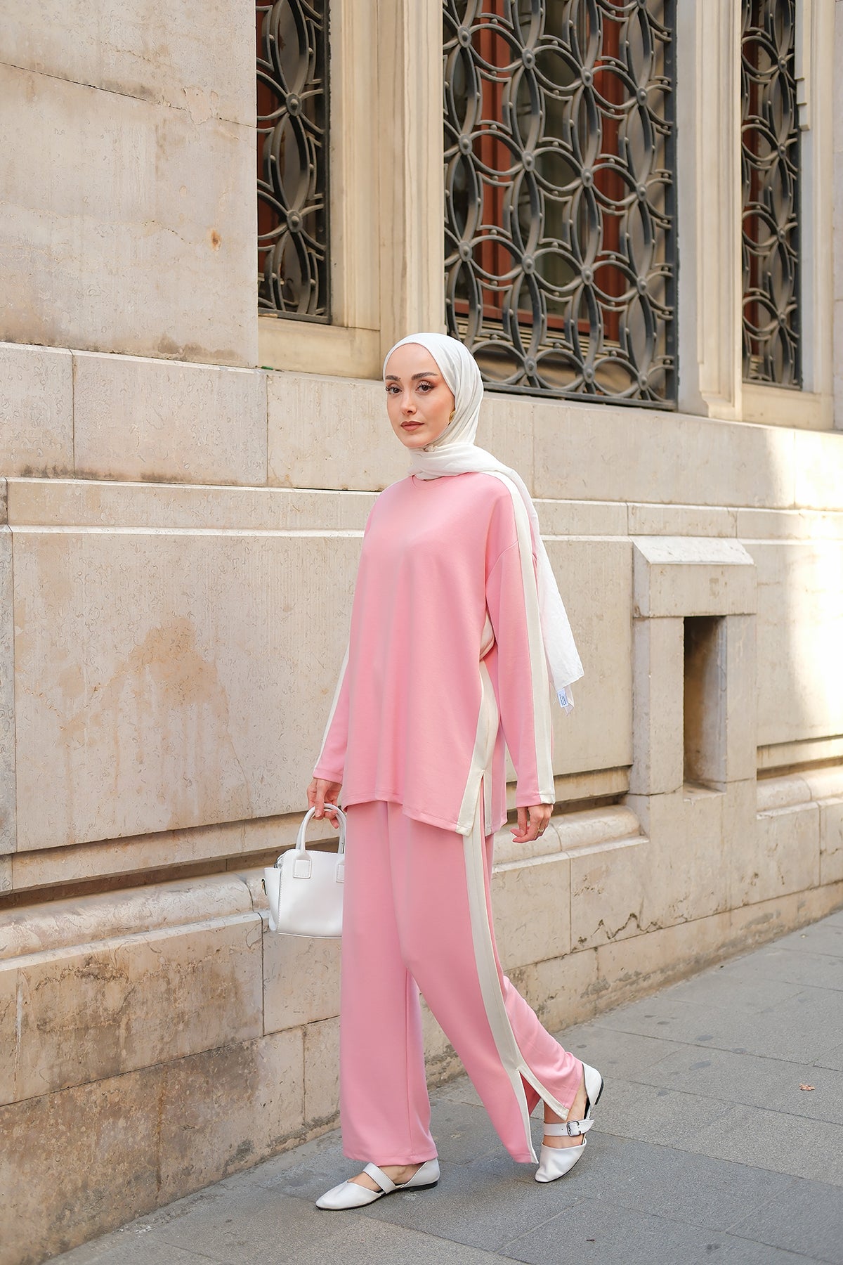 Side Stripe Detail Two-Piece Set - Pink