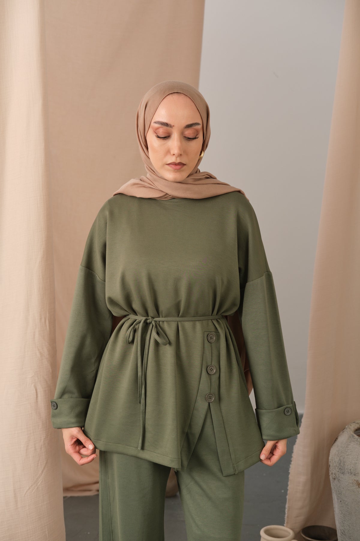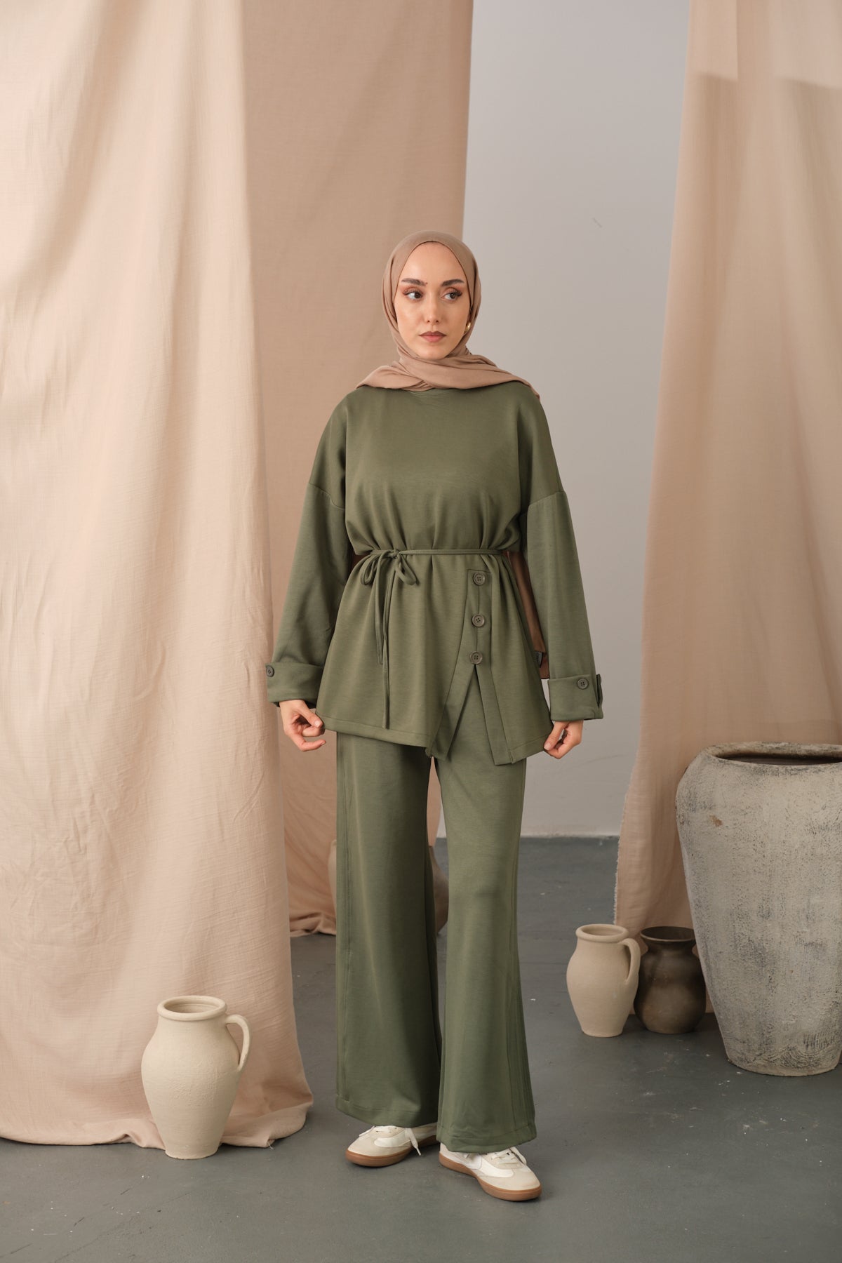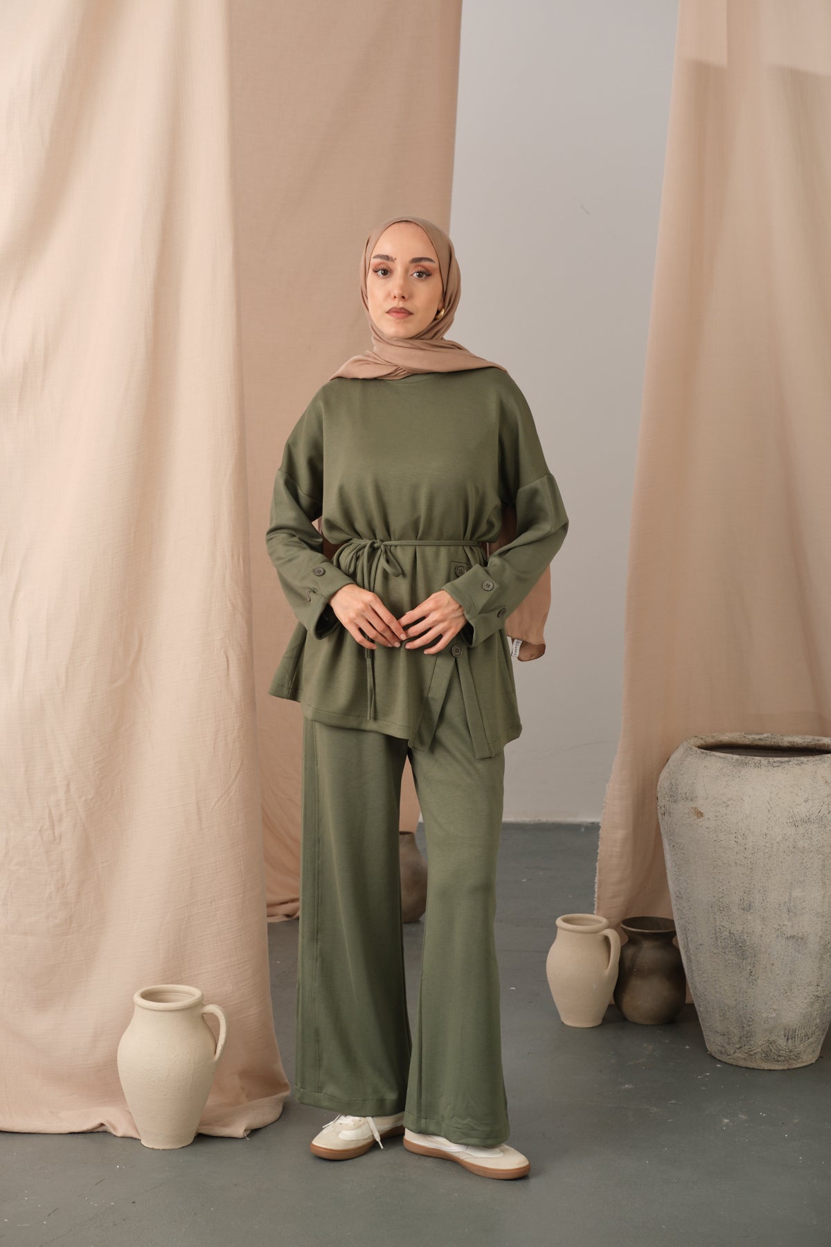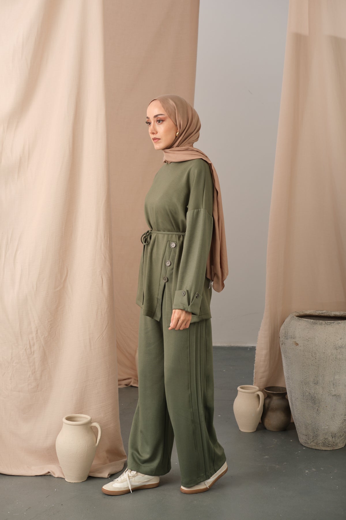Waist-Tie Kimono Set – Brown