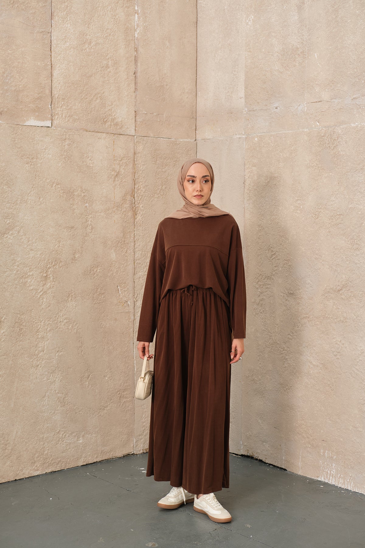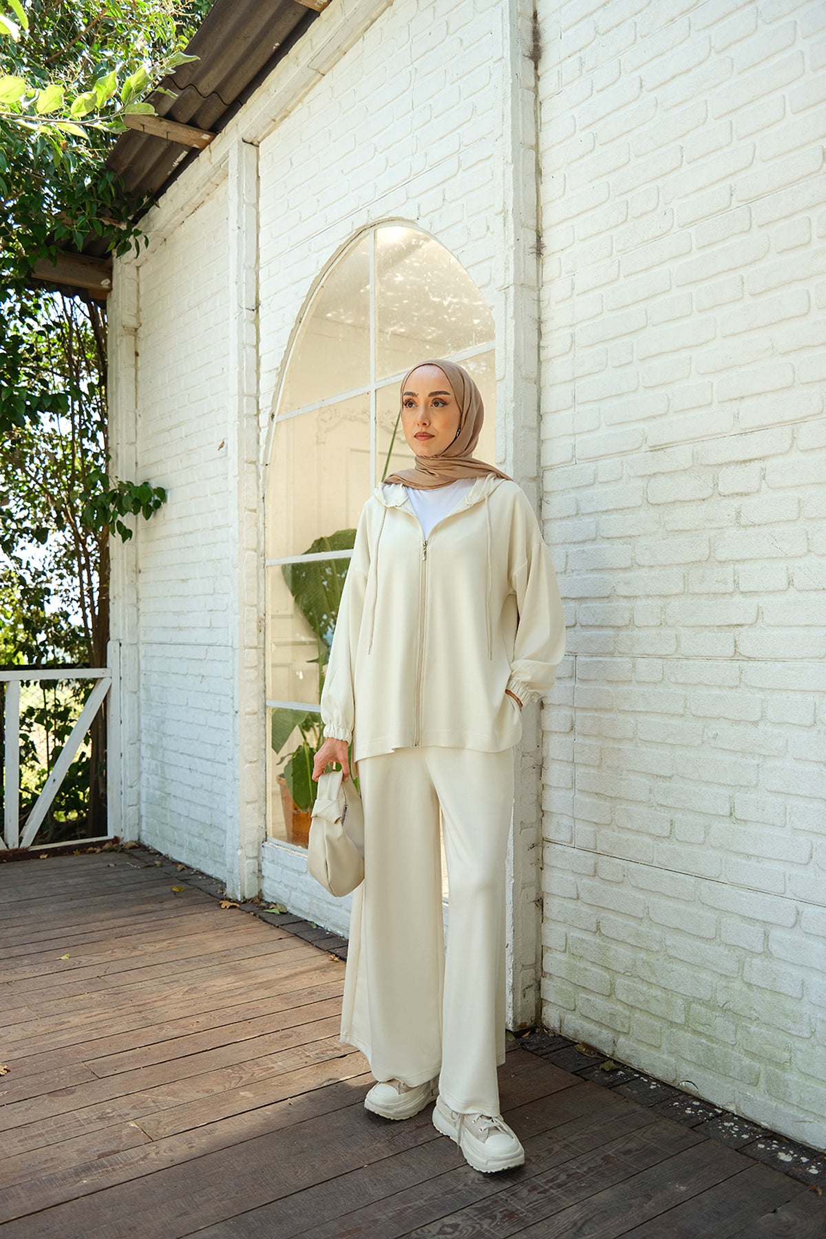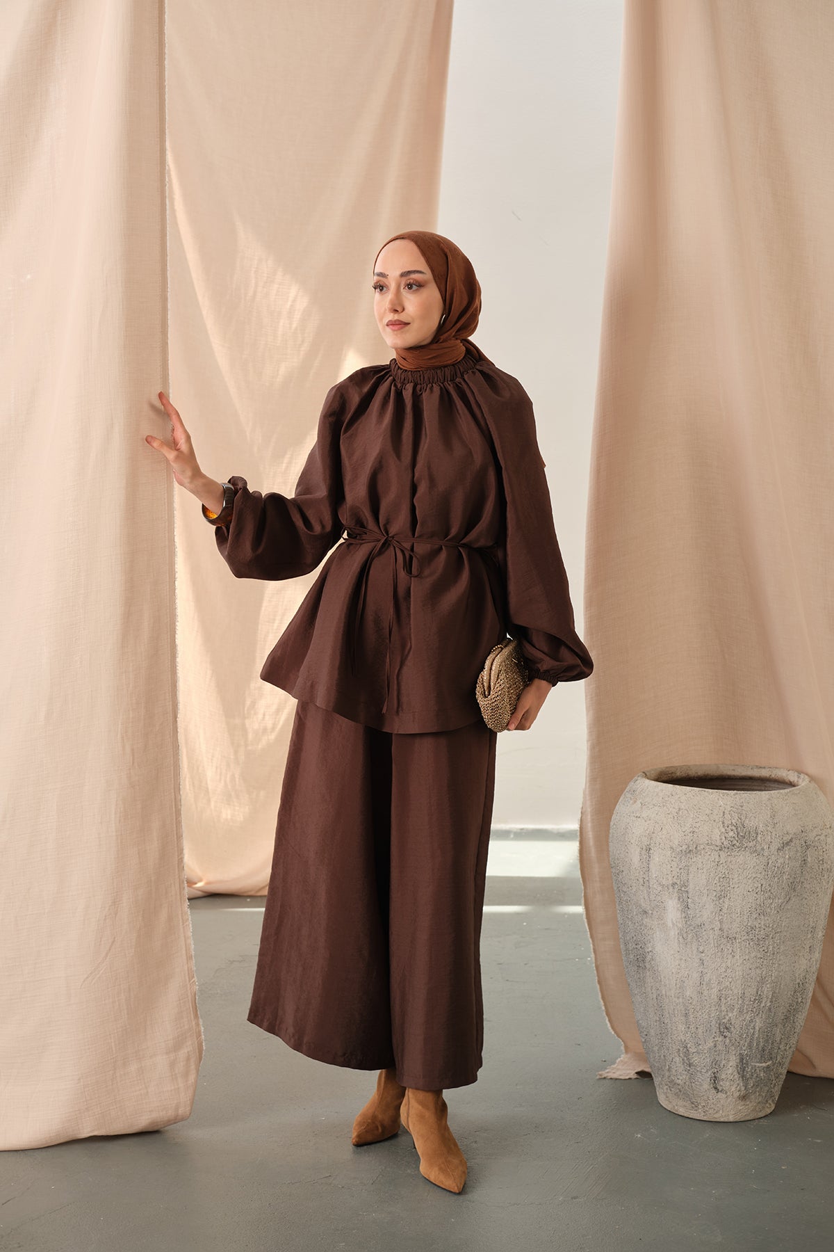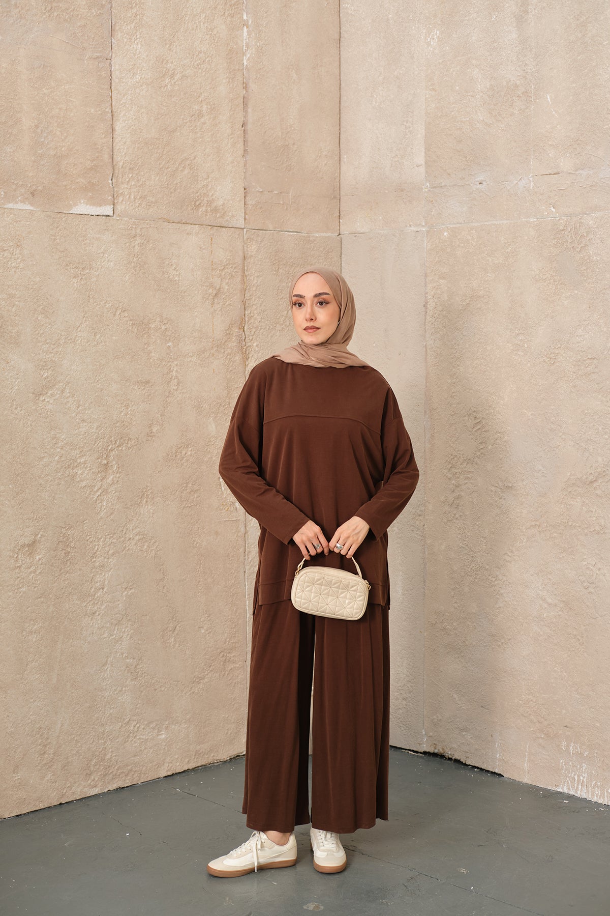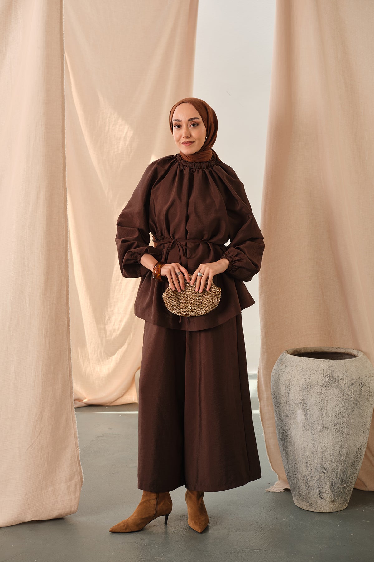Ethnic Pattern Hooded Two-Piece Set – Brown