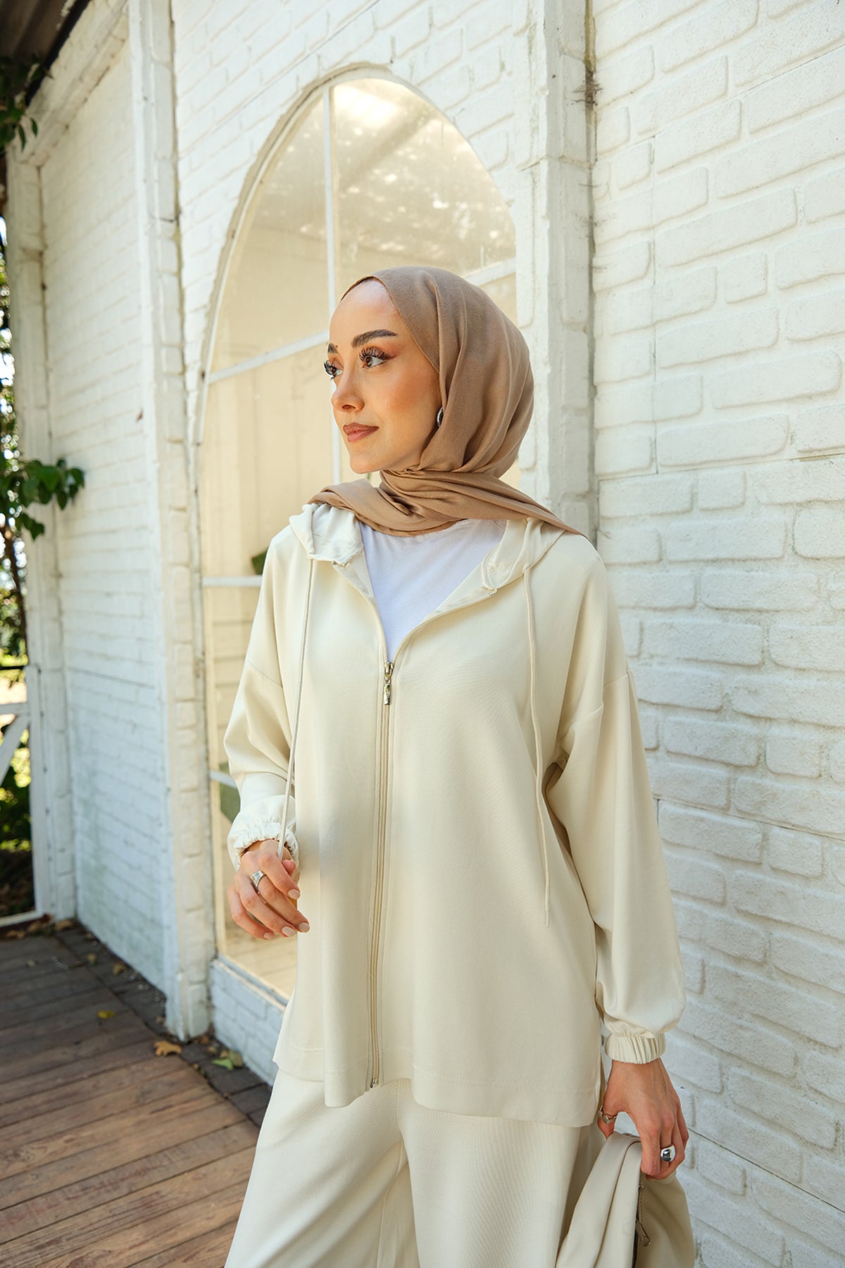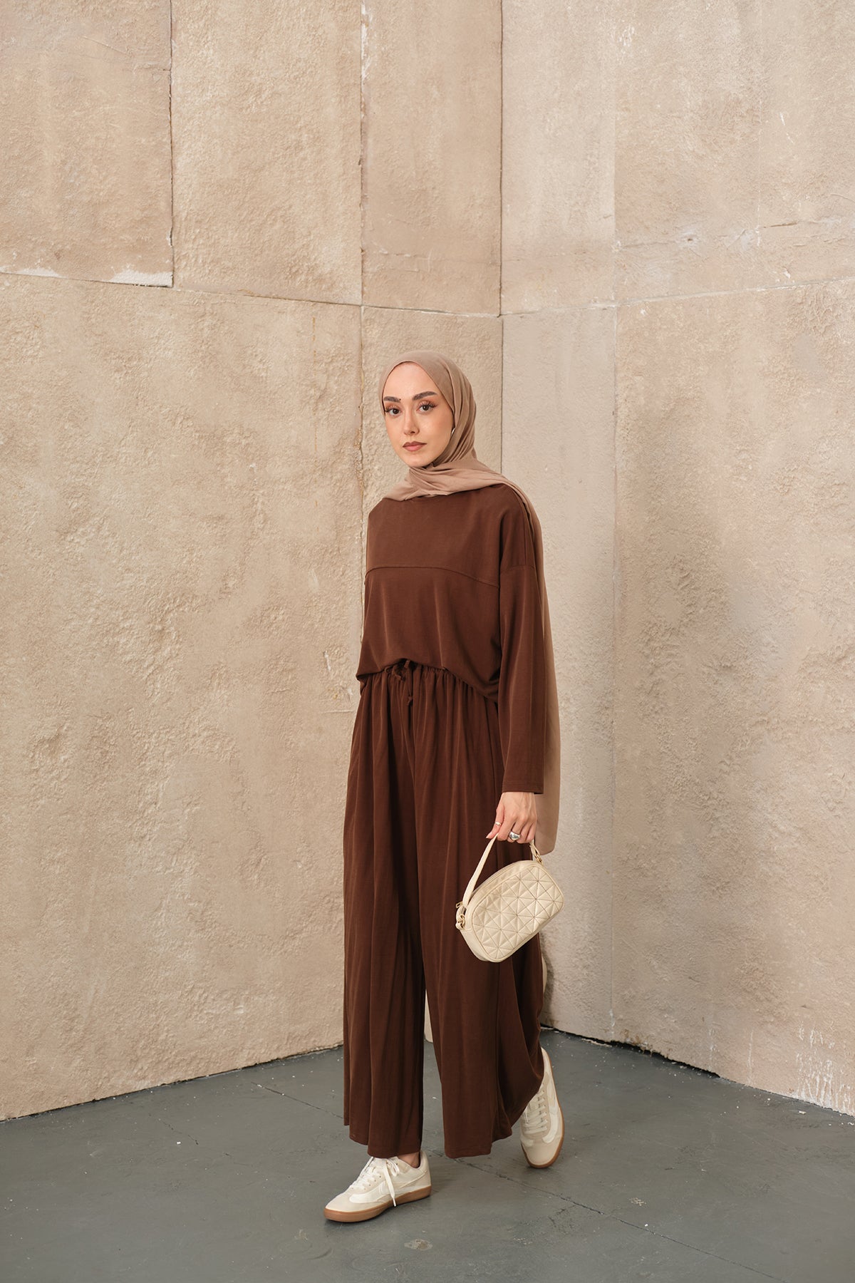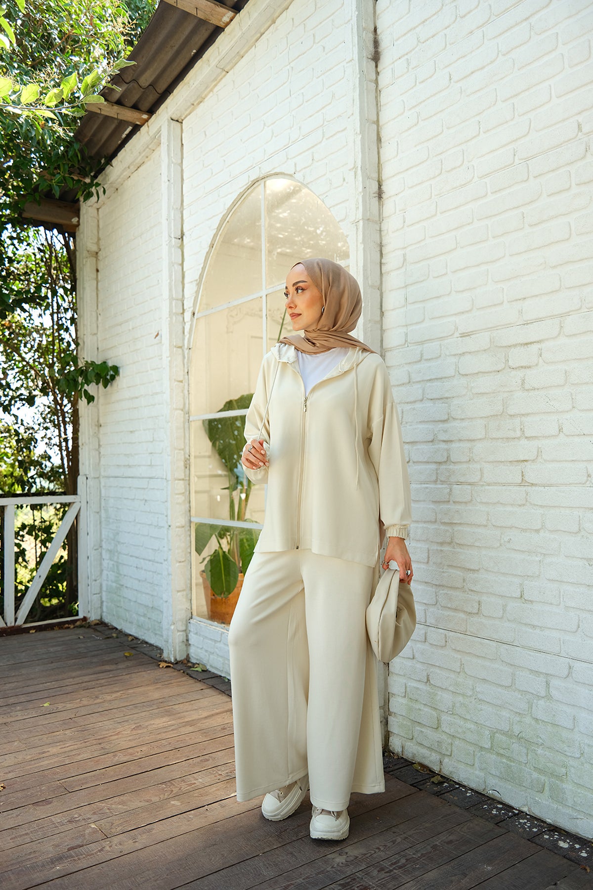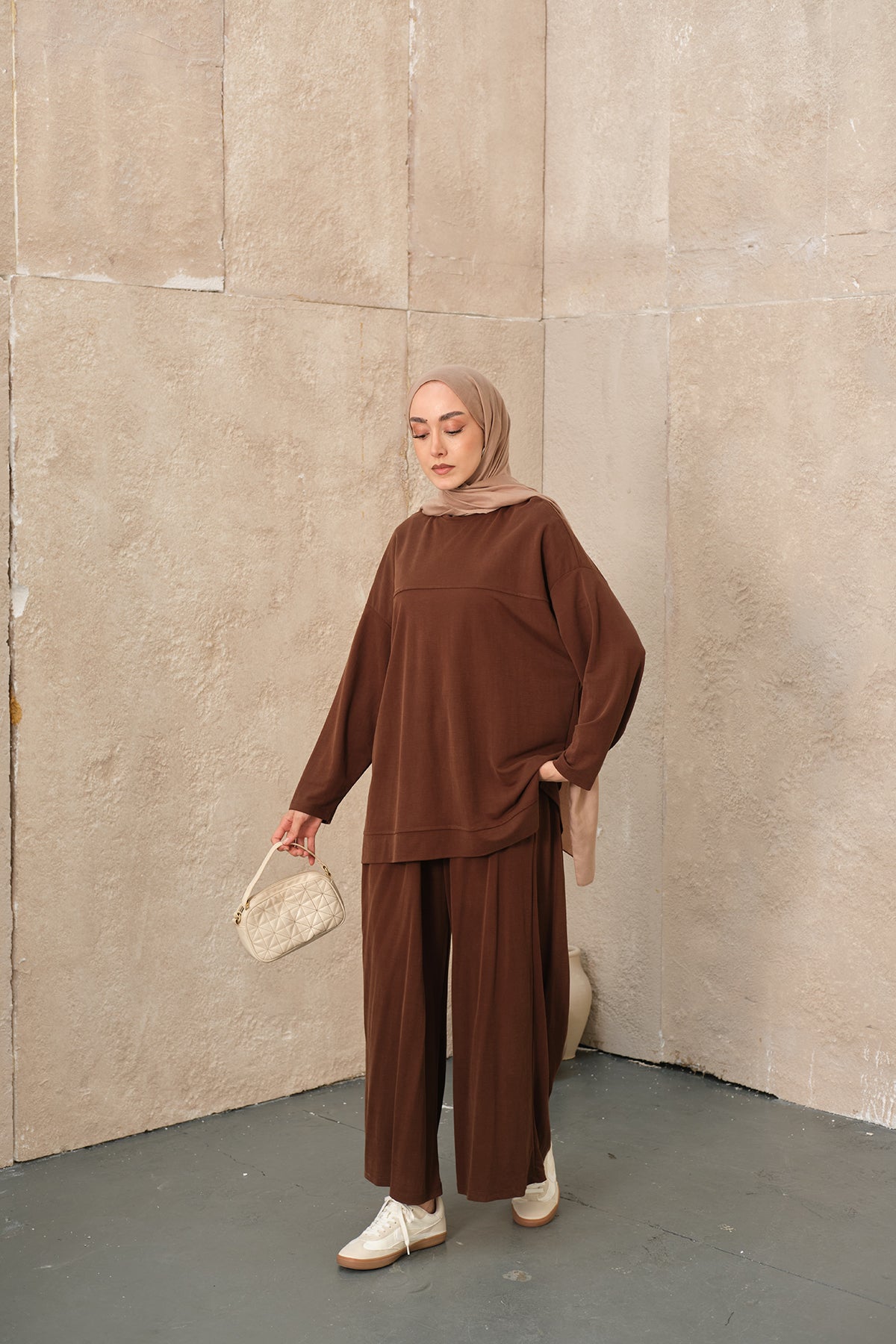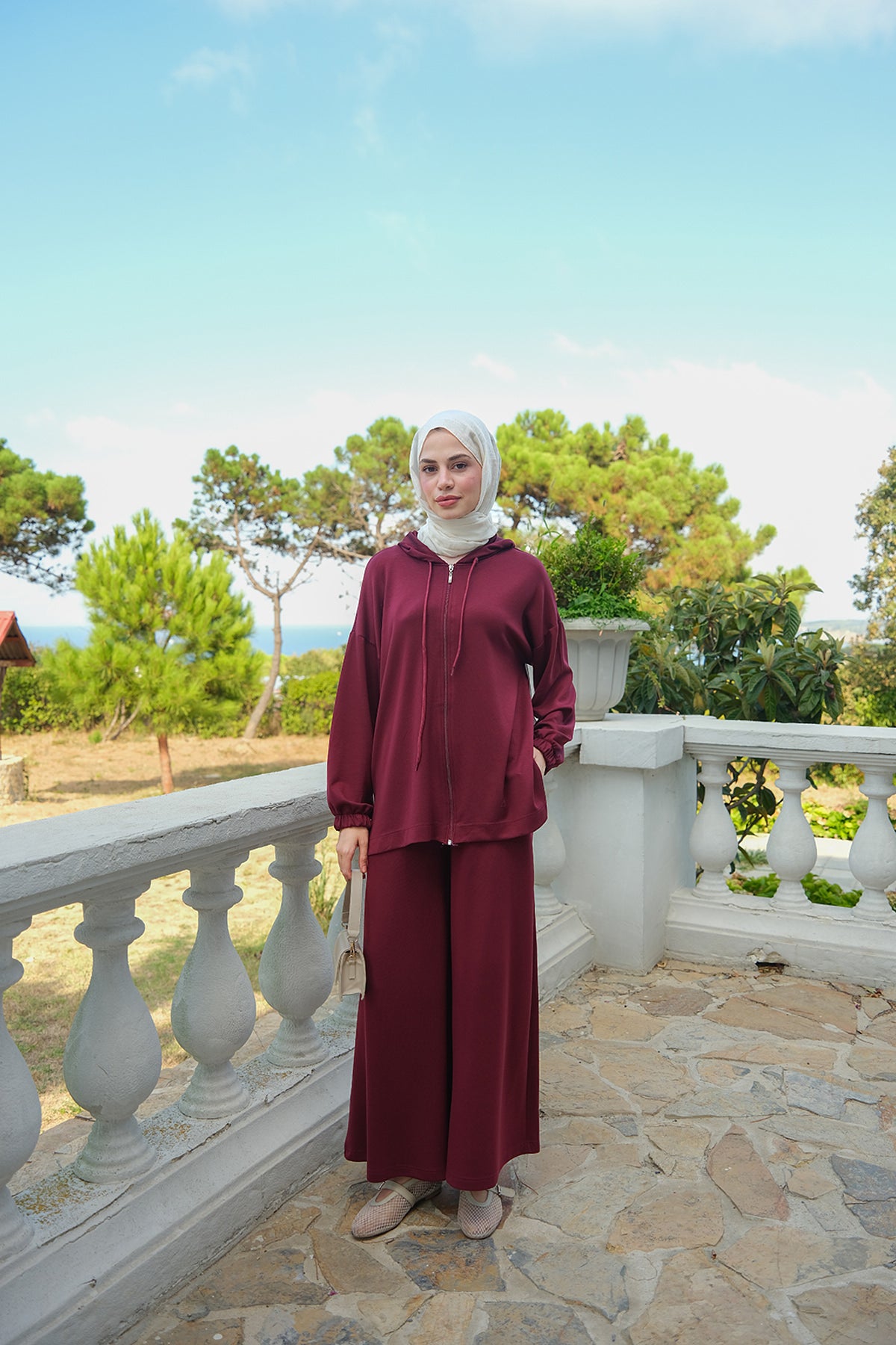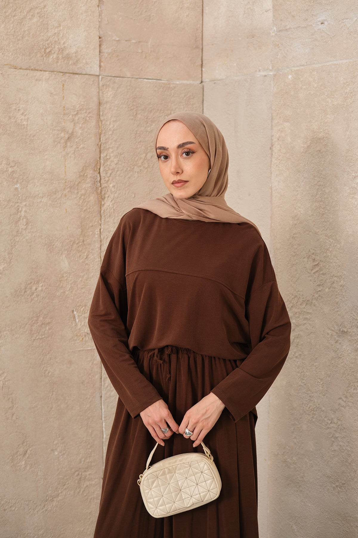 Ethnic Pattern Hooded Two-Piece Set – Brown