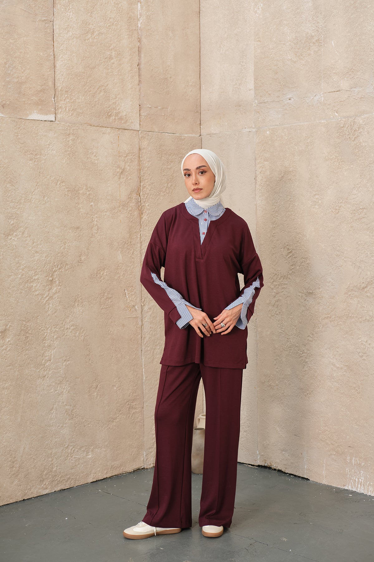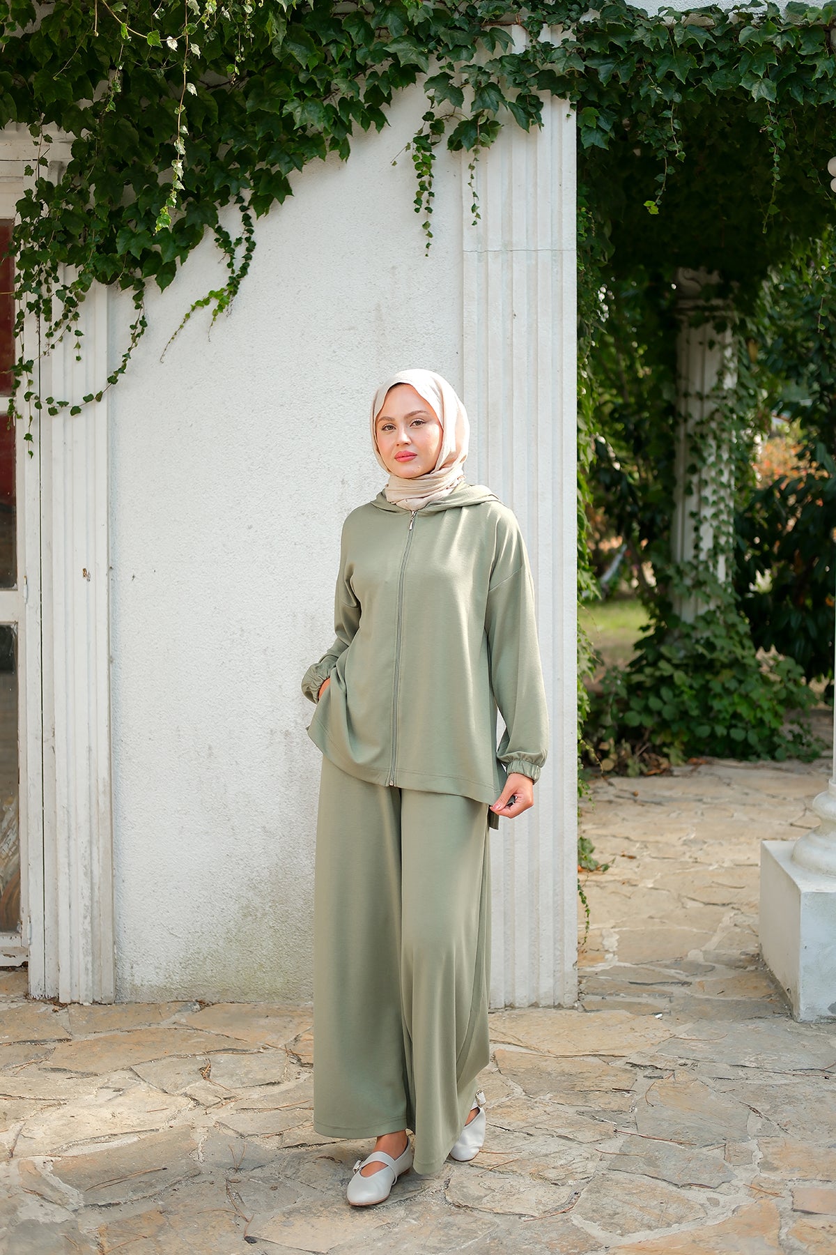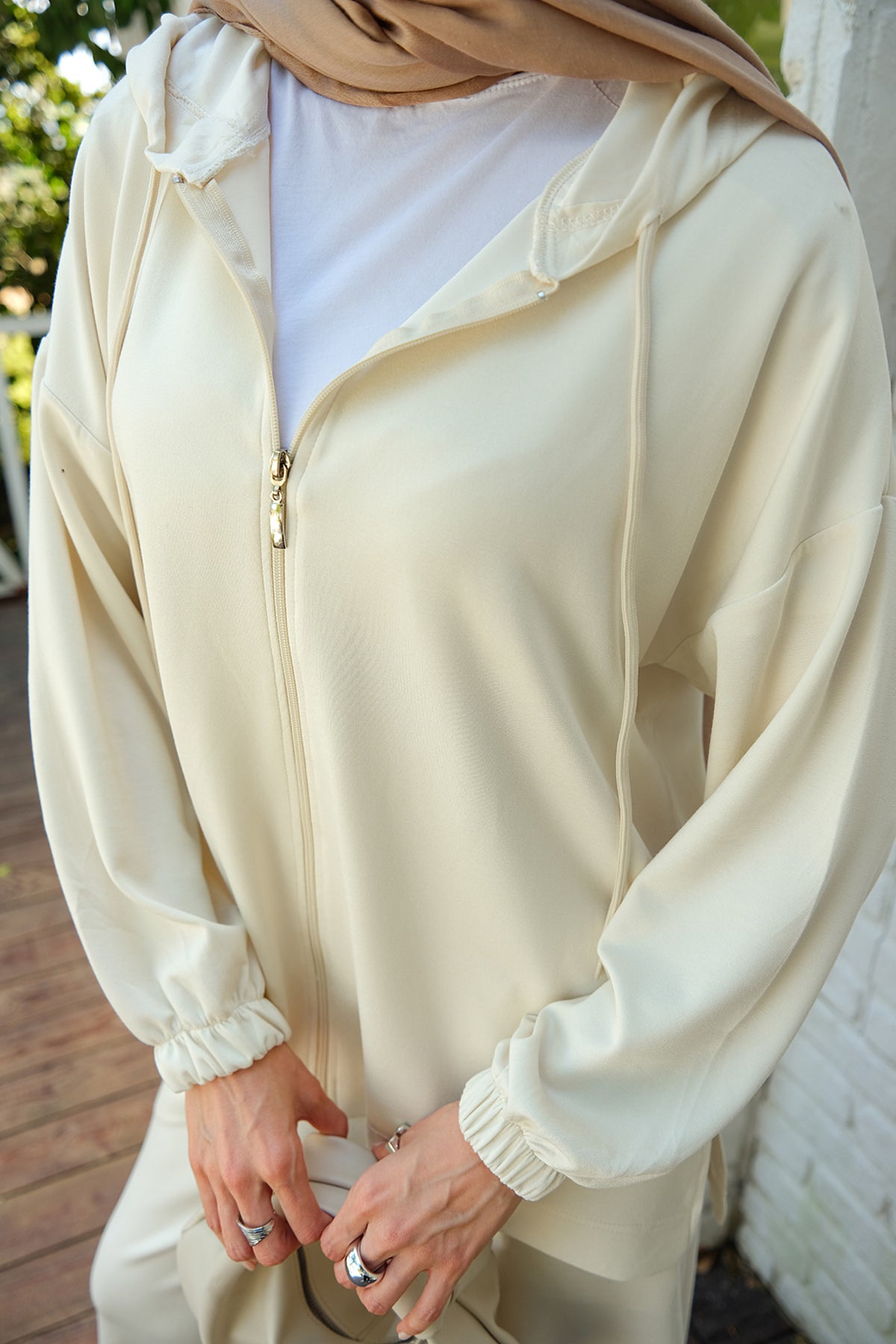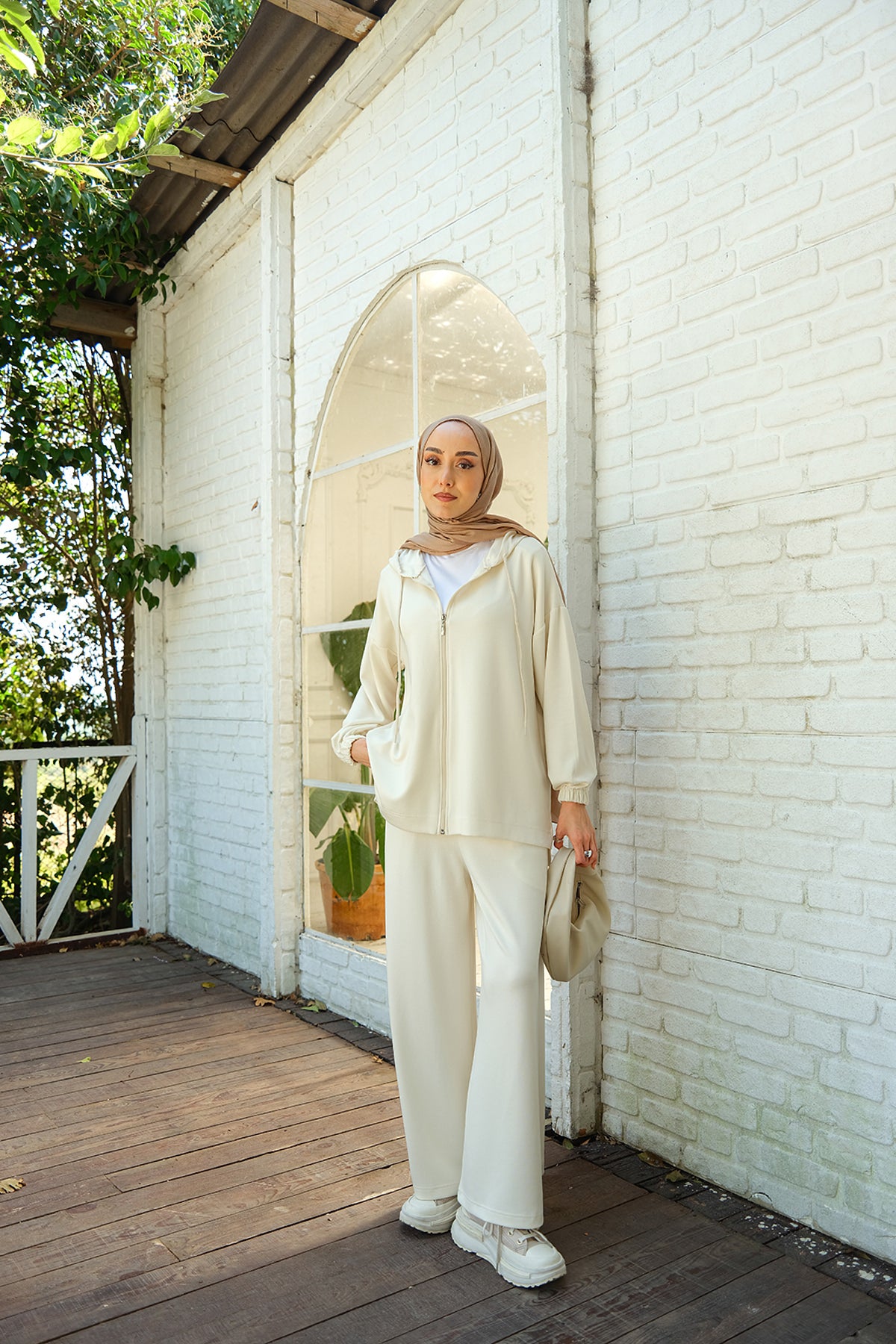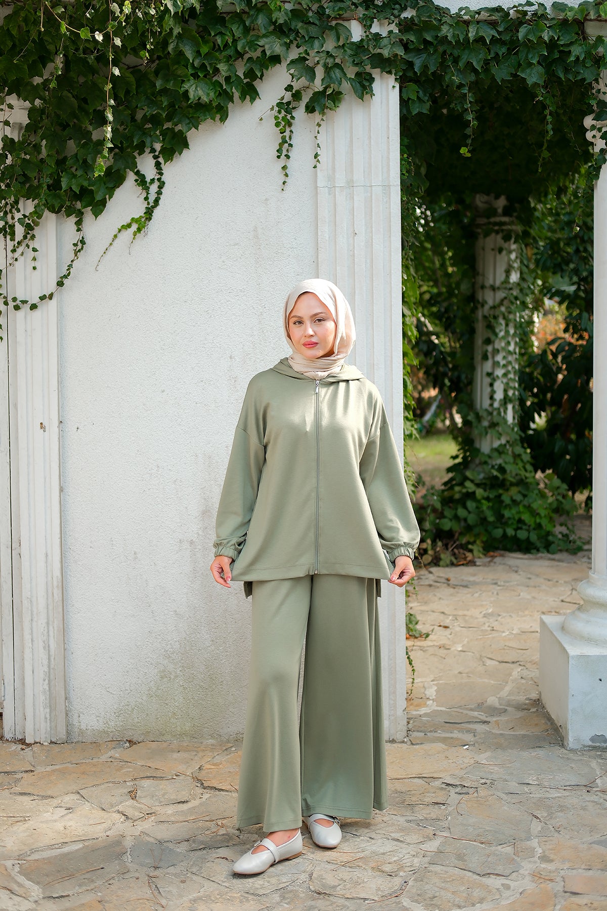 Ethnic Pattern Hooded Two-Piece Set – Brown