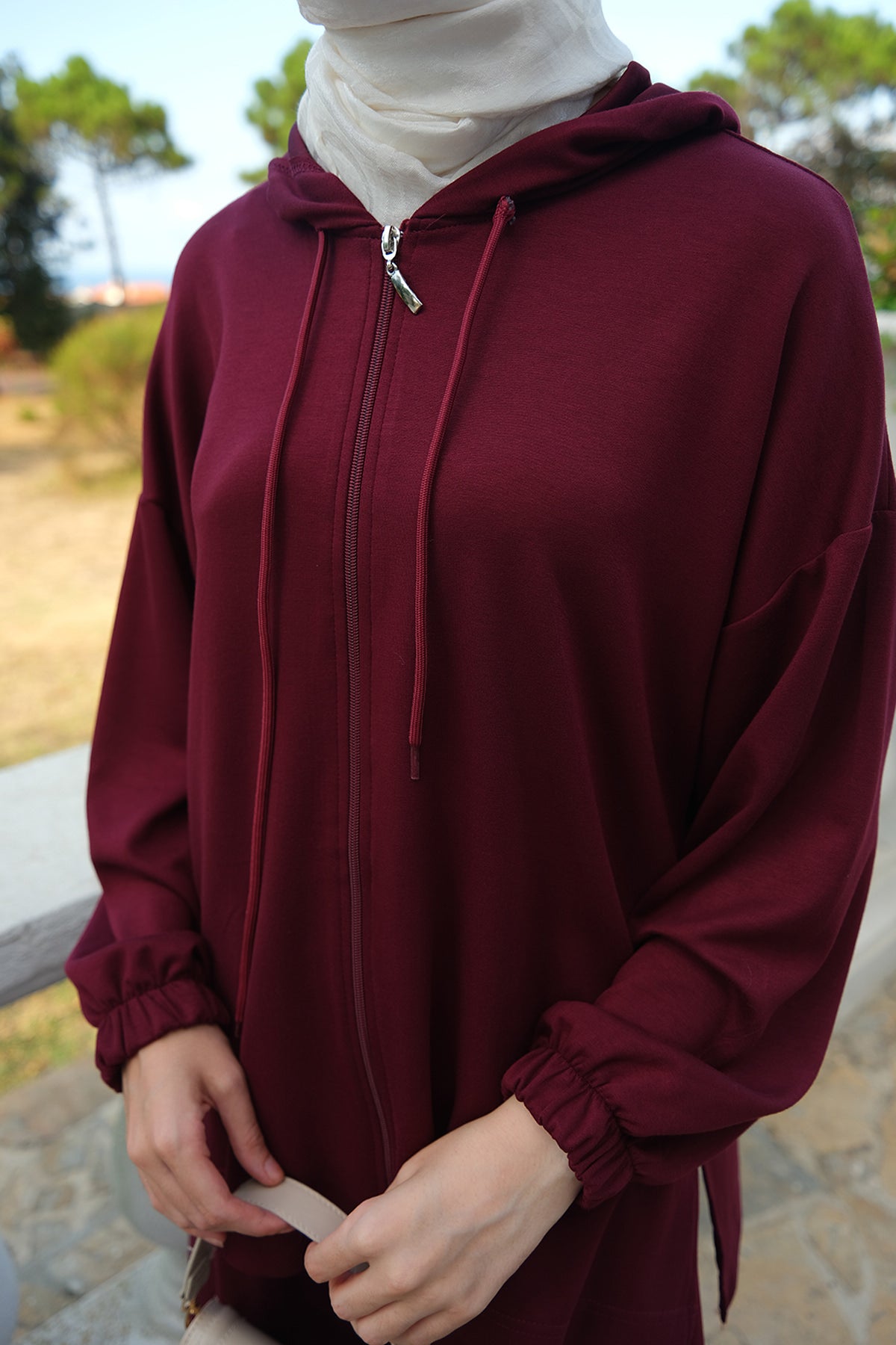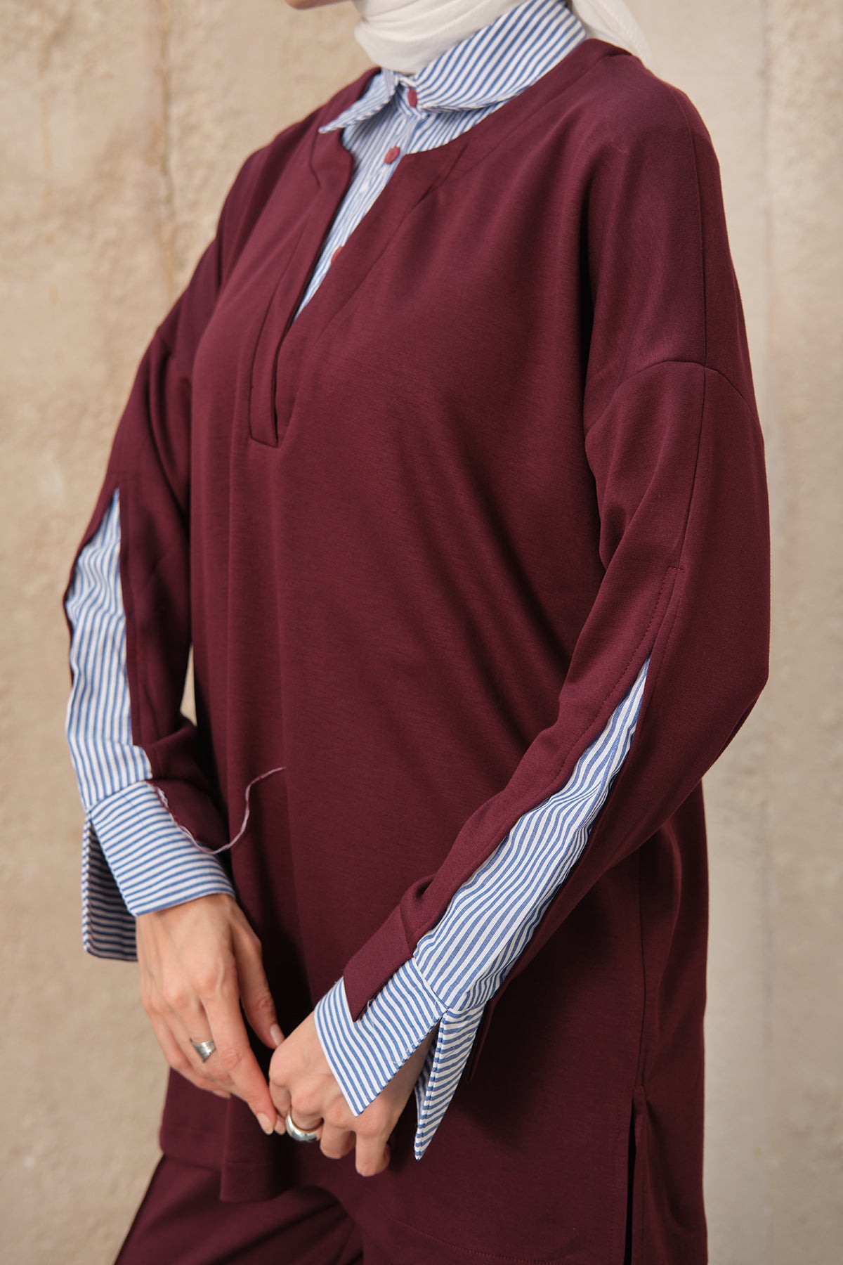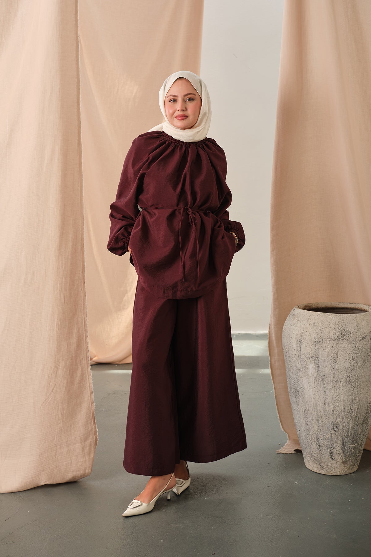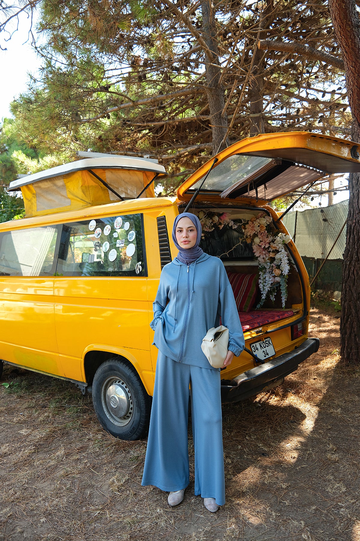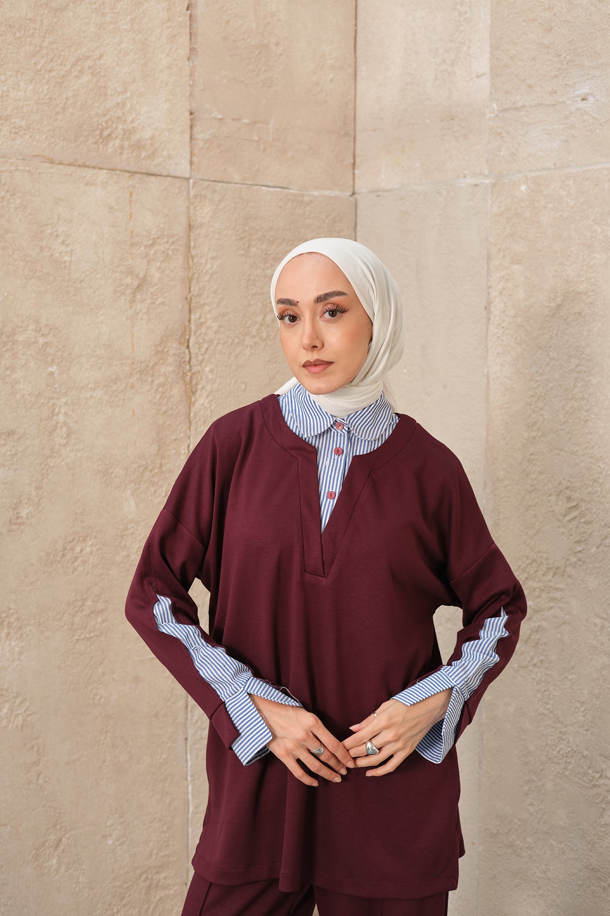 Ethnic Pattern Hooded Two-Piece Set – Brown