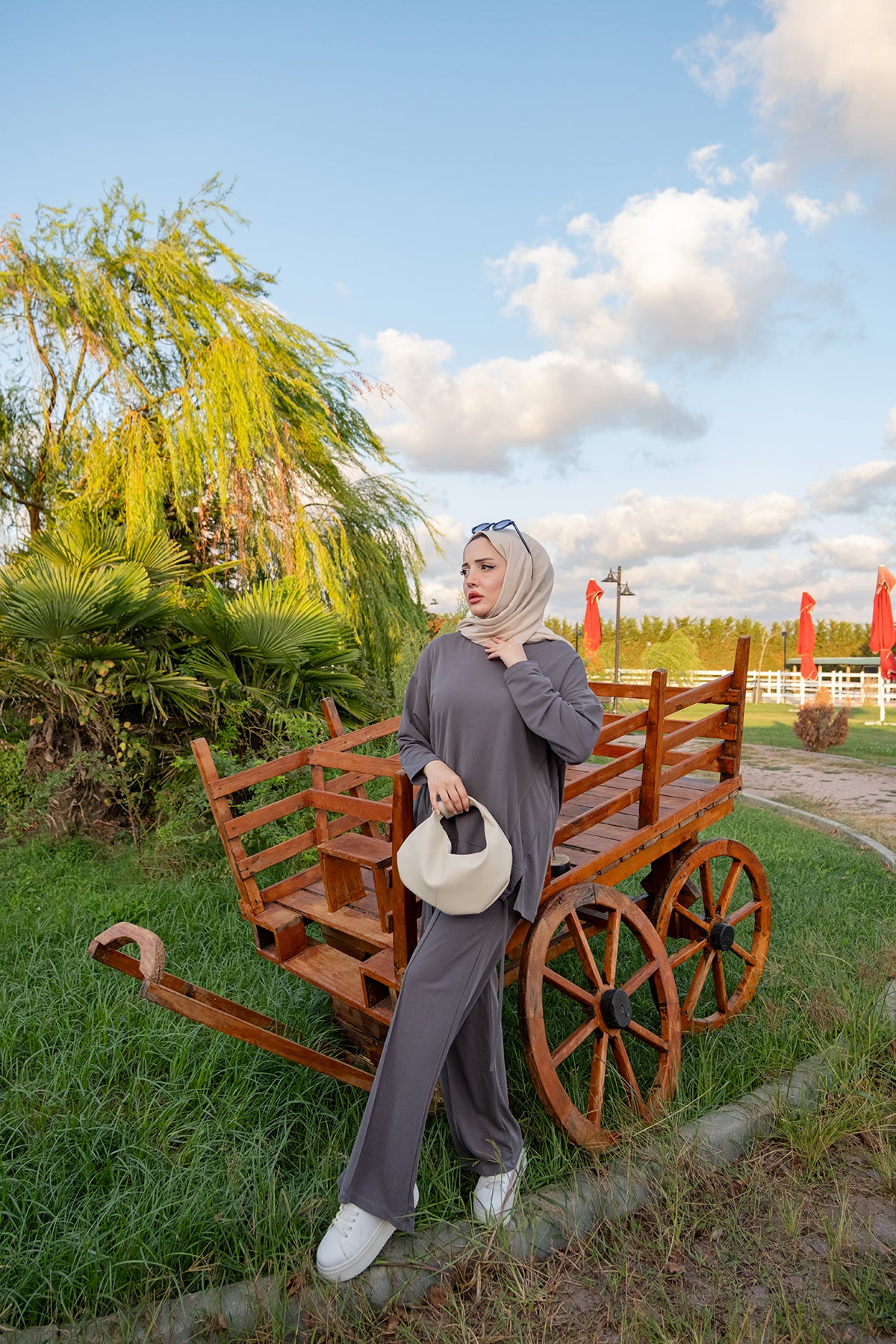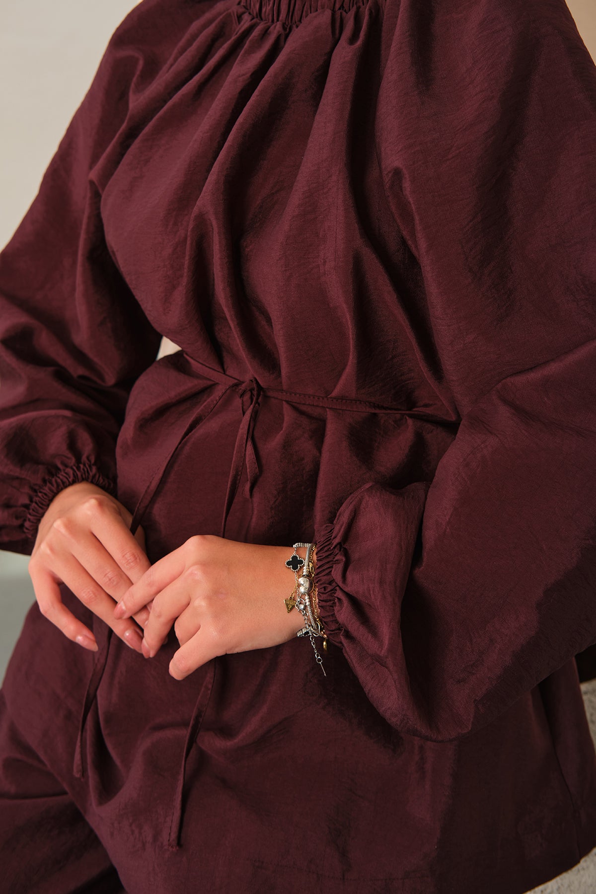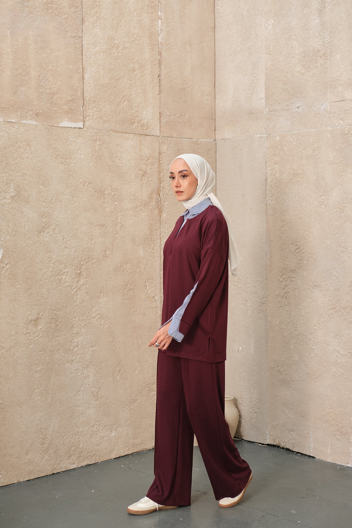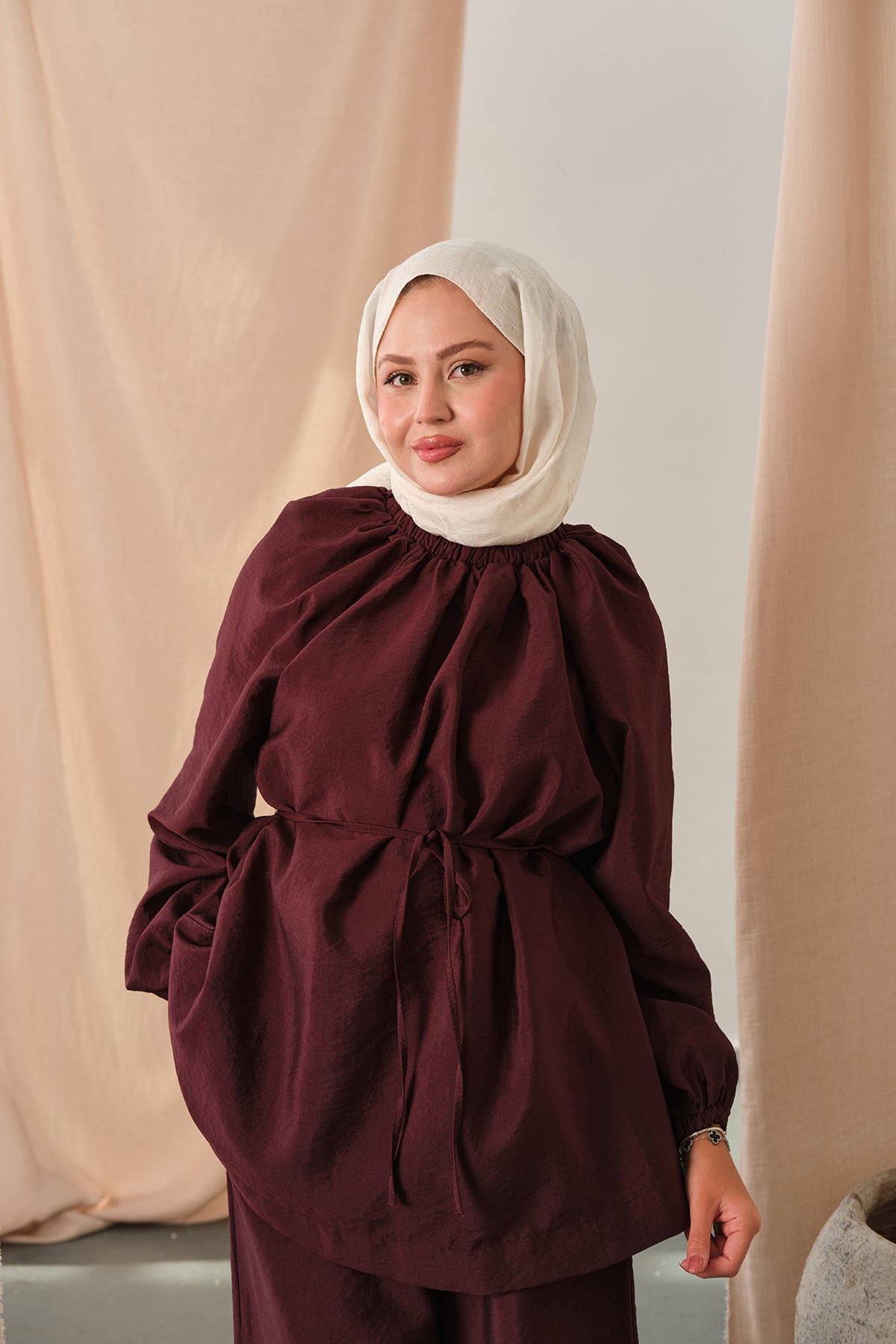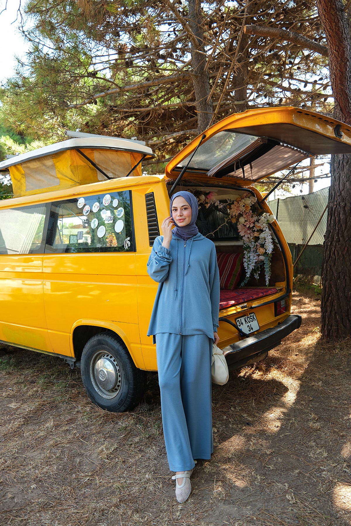 Ethnic Pattern Hooded Two-Piece Set – Brown