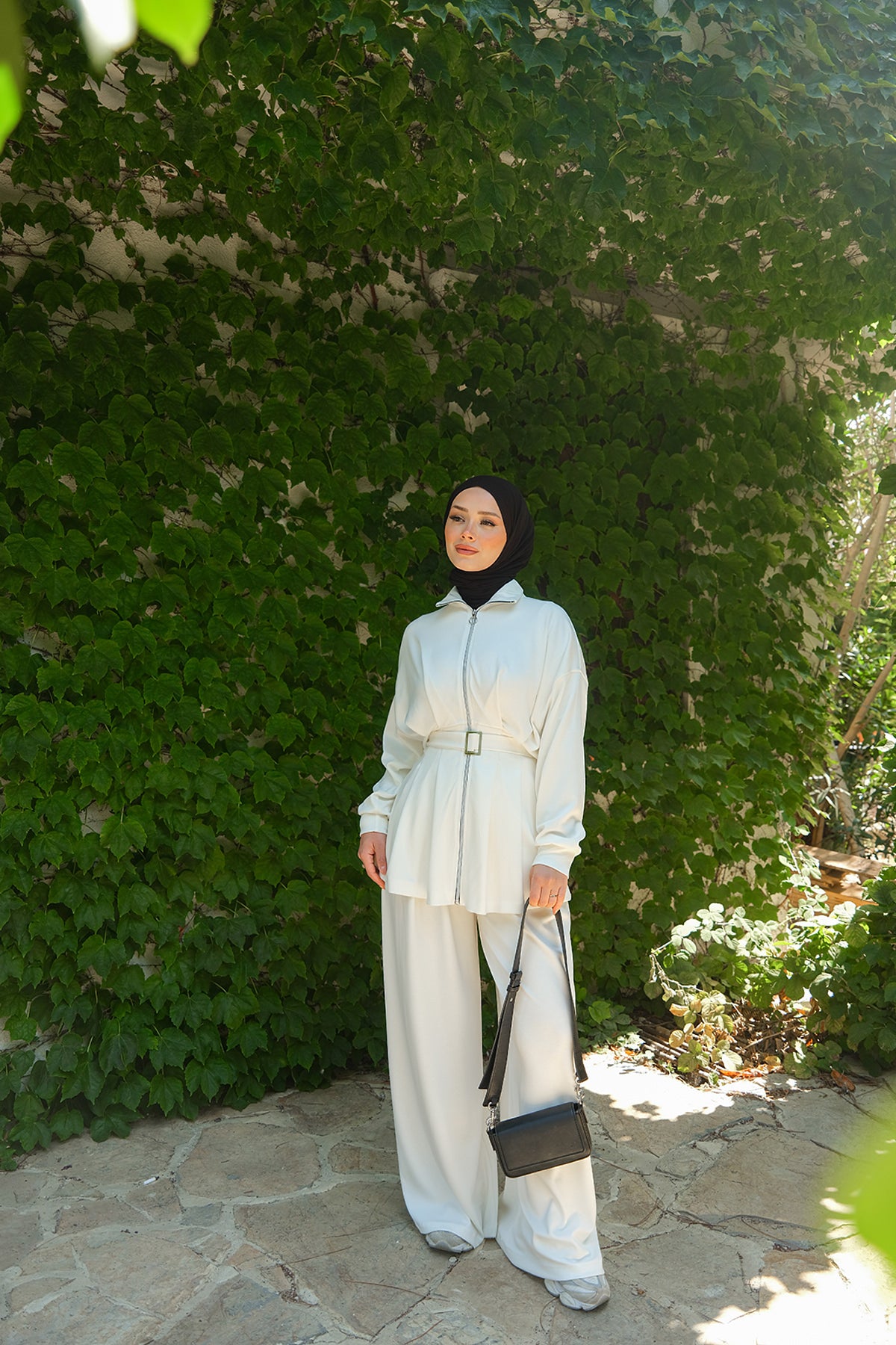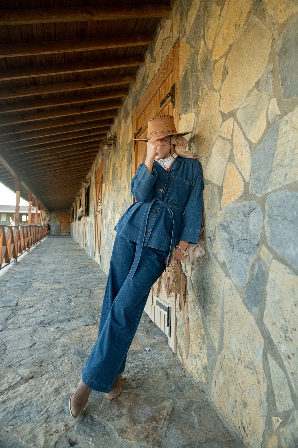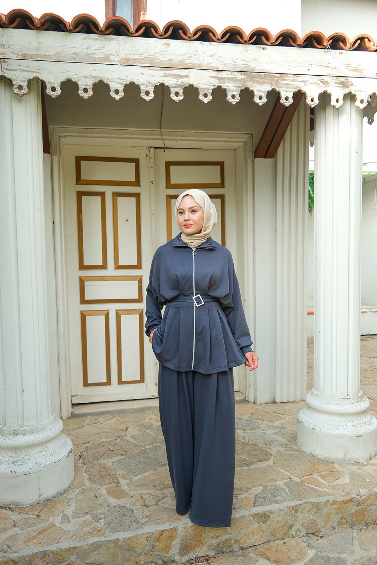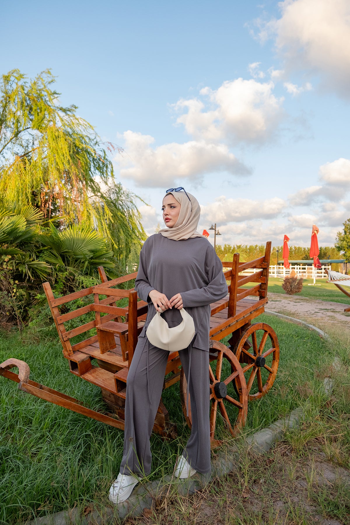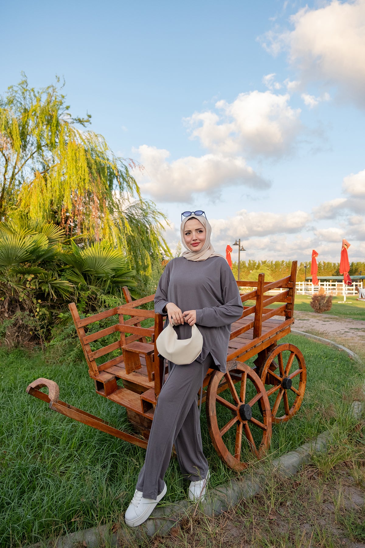 Ethnic Pattern Hooded Two-Piece Set – Brown