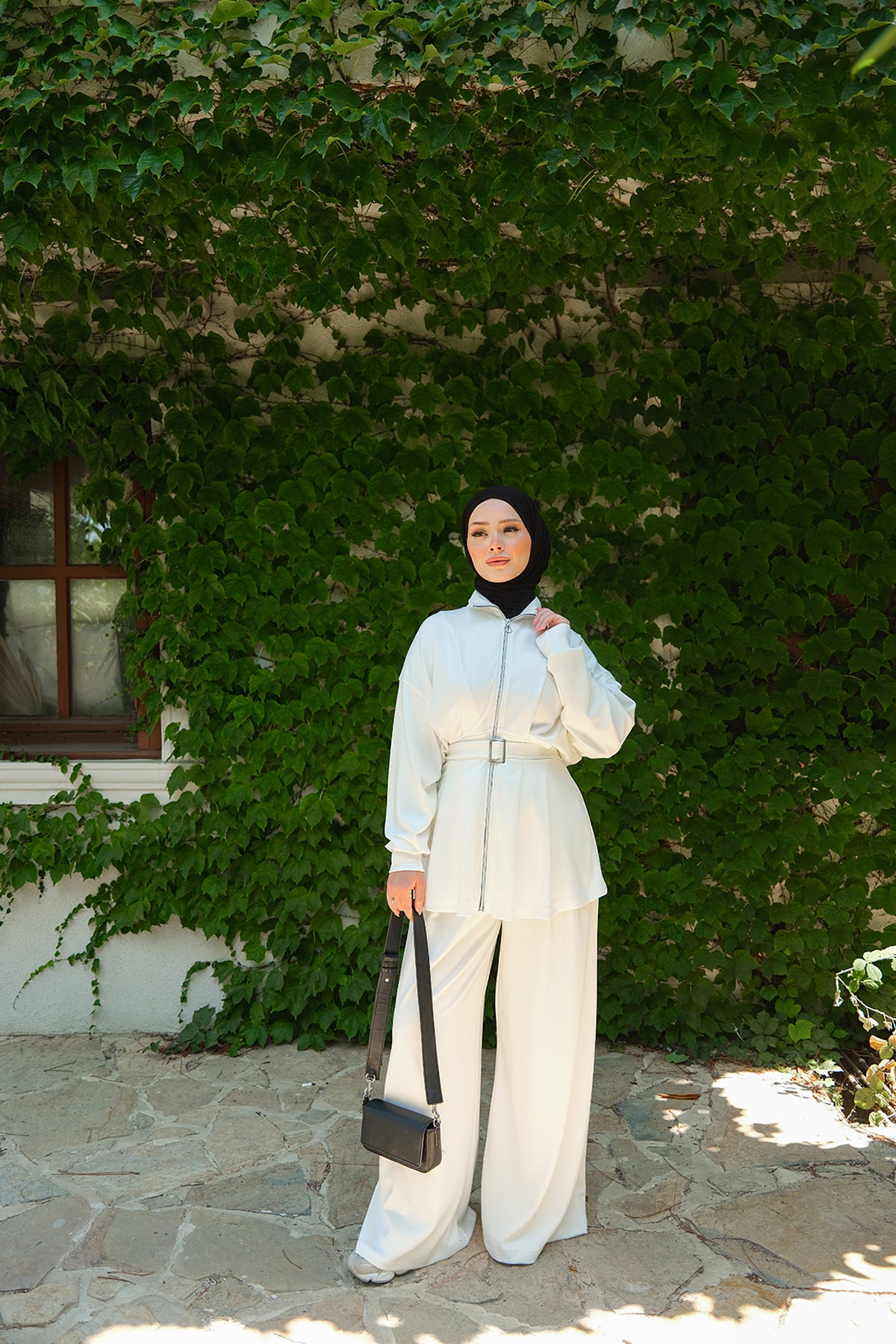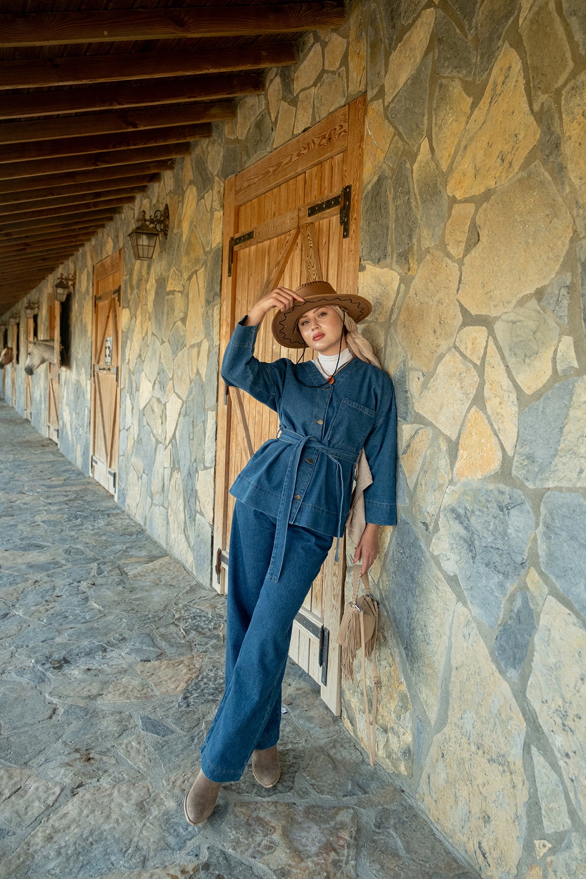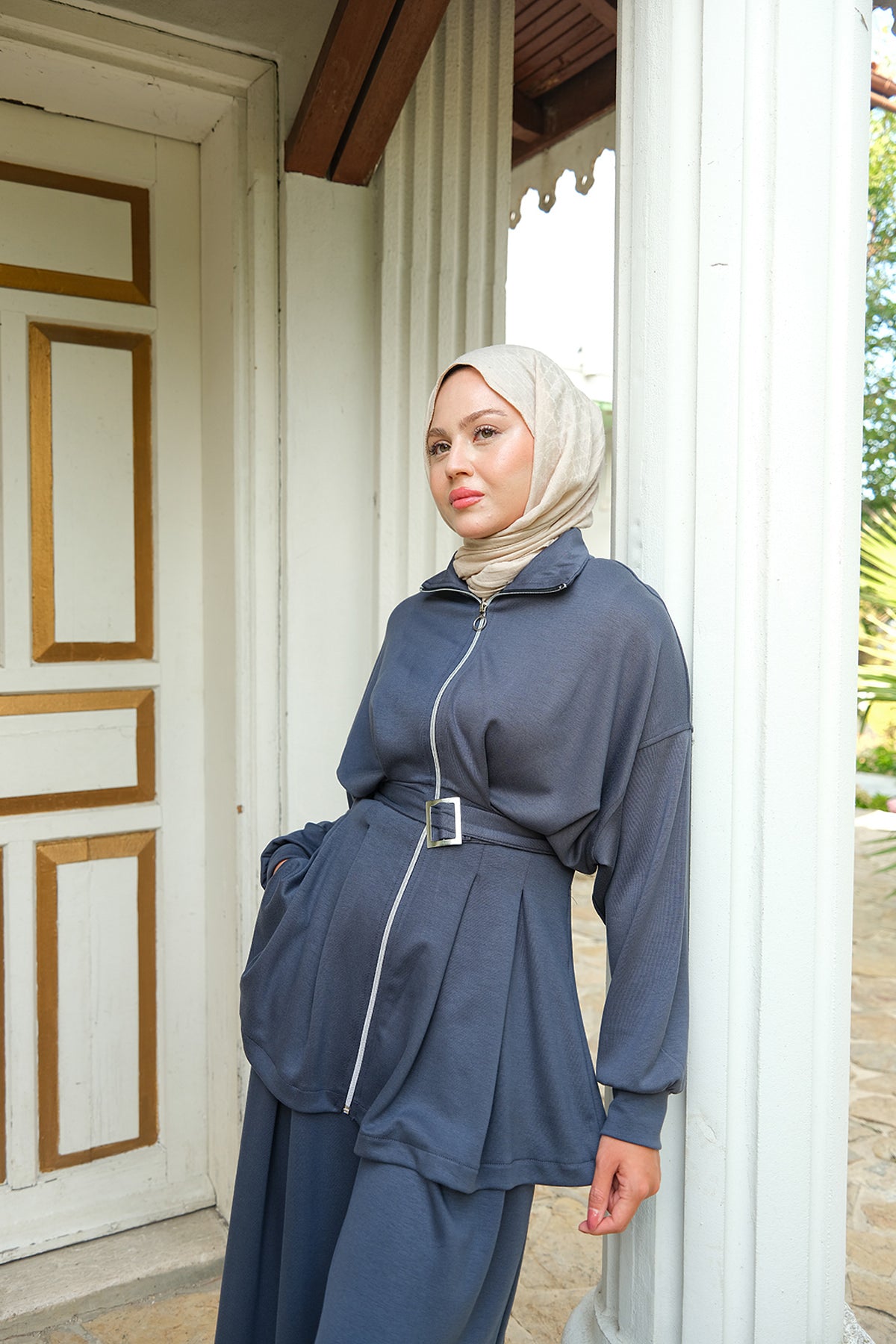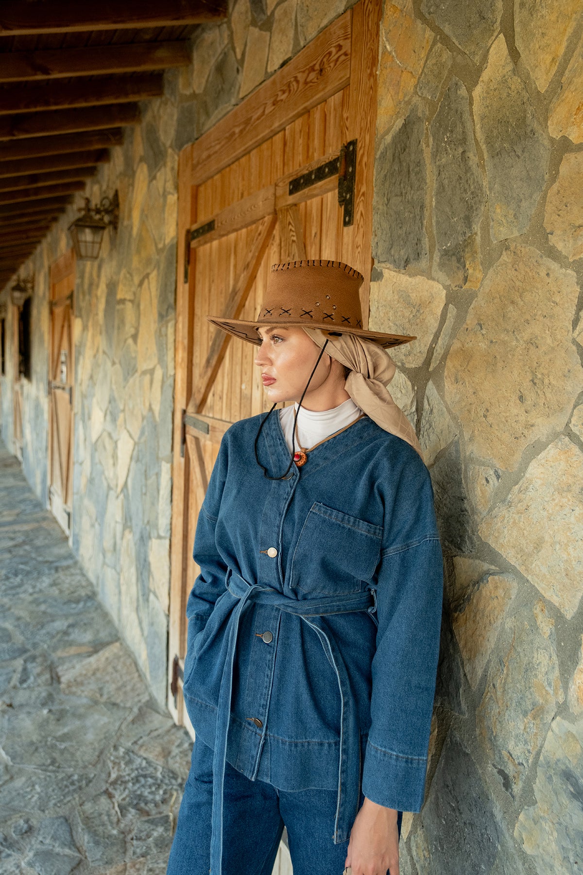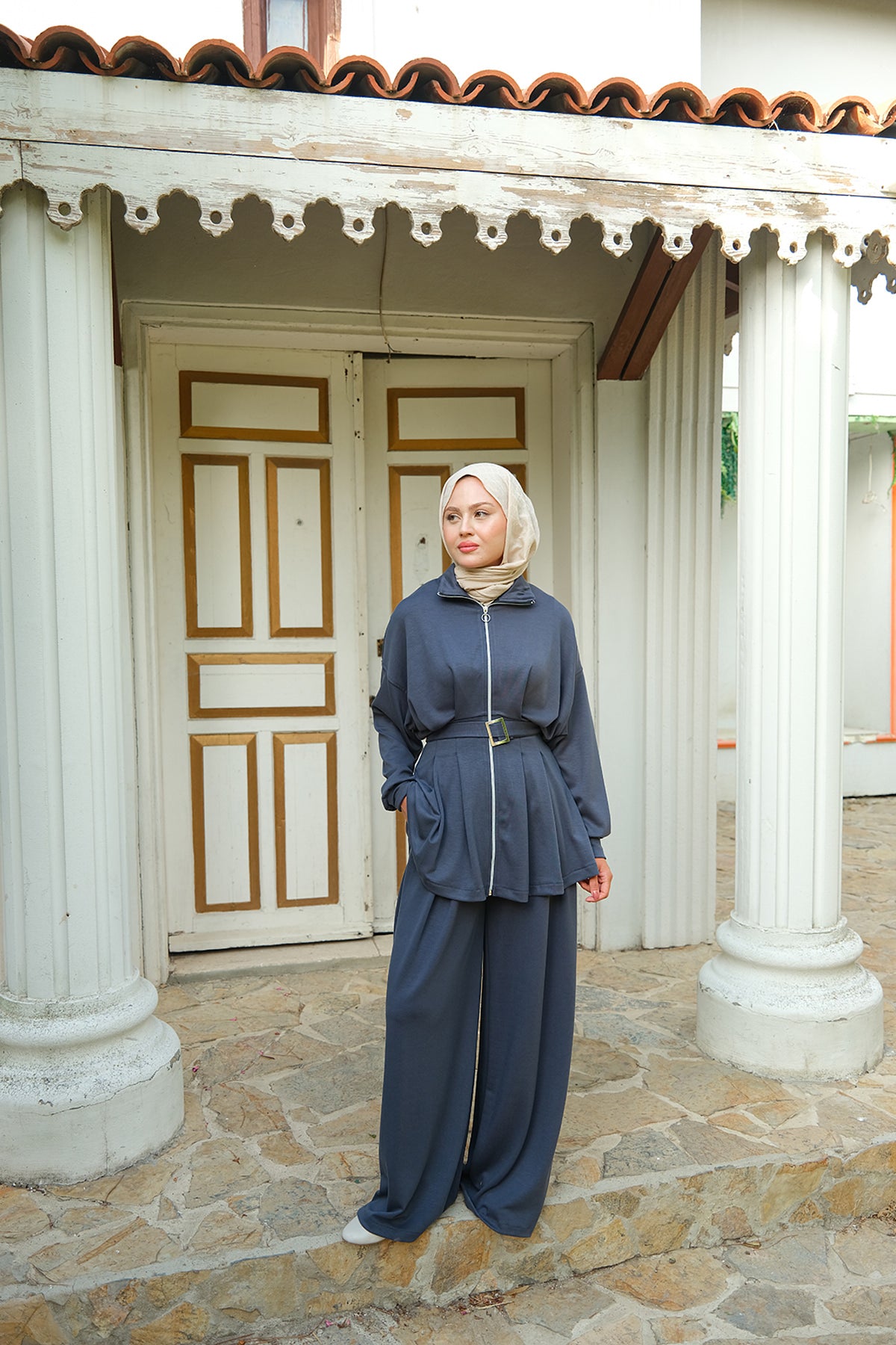 Ethnic Pattern Hooded Two-Piece Set – Brown