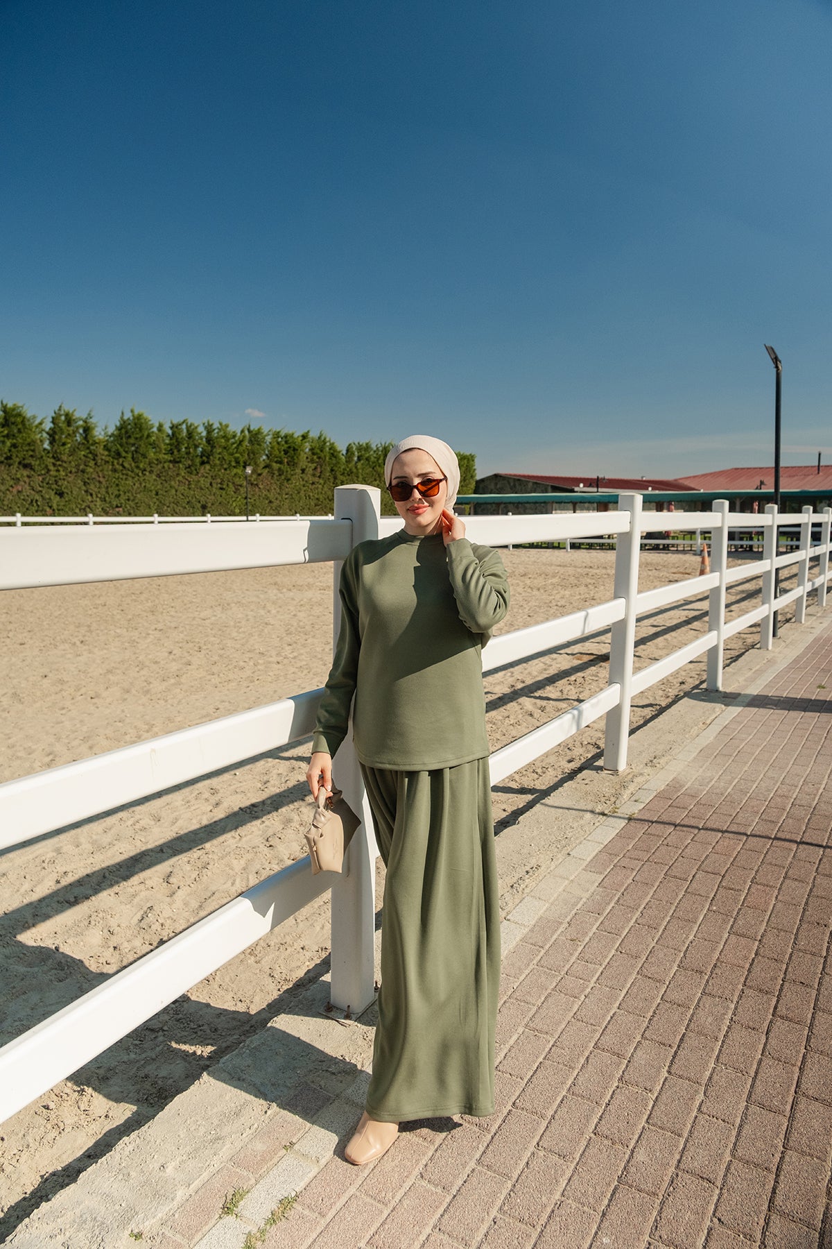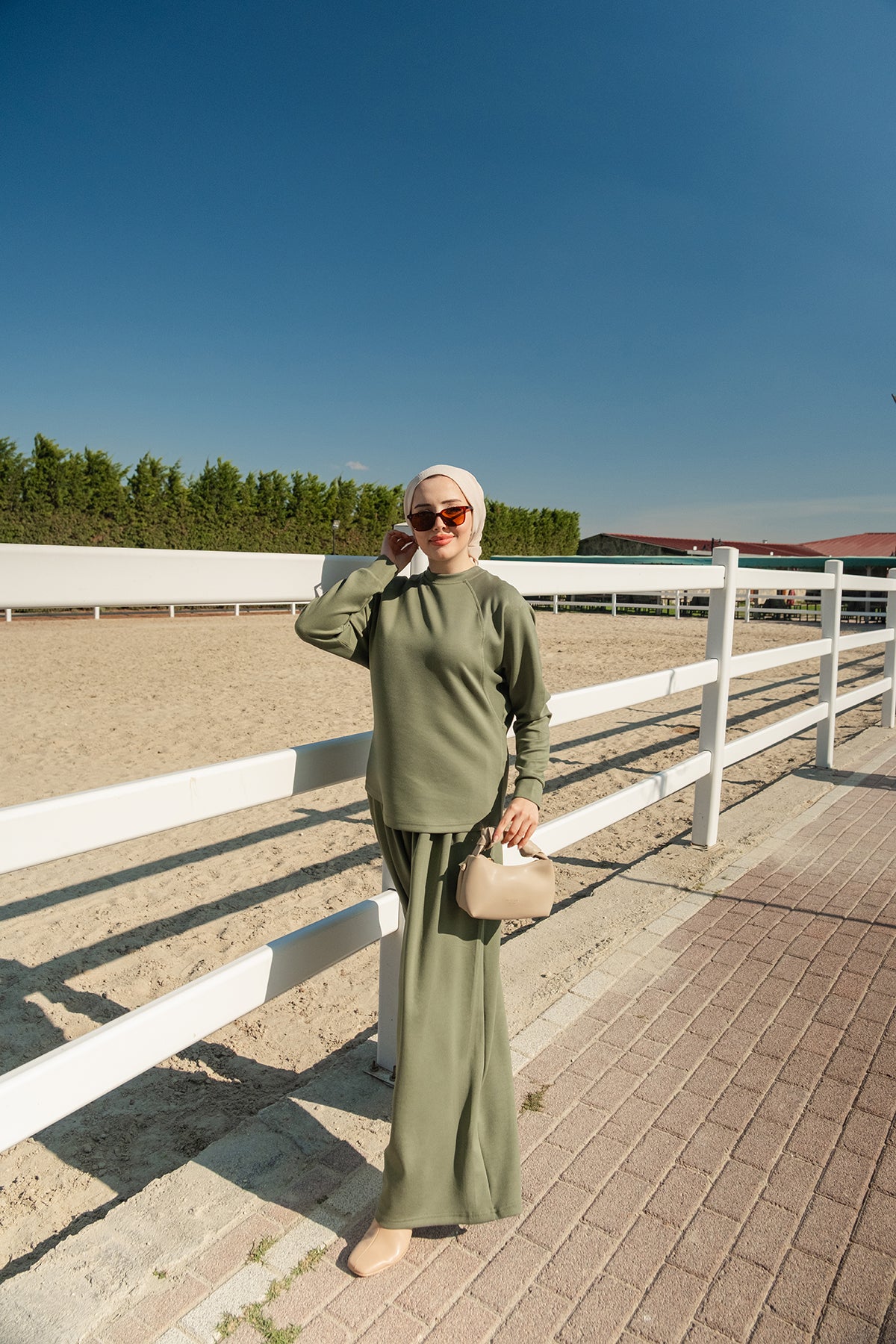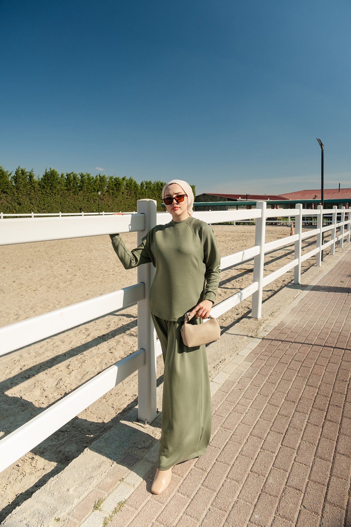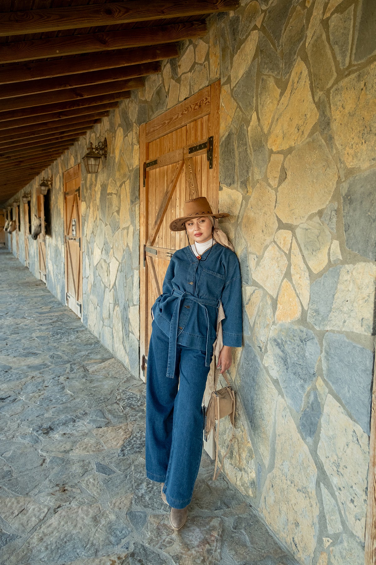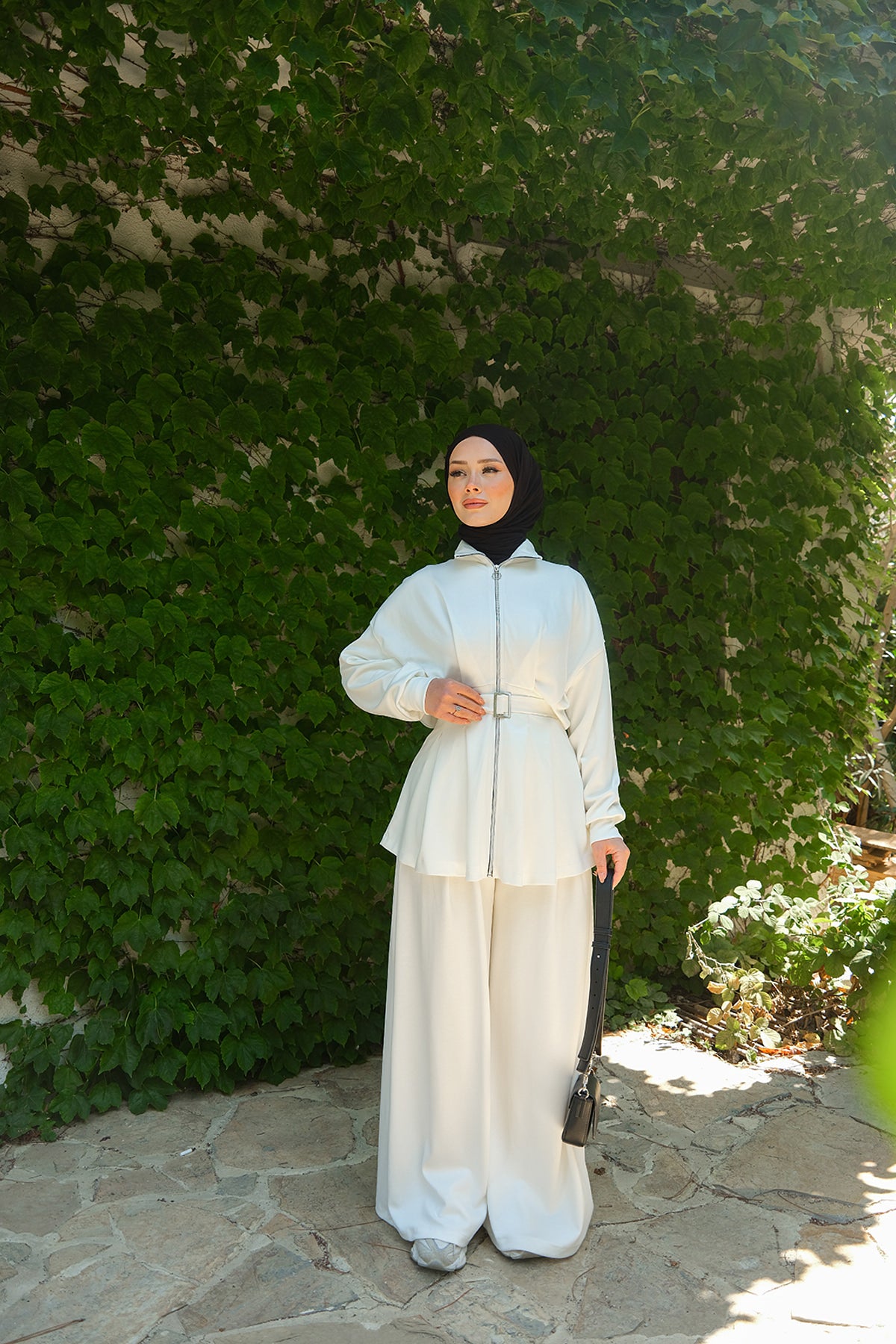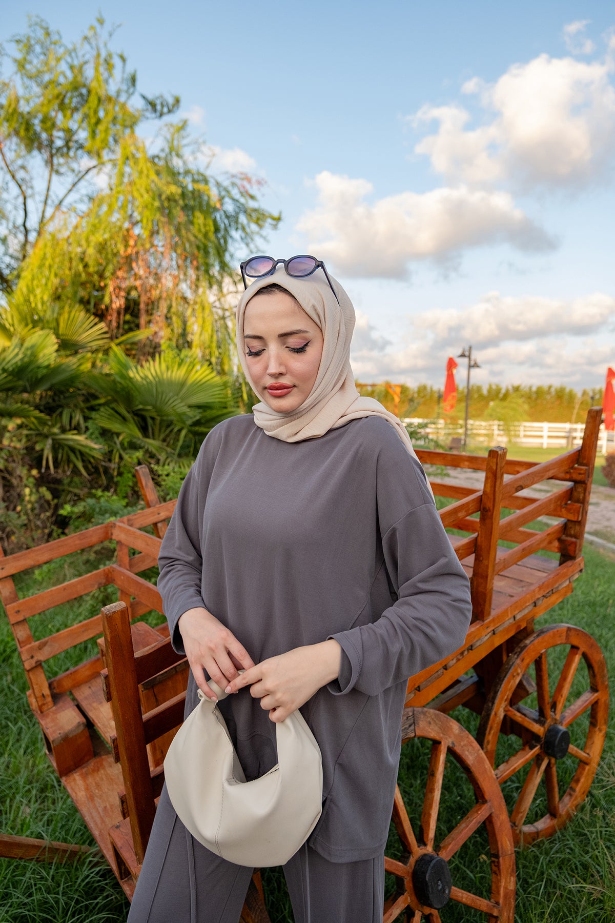 Ethnic Pattern Hooded Two-Piece Set – Brown