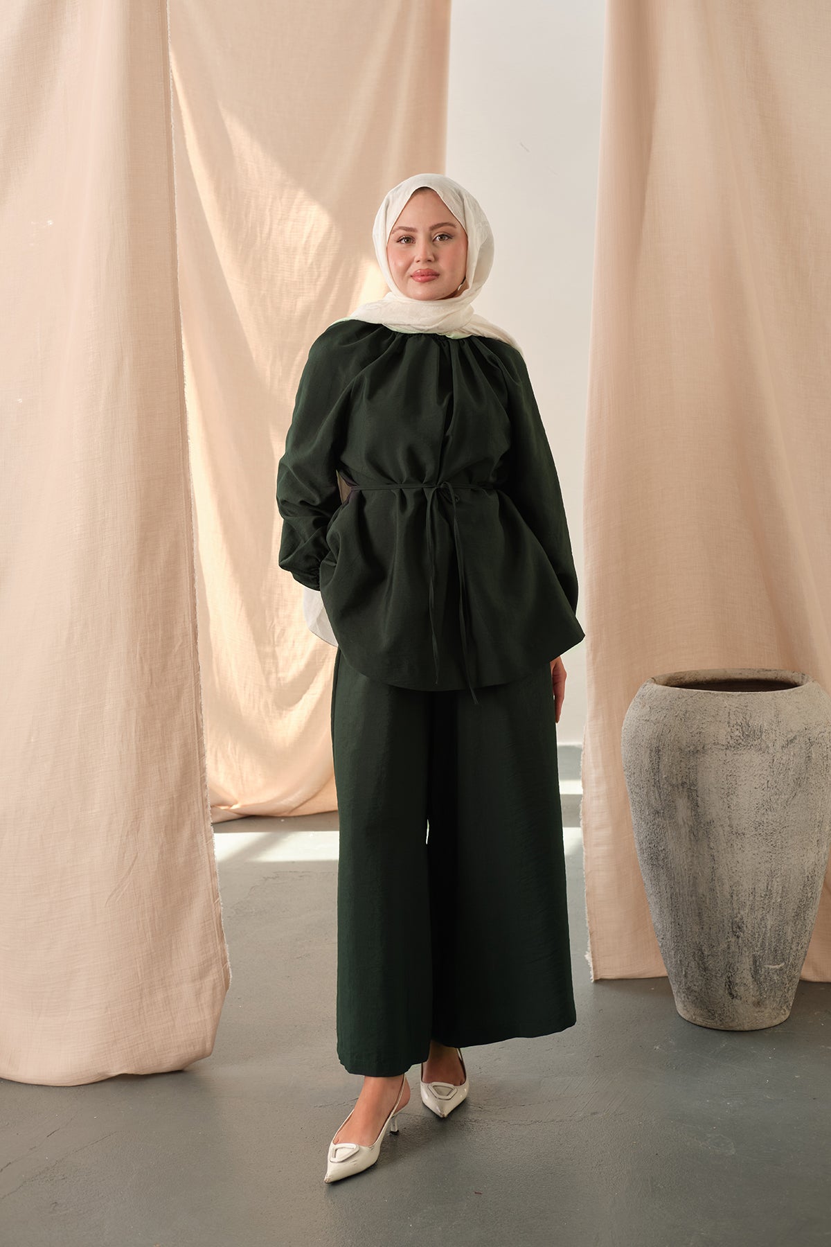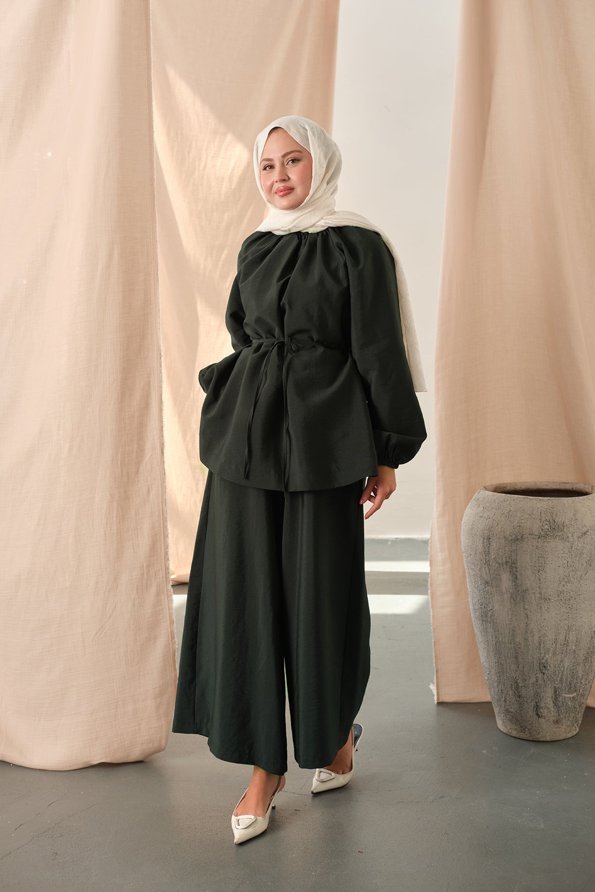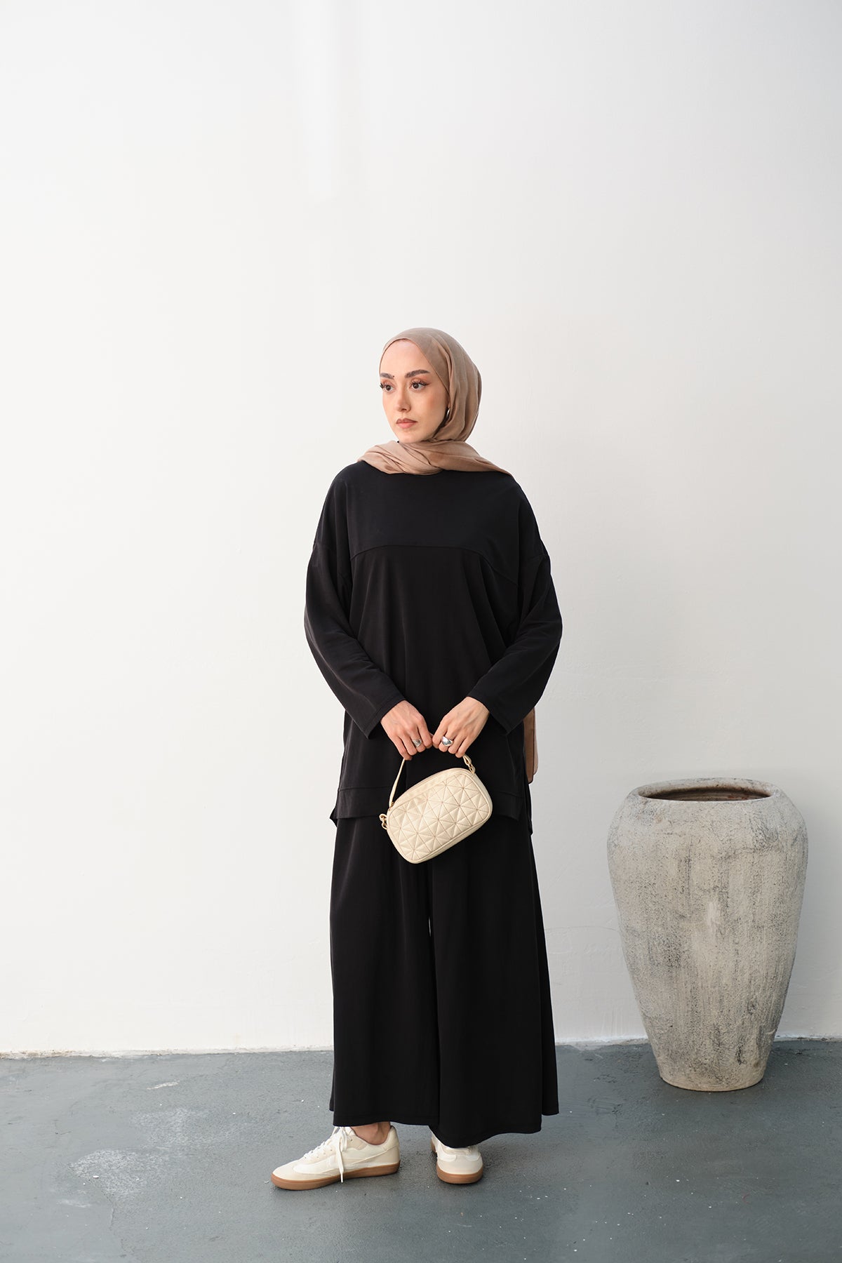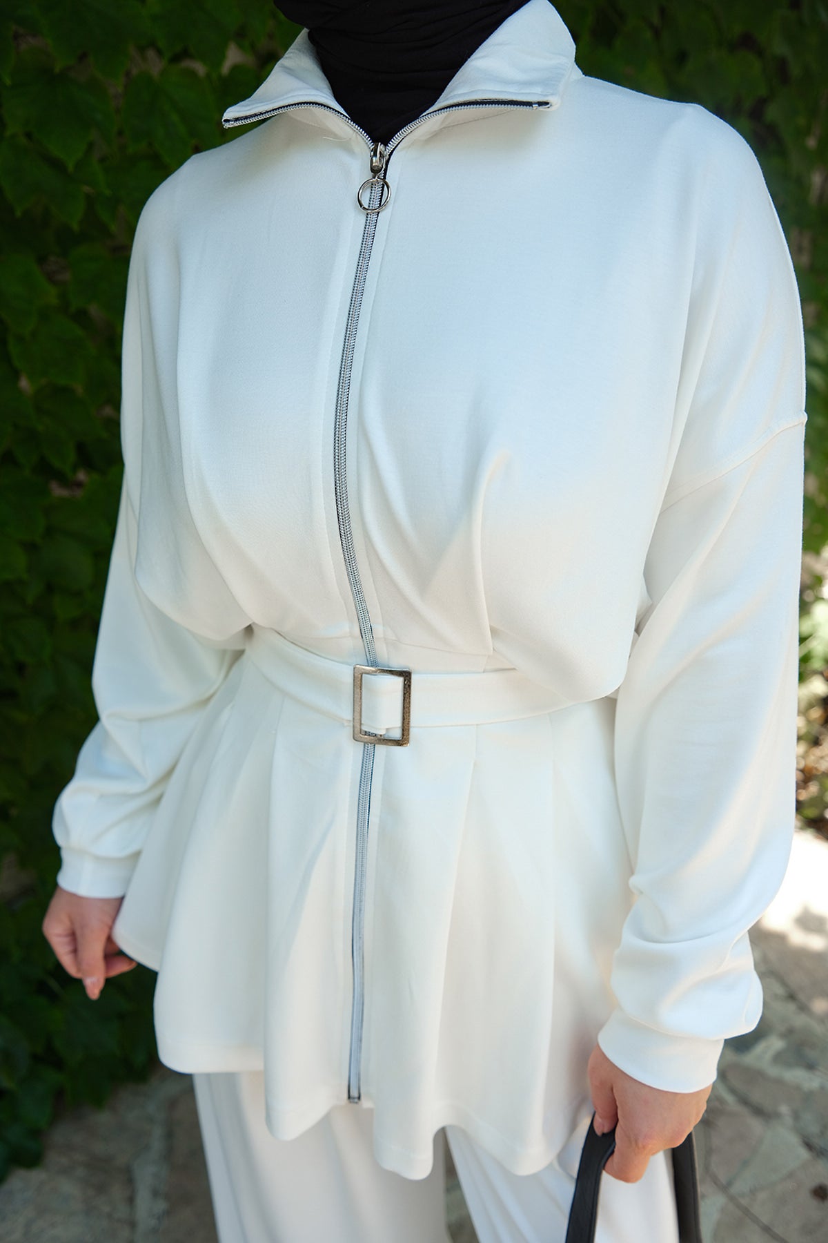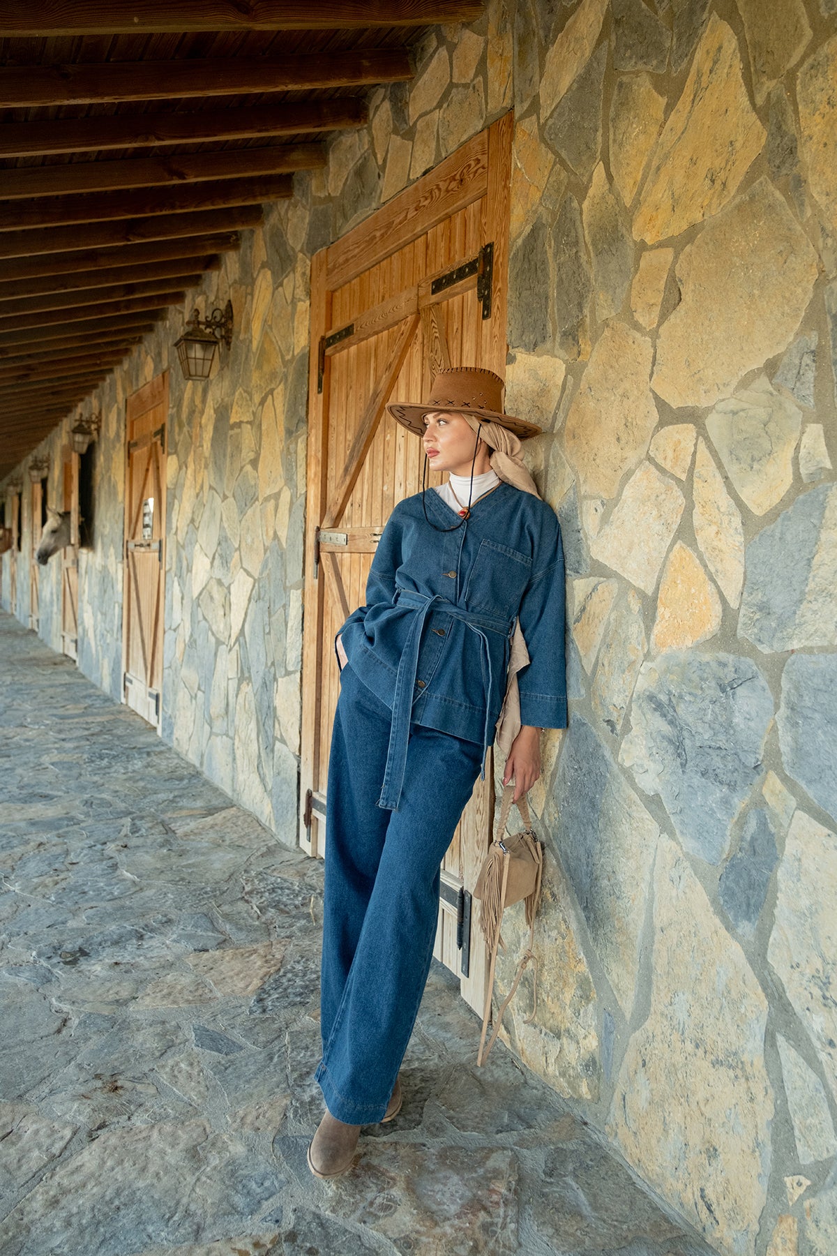 Ethnic Pattern Hooded Two-Piece Set – Brown