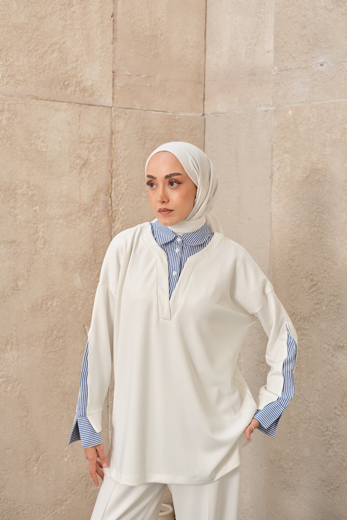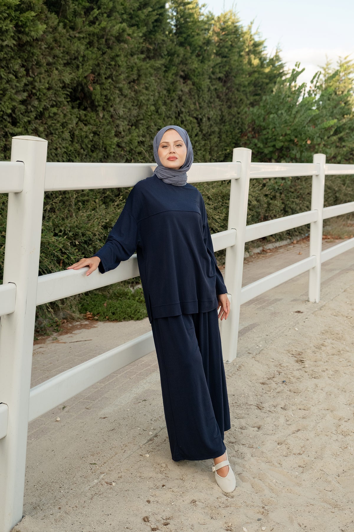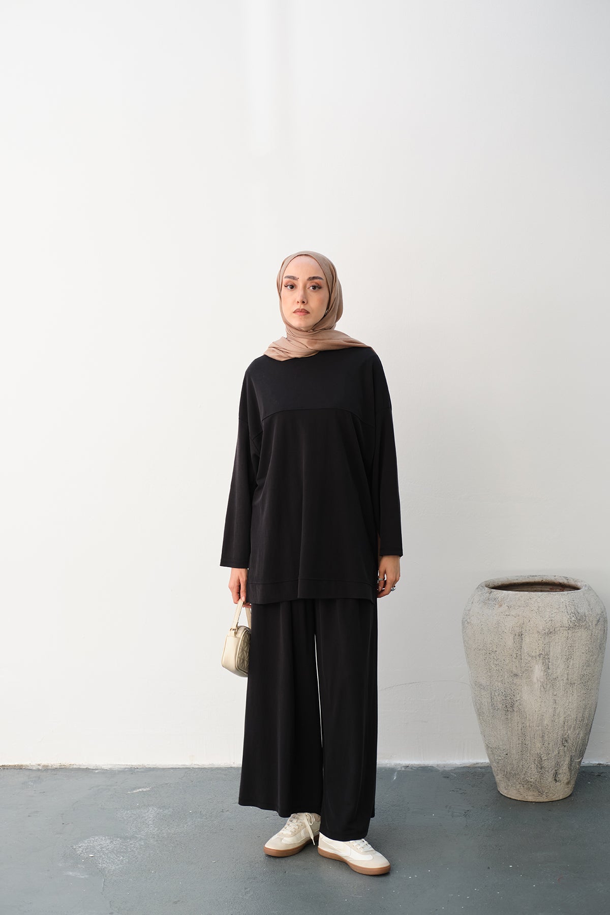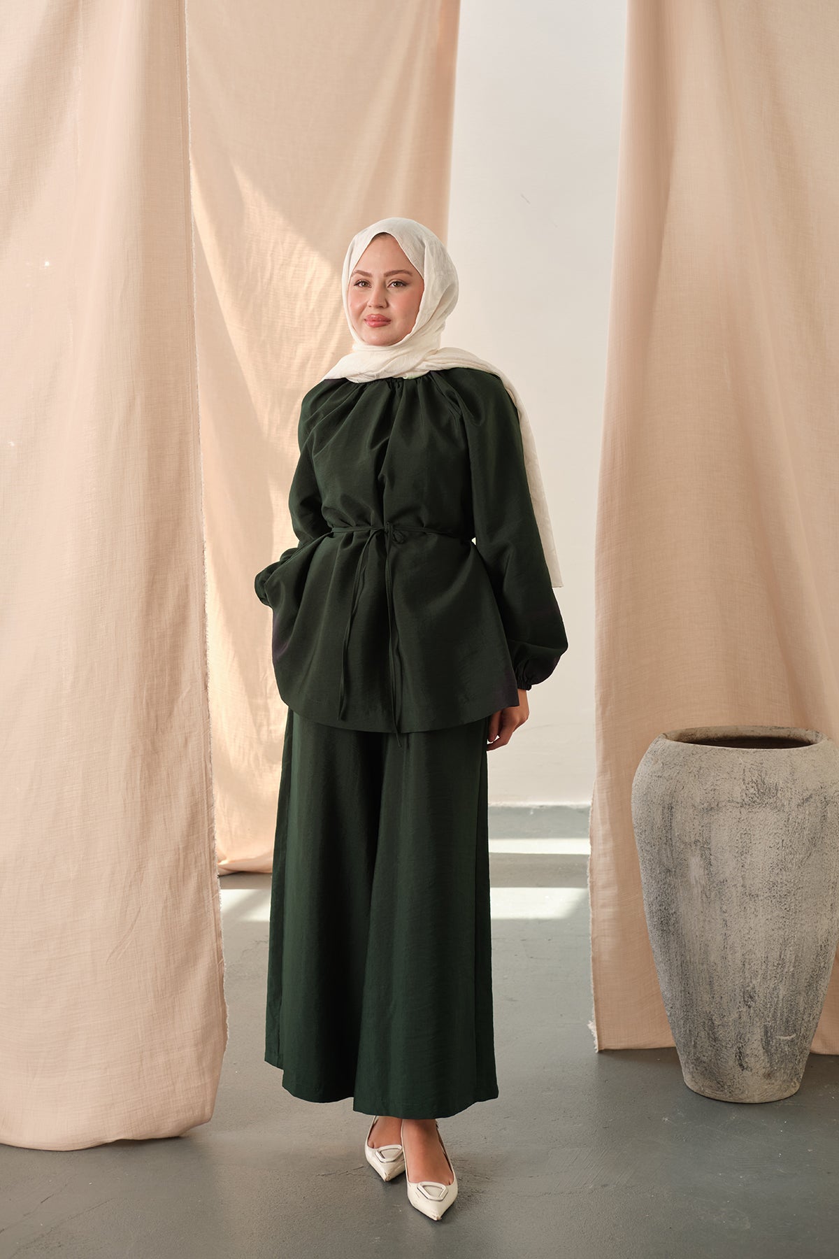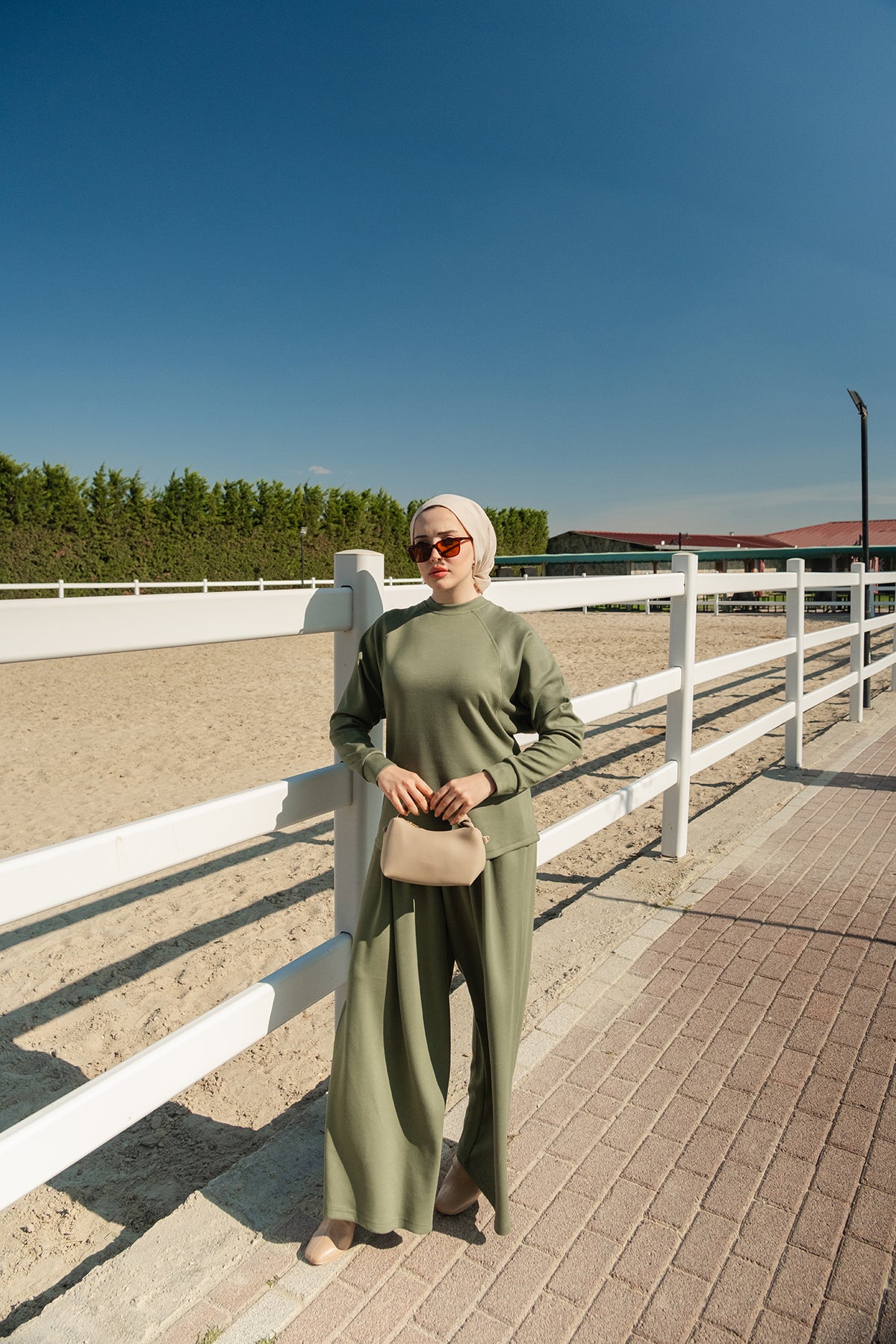 Ethnic Pattern Hooded Two-Piece Set – Brown
