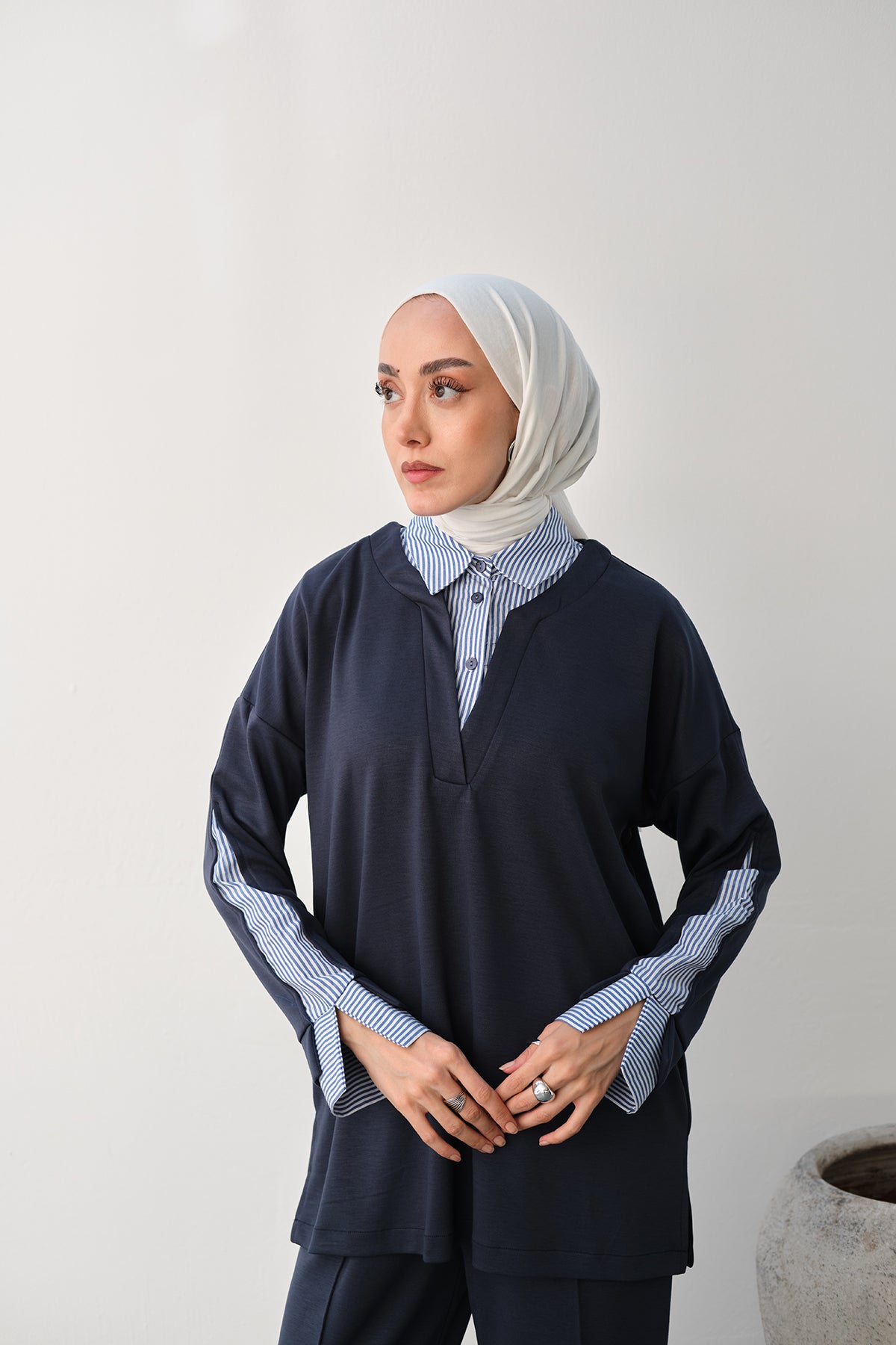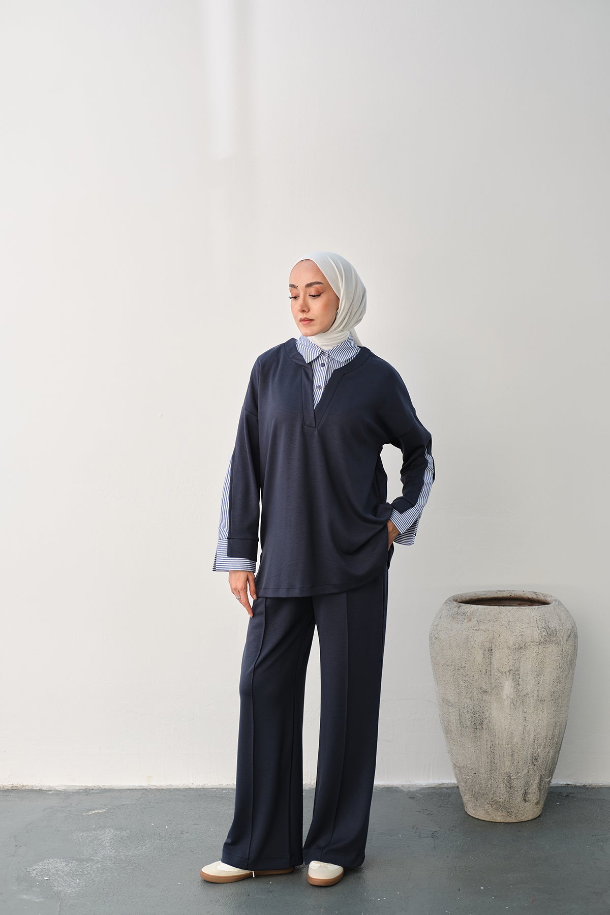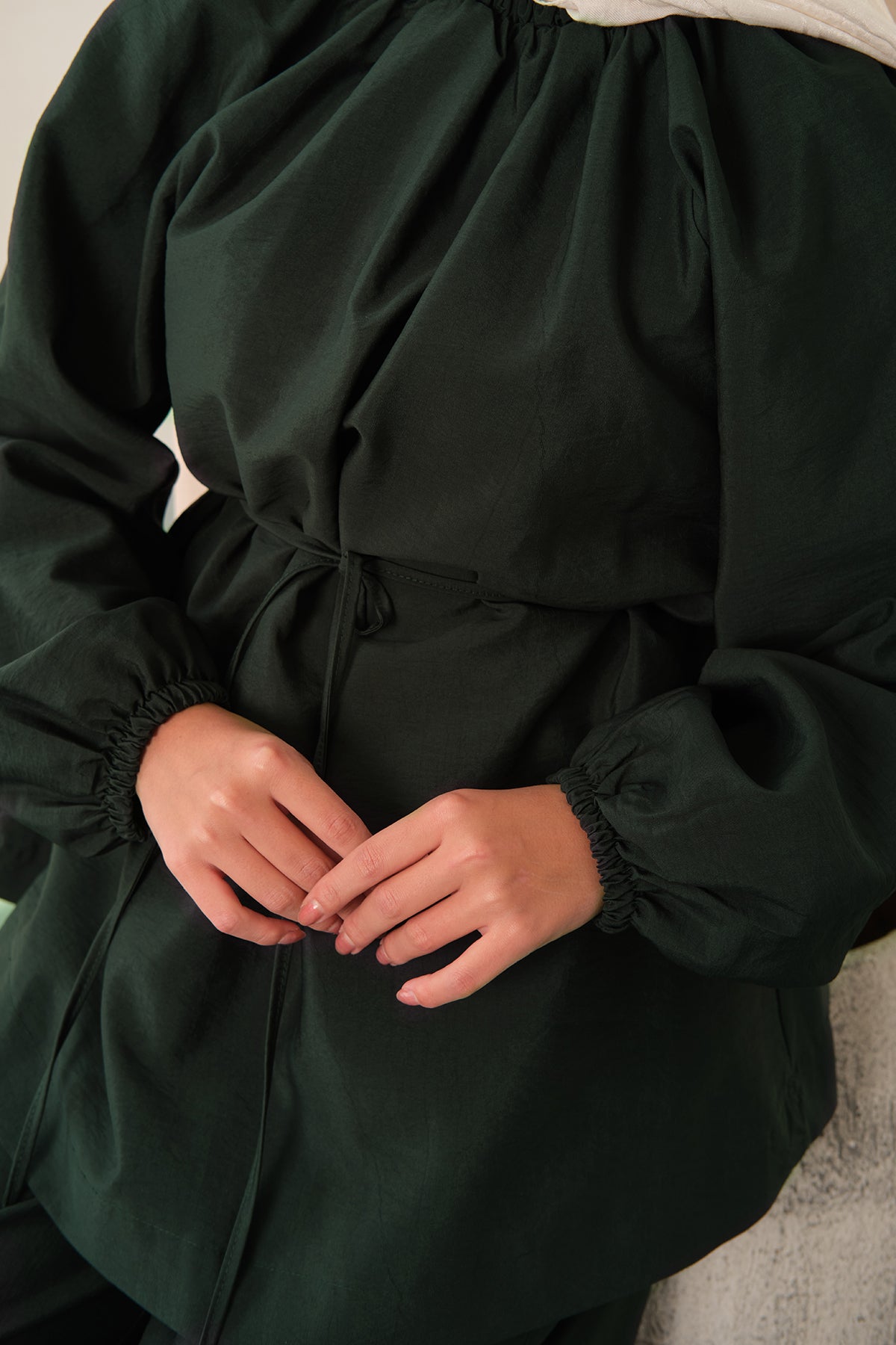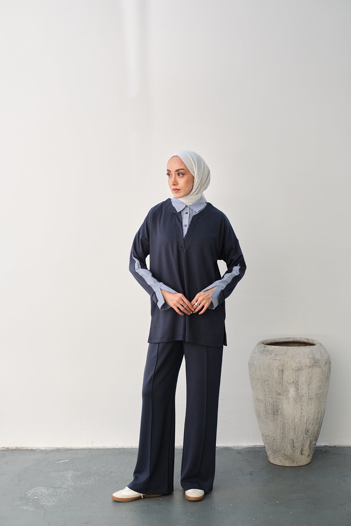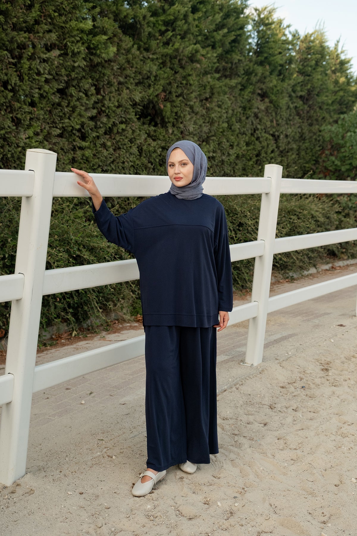 Ethnic Pattern Hooded Two-Piece Set – Brown