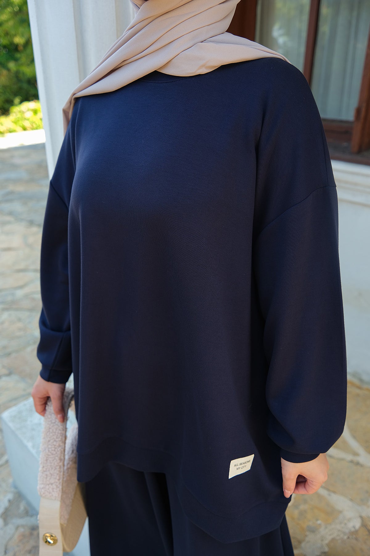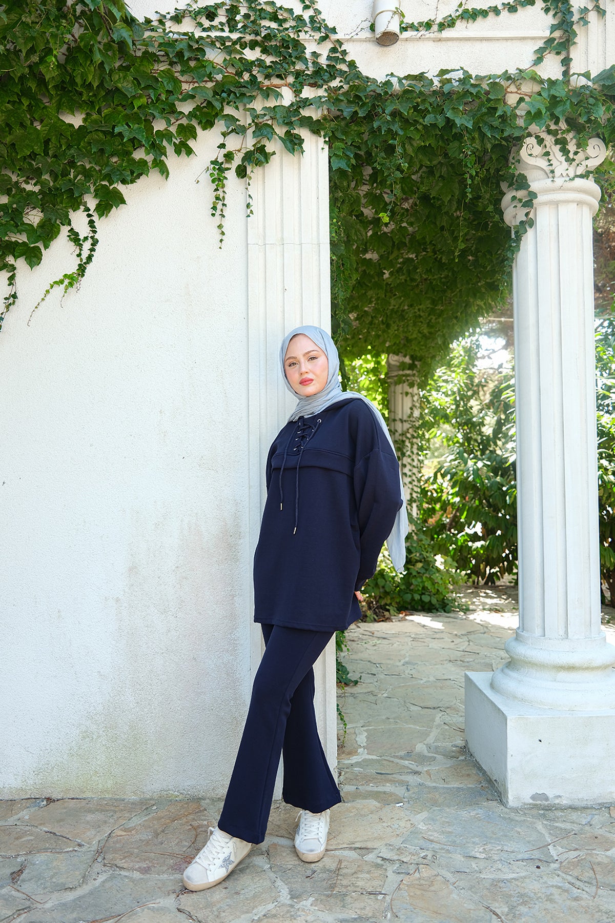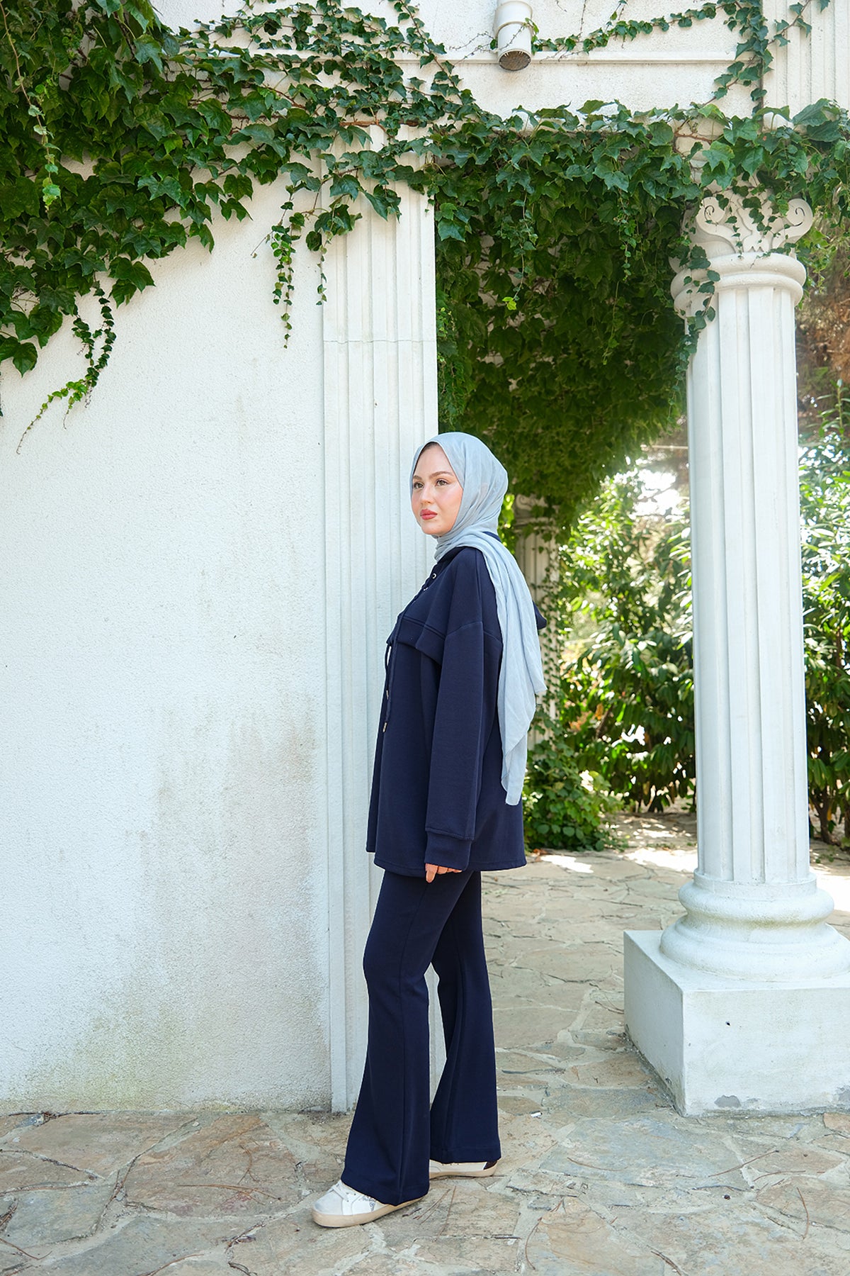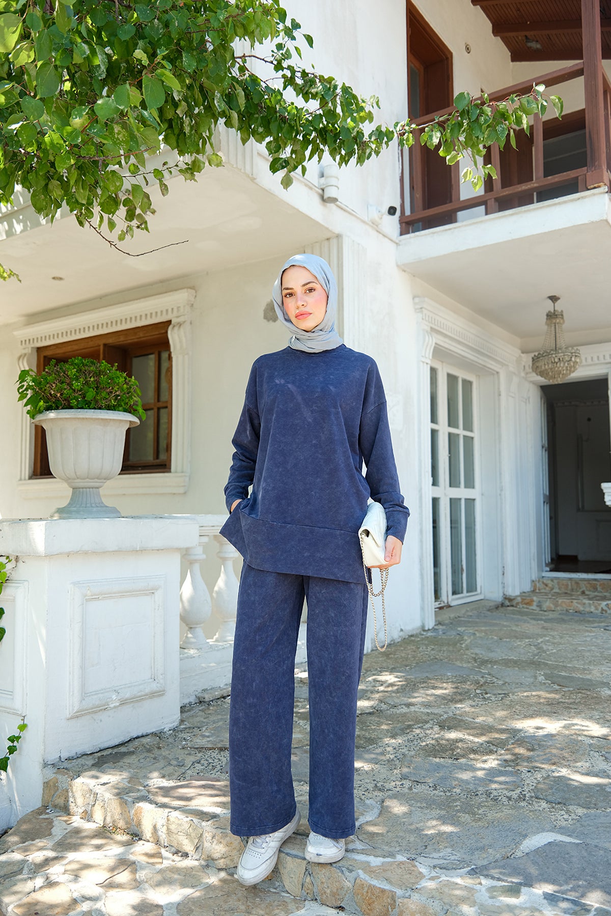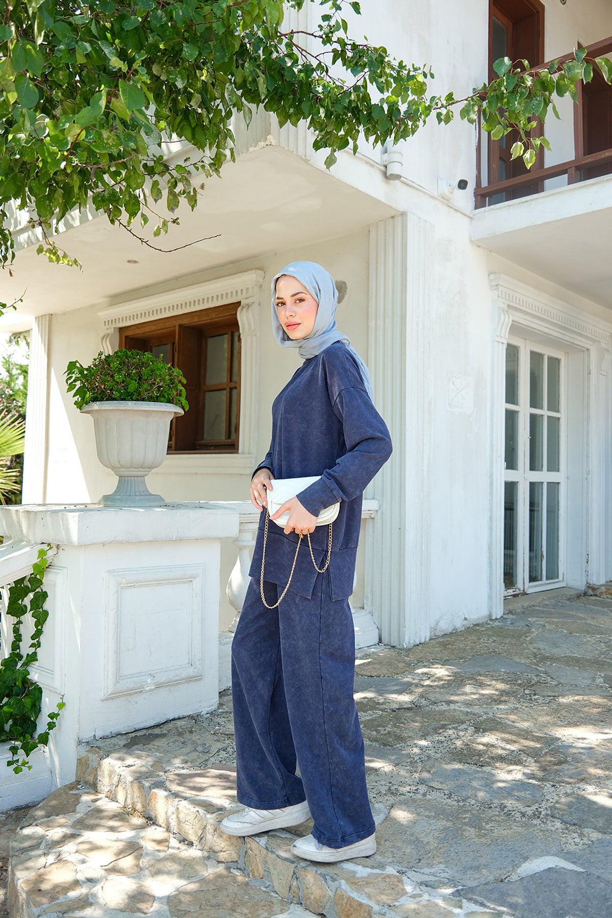 Side-Slit Washed Two-Piece Set – Navy Blue