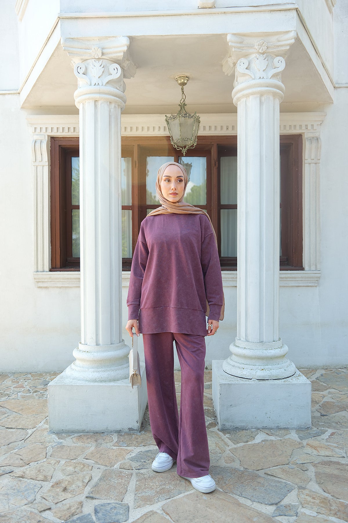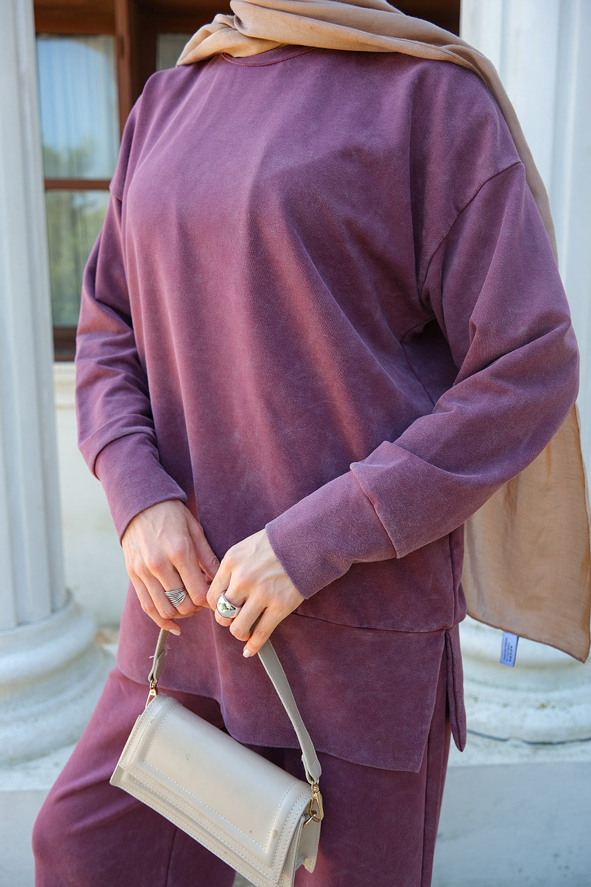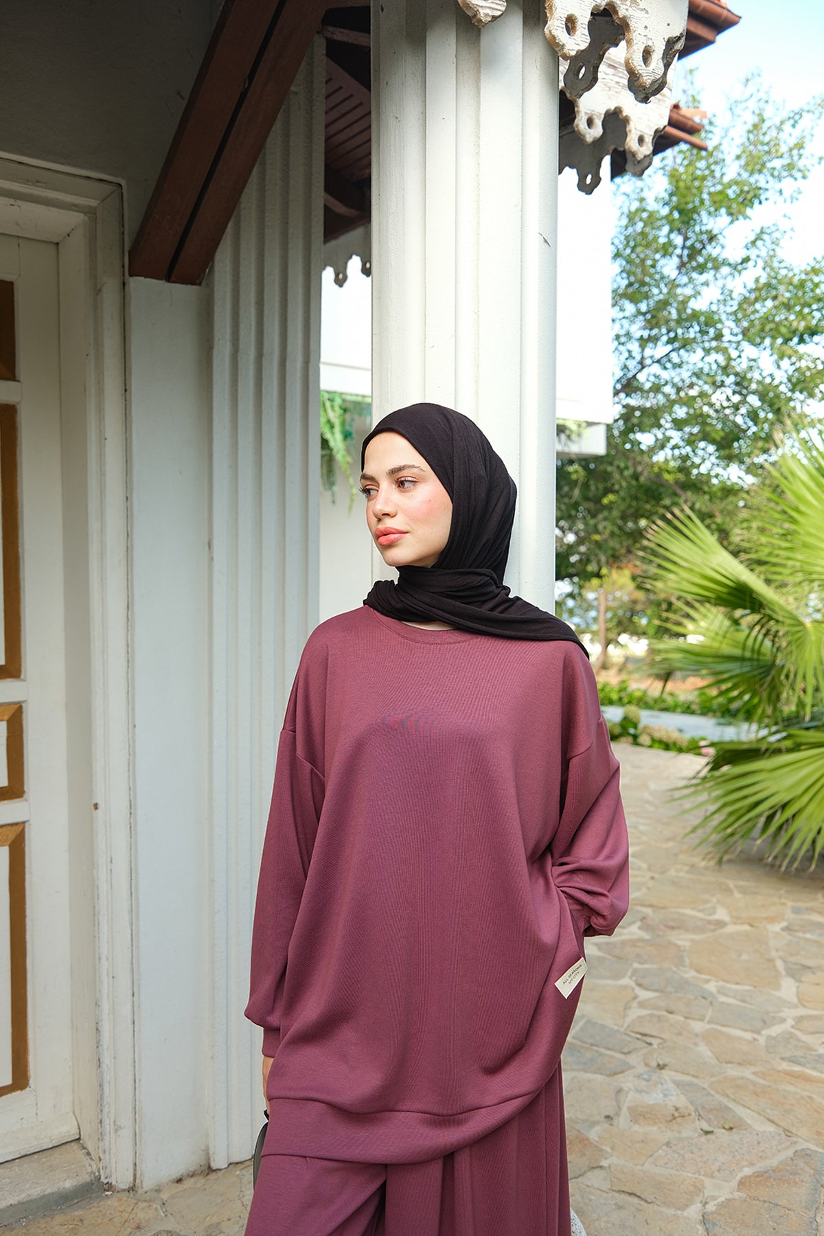 Side-Slit Washed Two-Piece Set – Burgundy