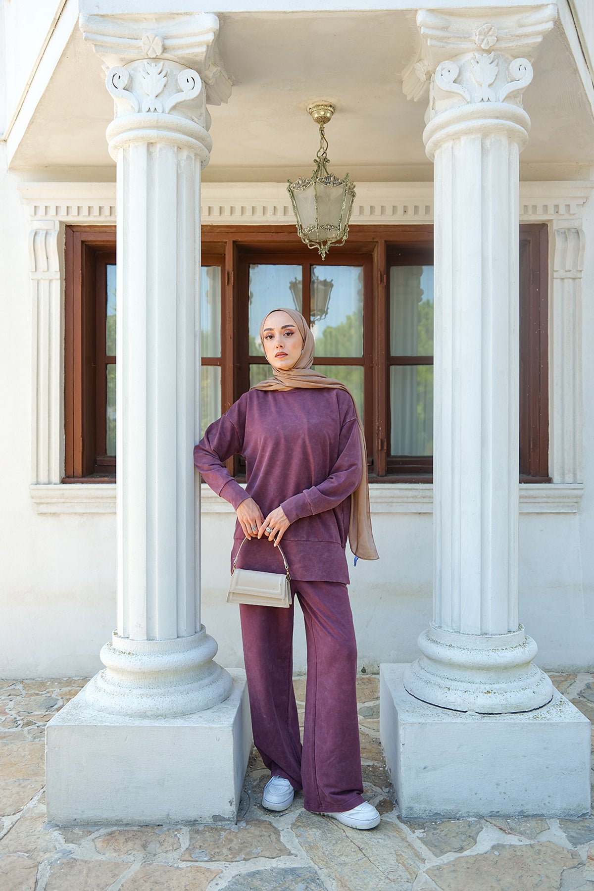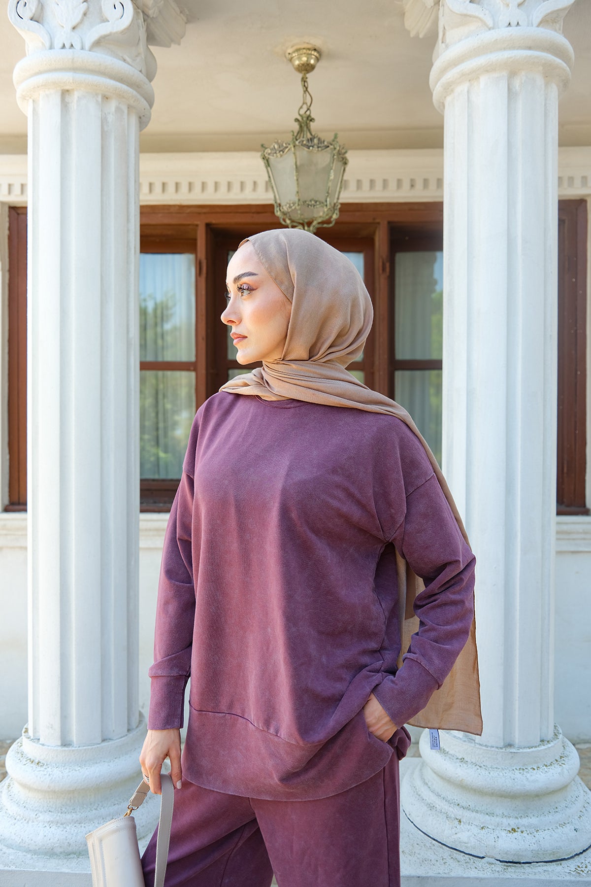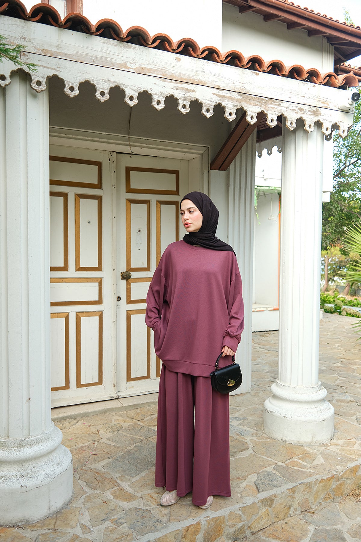 Side-Slit Washed Two-Piece Set – Burgundy