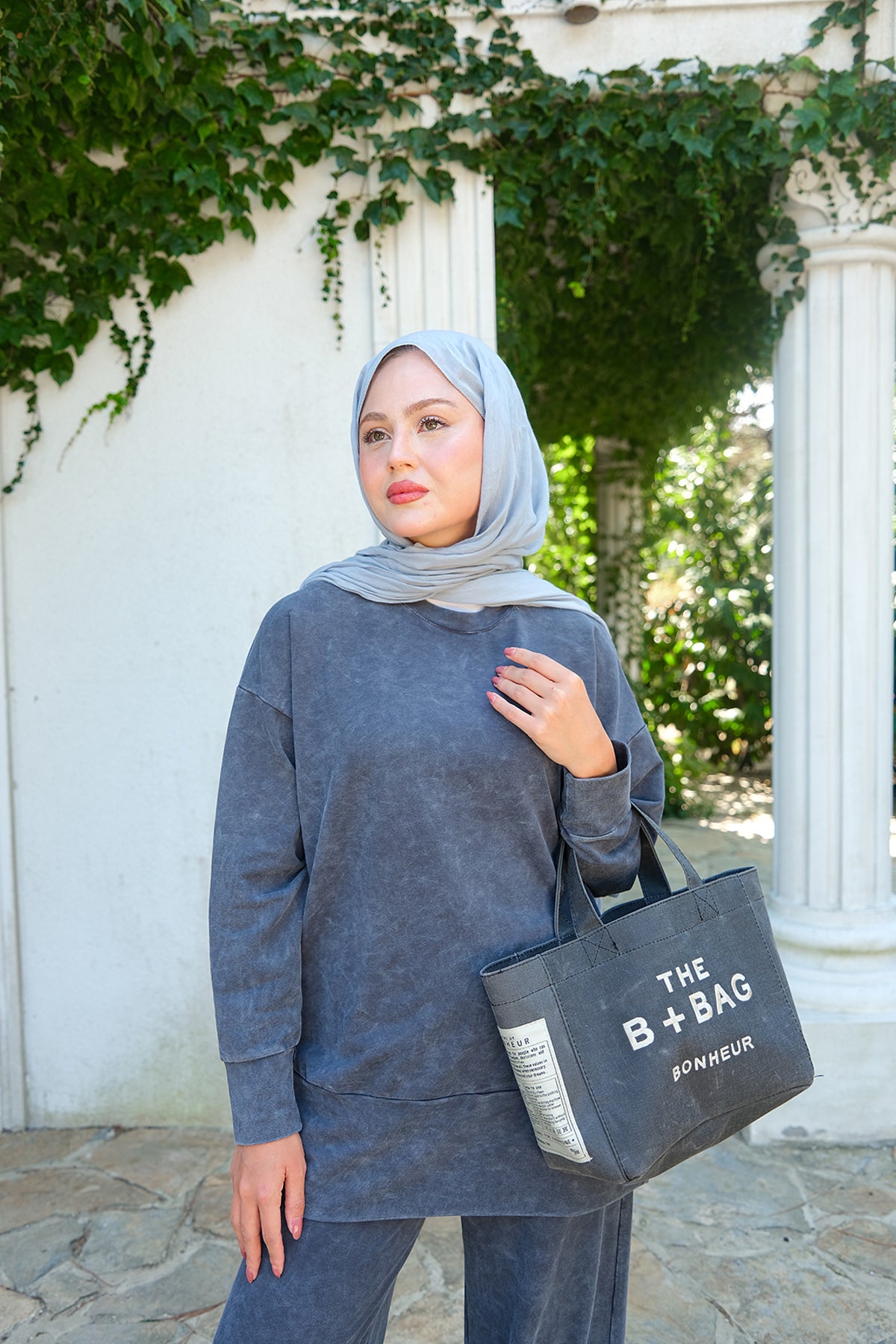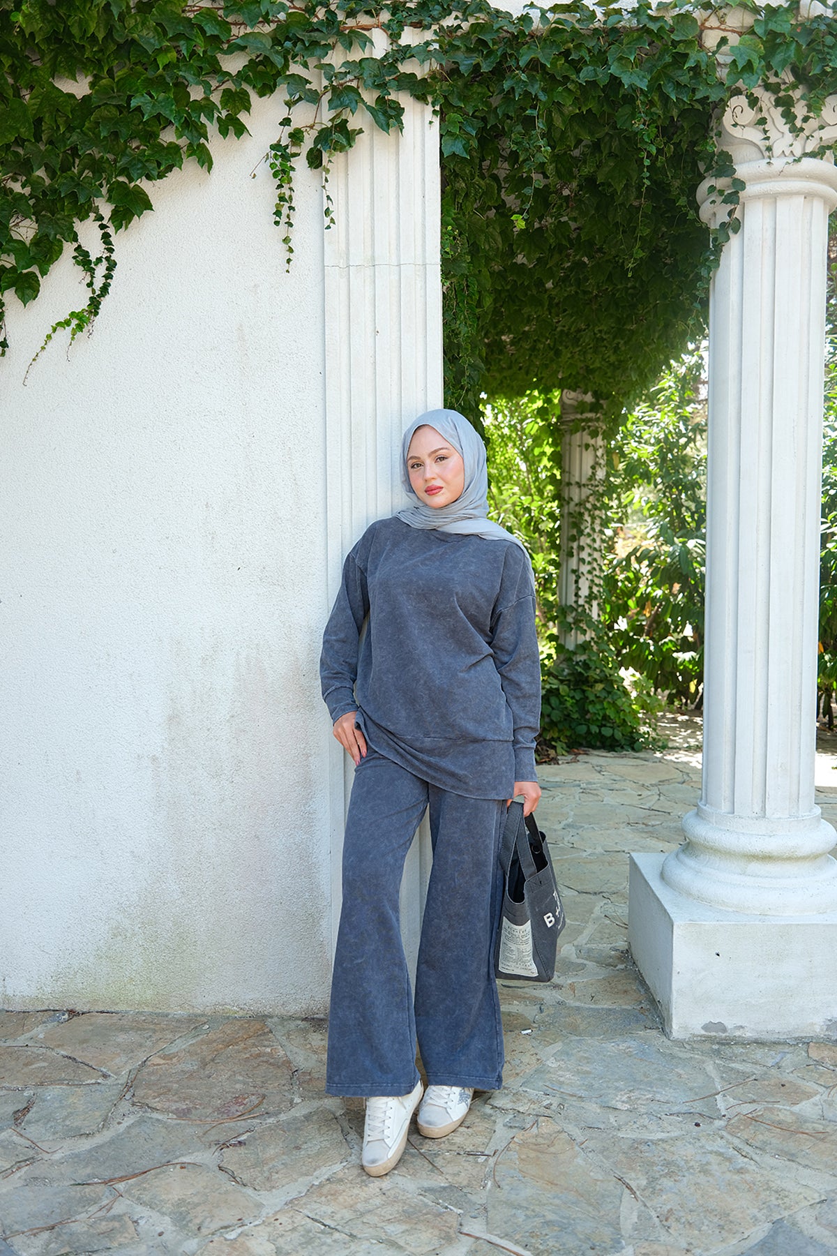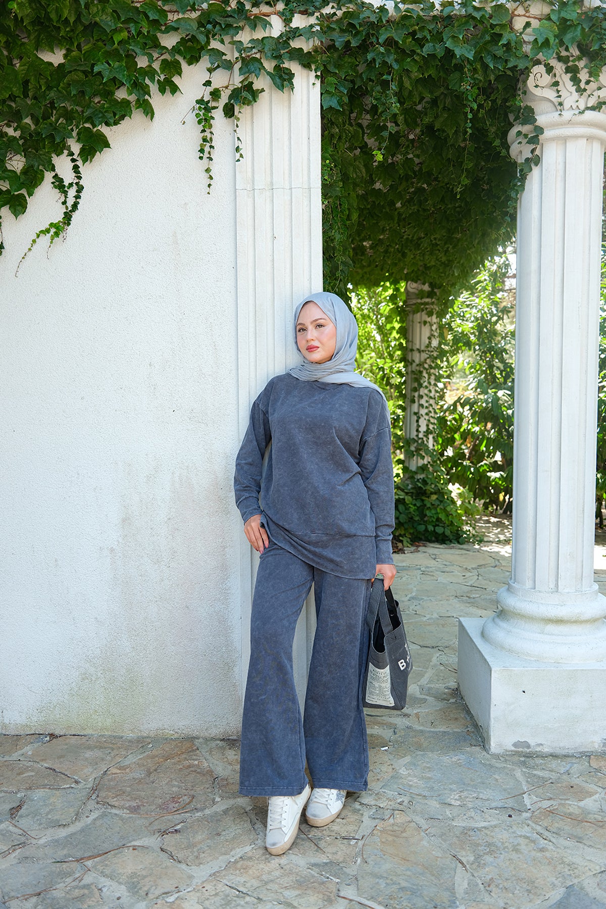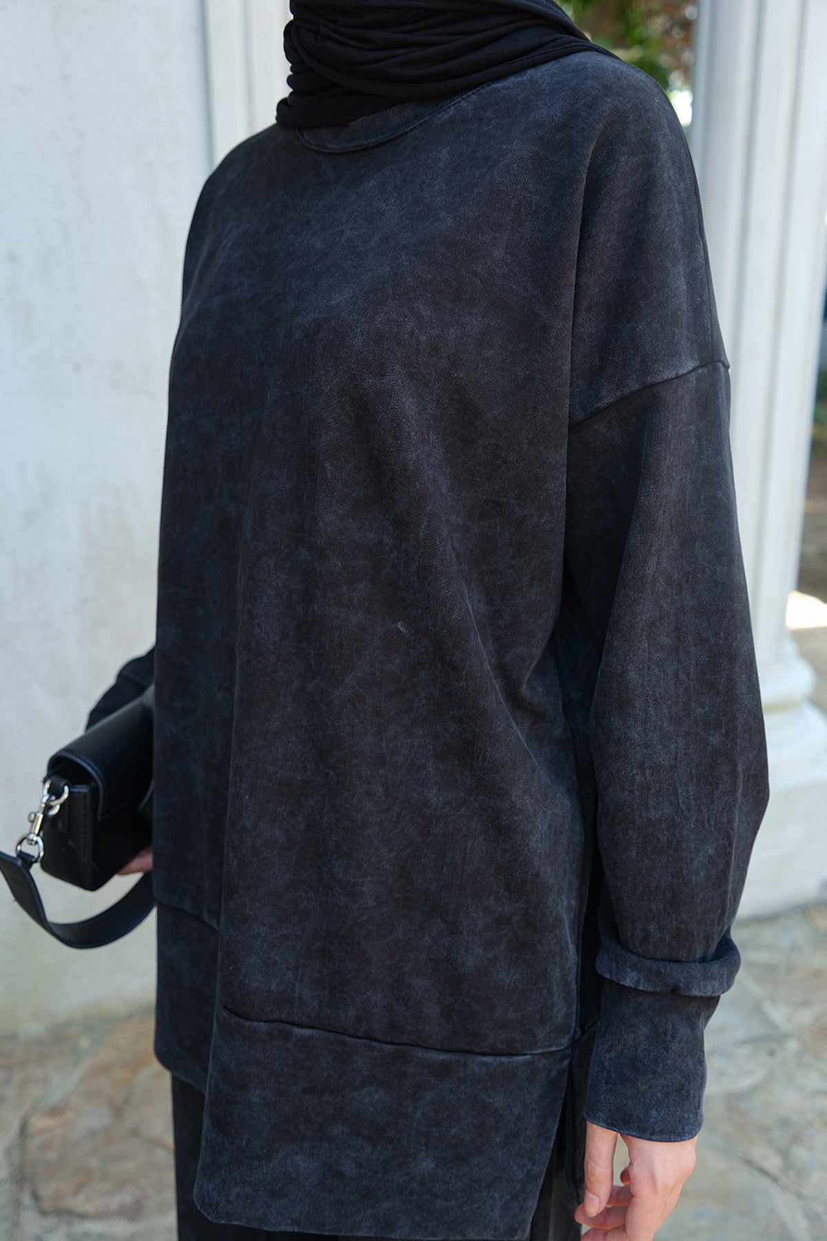 Side-Slit Washed Two-Piece Set – Charcoal Gray