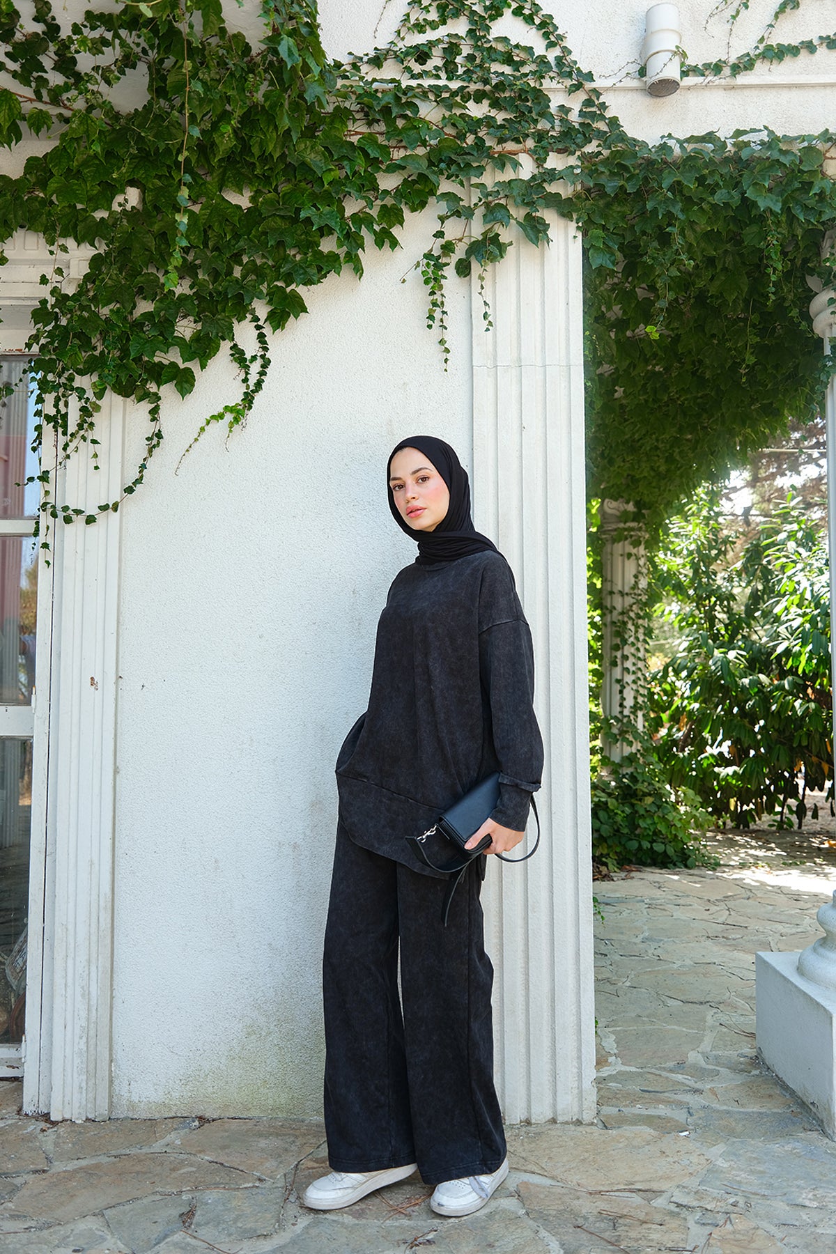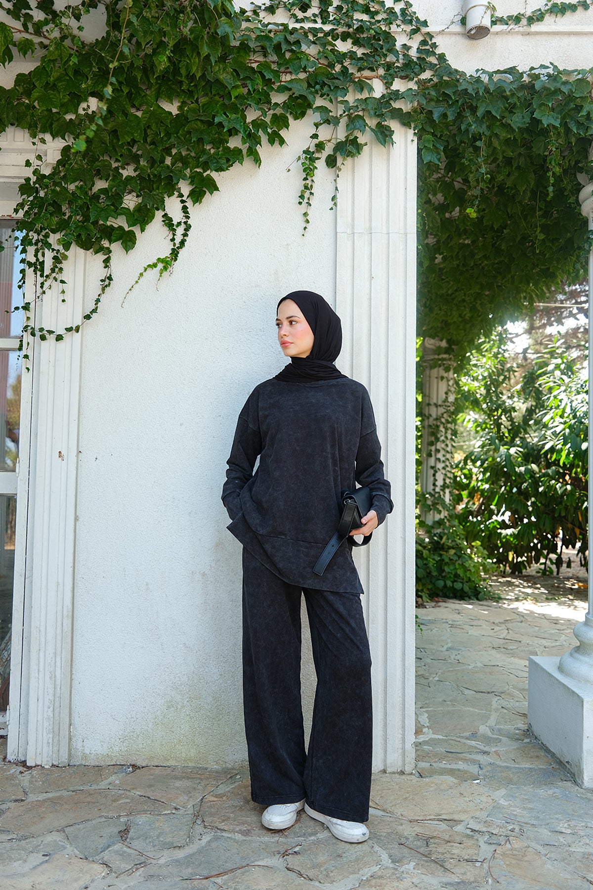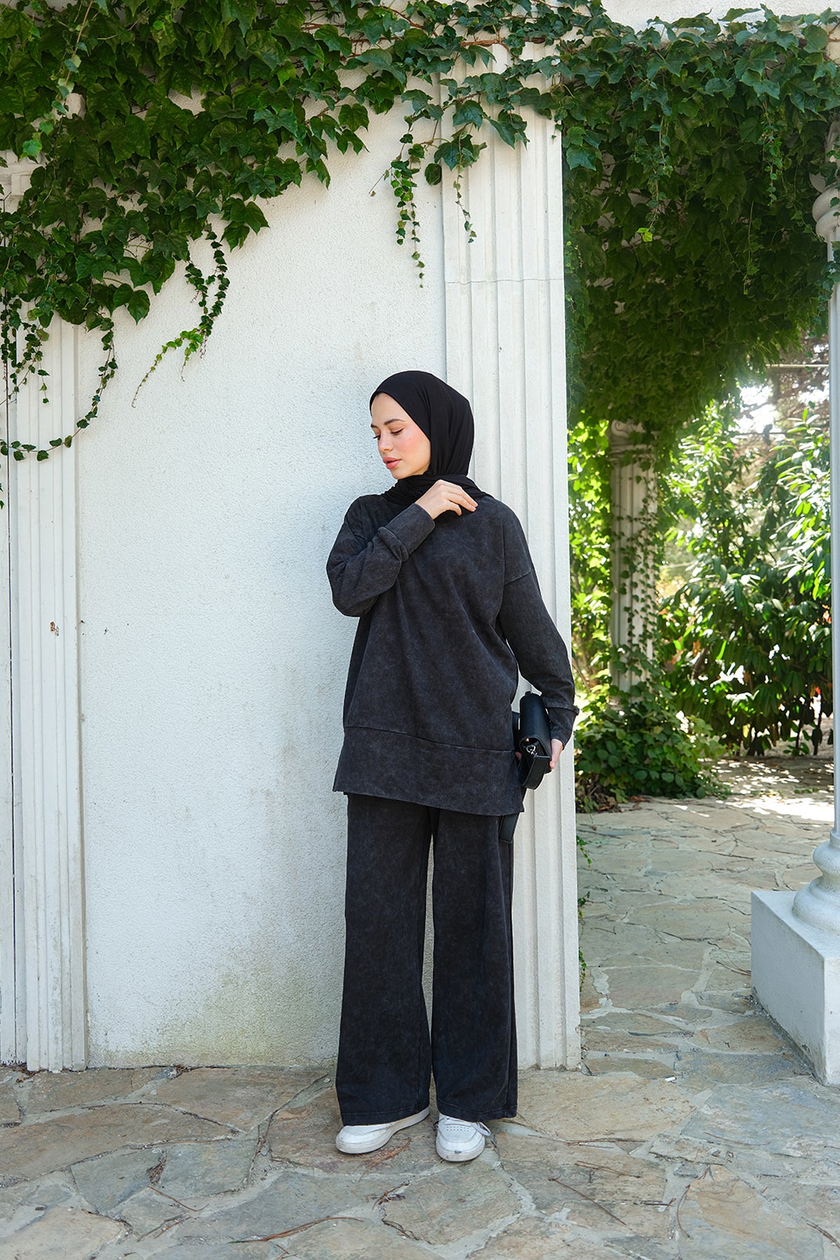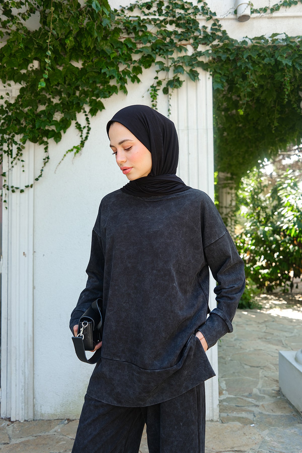 Side-Slit Washed Two-Piece Set – Black